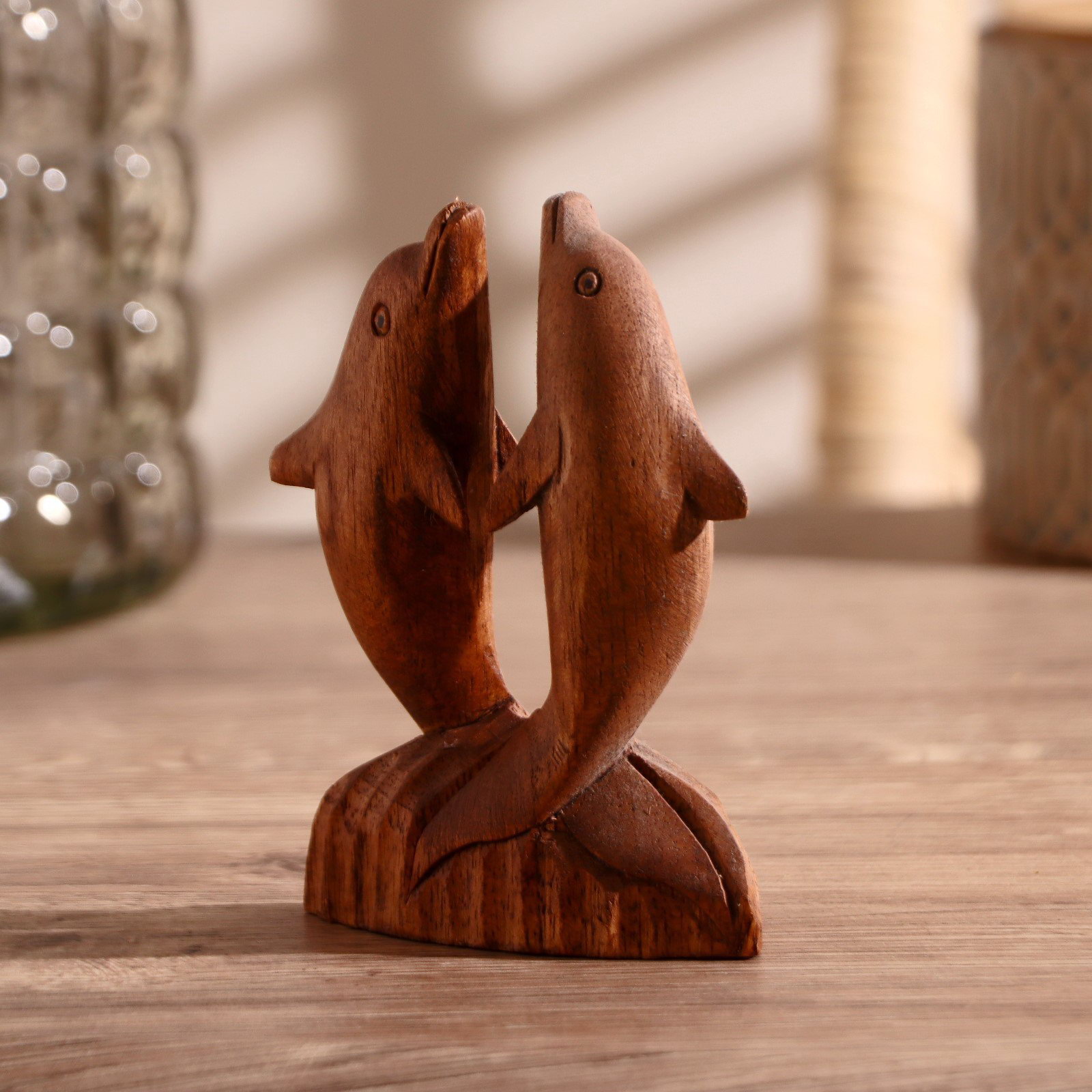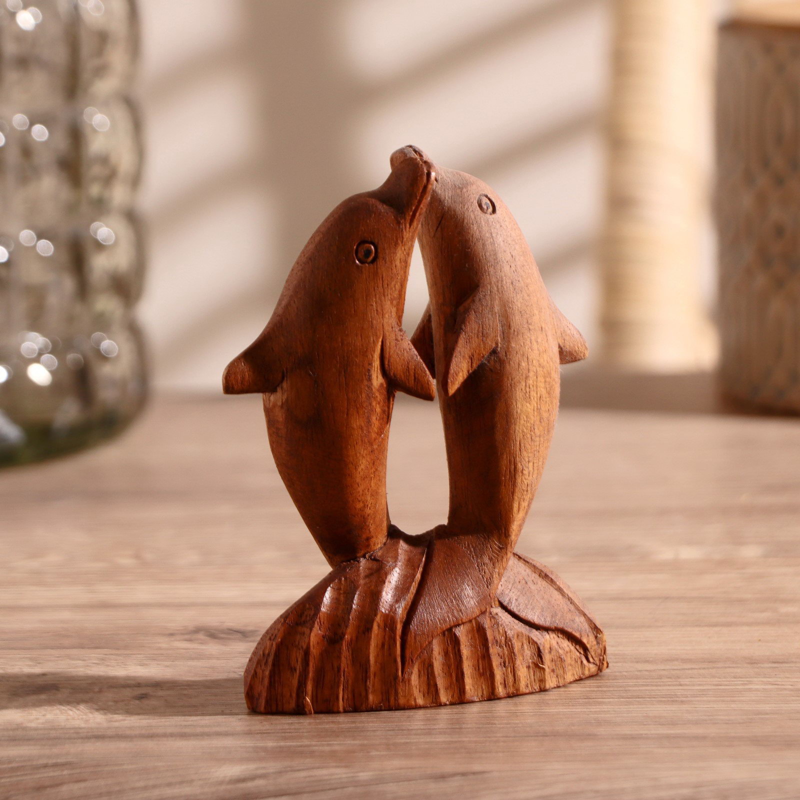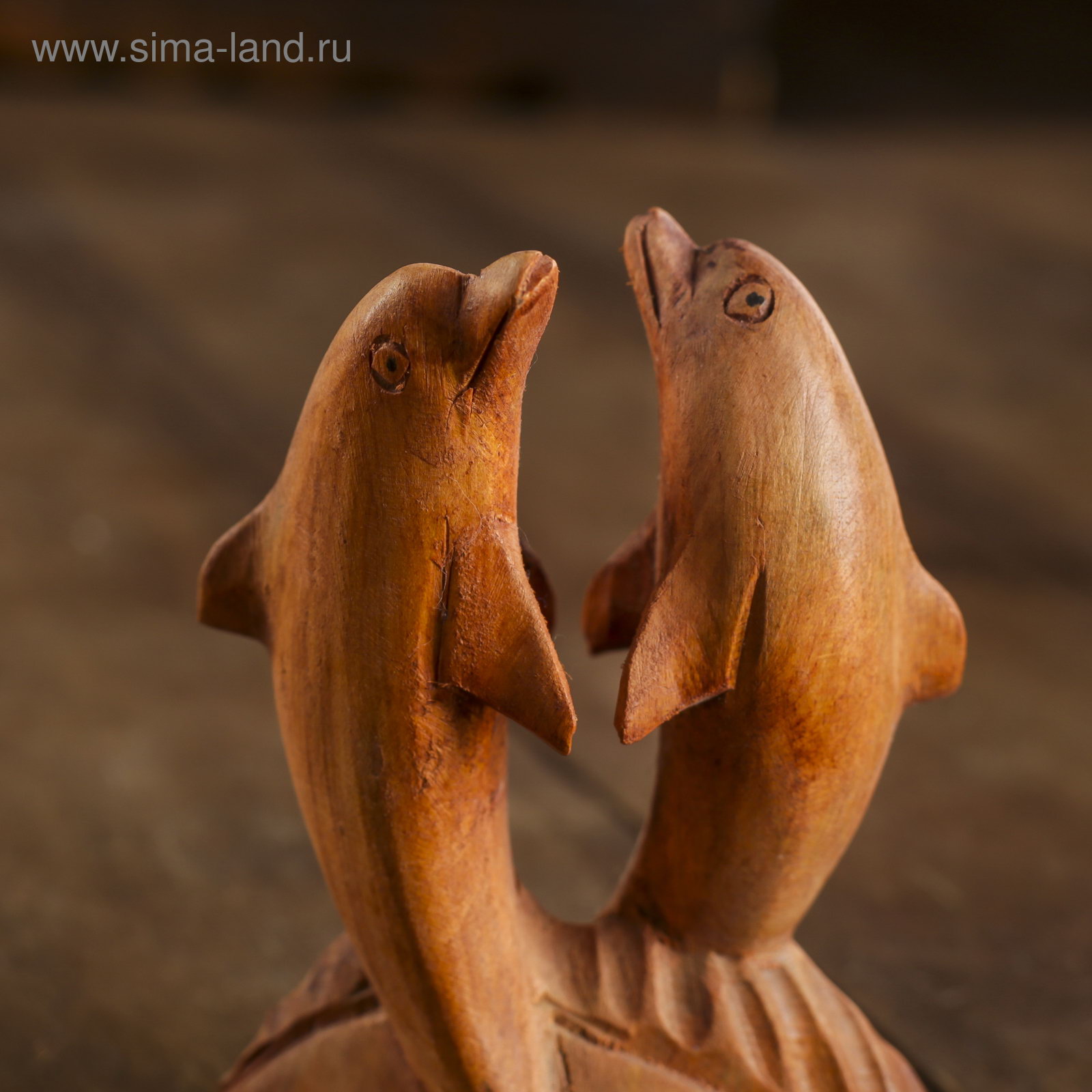Сувенир дерево "Два дельфина" коричневый цвет 10х7х3 см, 7x3x20 см., Индонезия