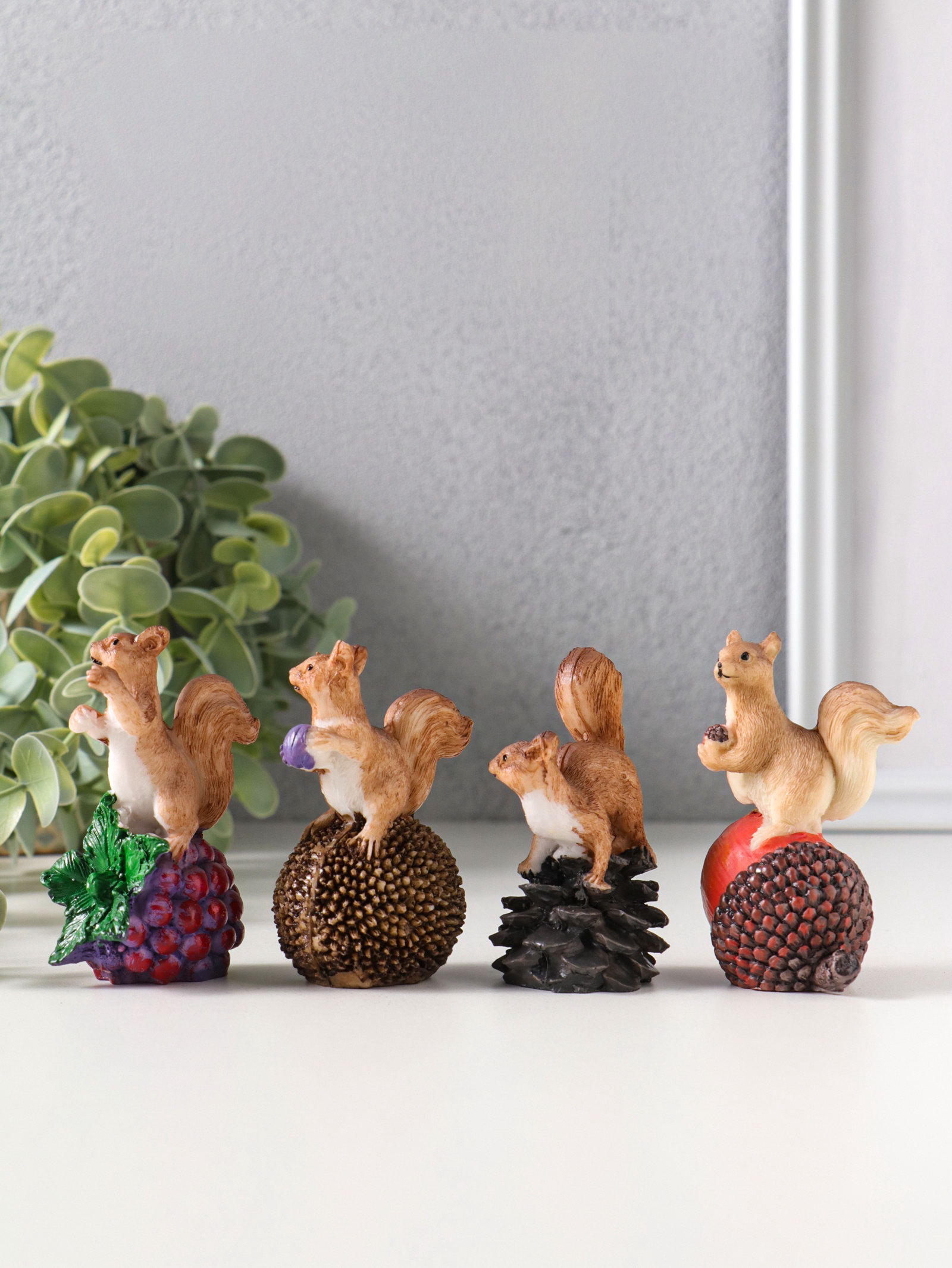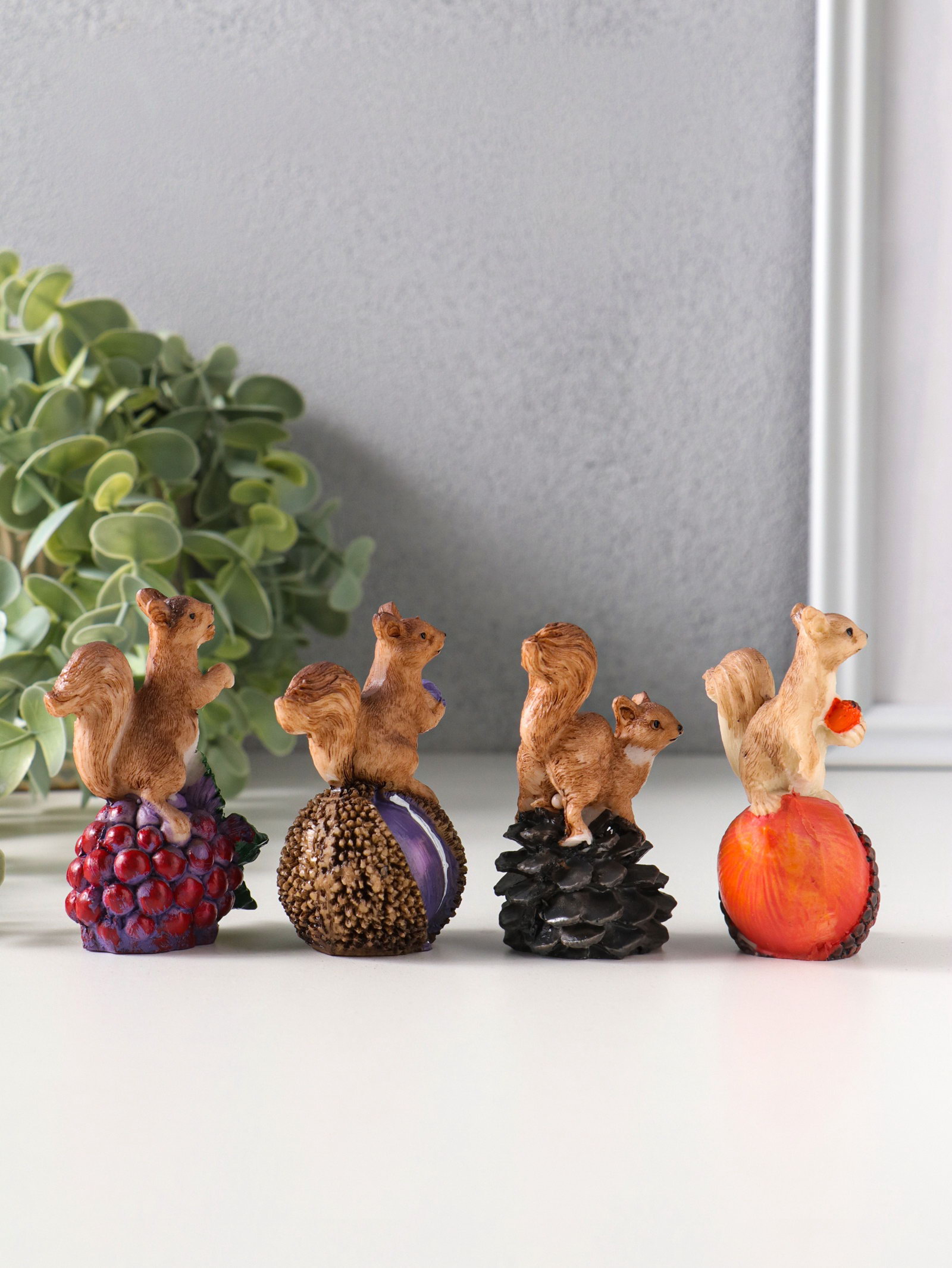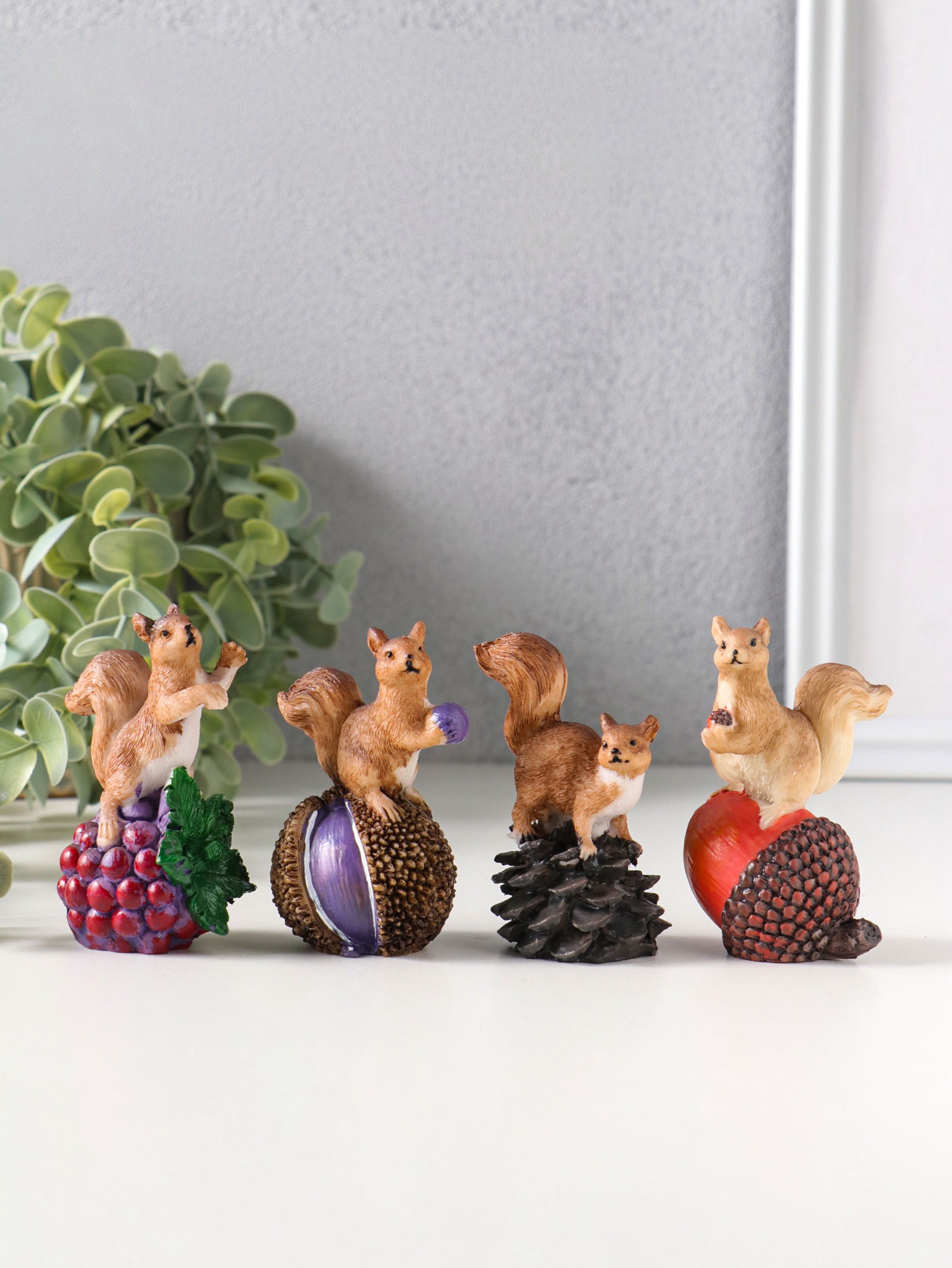 Набор фигурок 4 шт. полистоун "Белочки с орешками", 3x5.5x7.4 см, 5.5x3x7.4 см., Китай