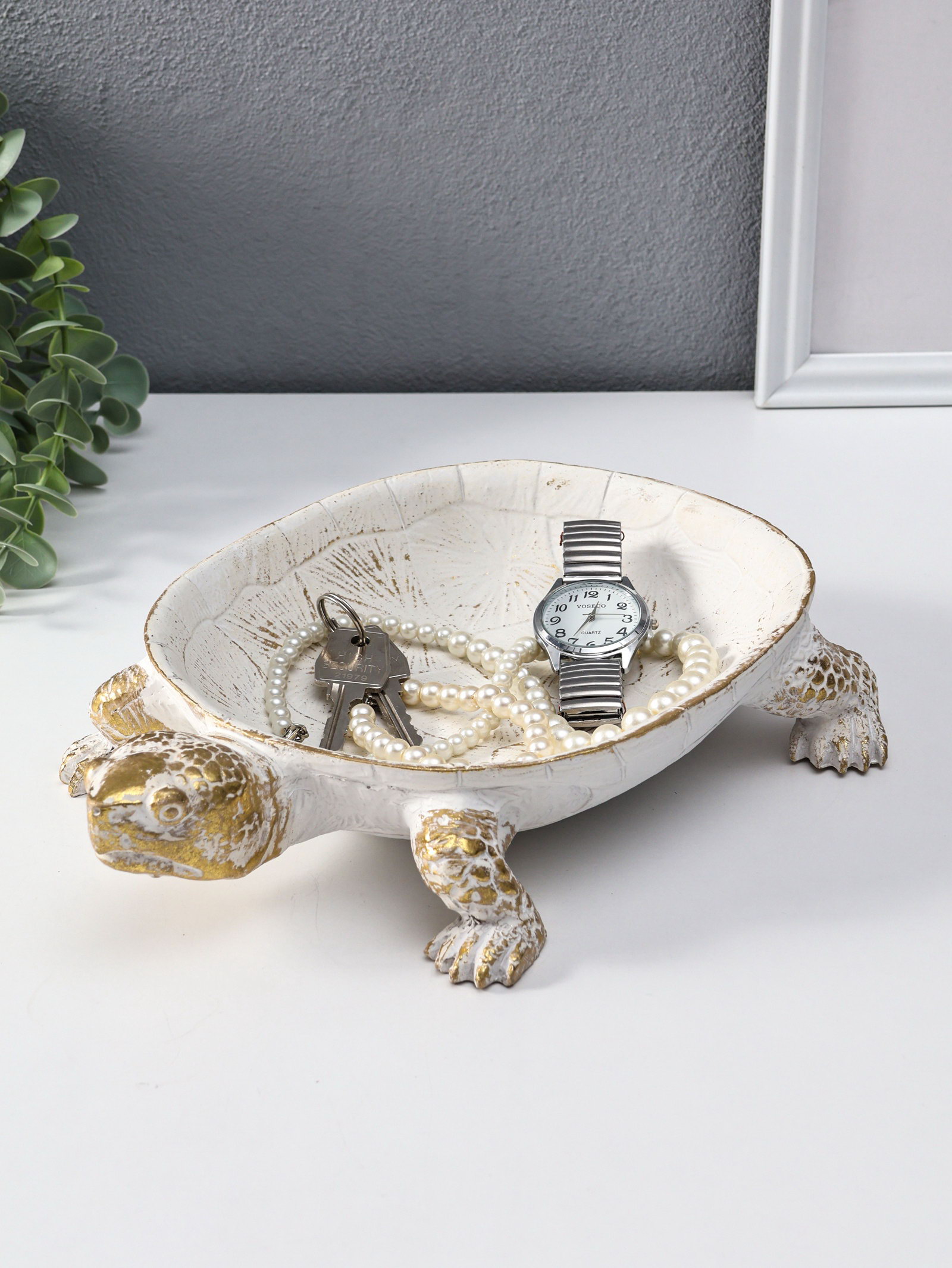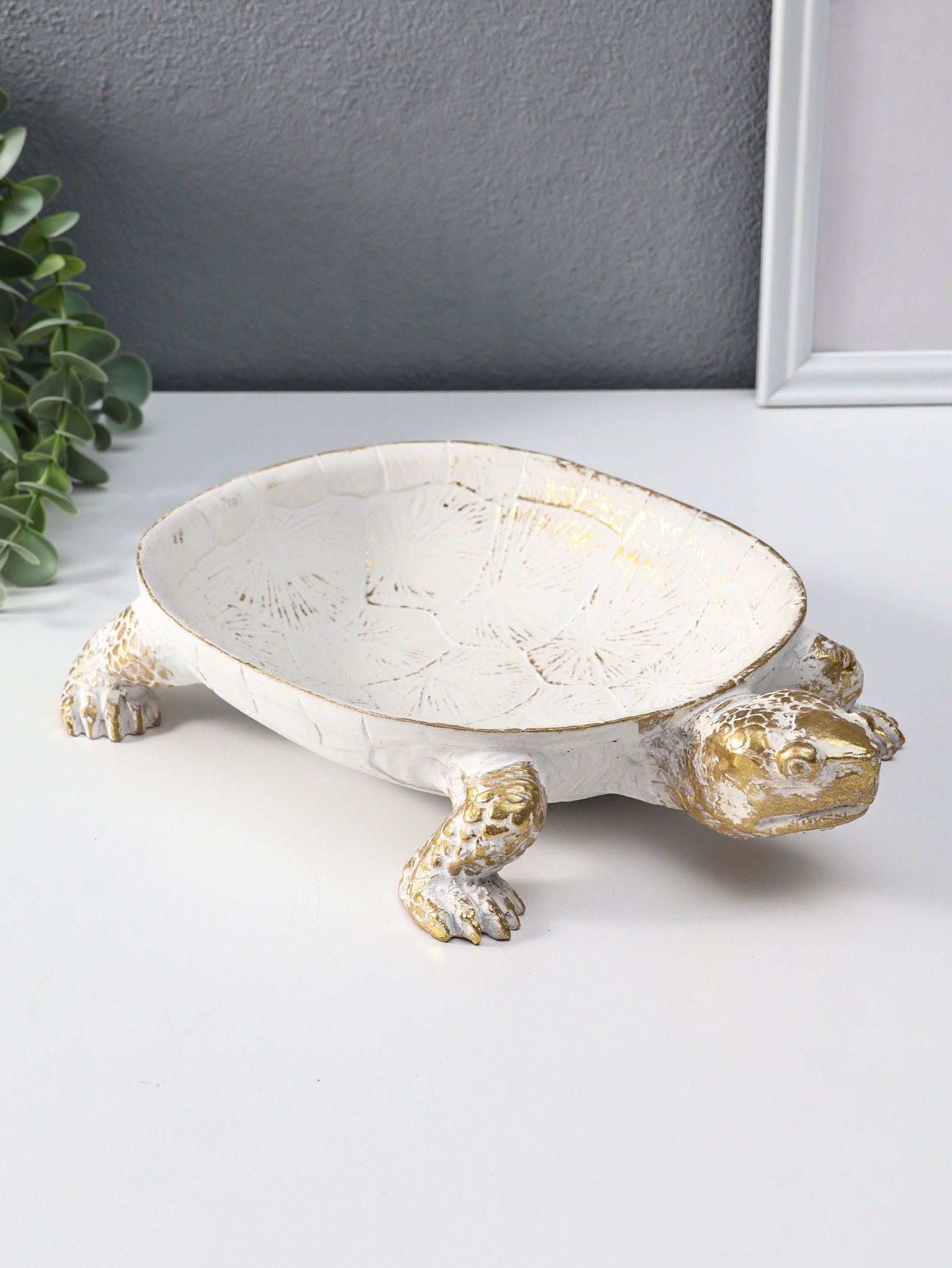 Фигура - подставка для мелочей "Черепаха", белая с золотом, полистоун, 28x19x5 см, 19x28x5 см., Китай