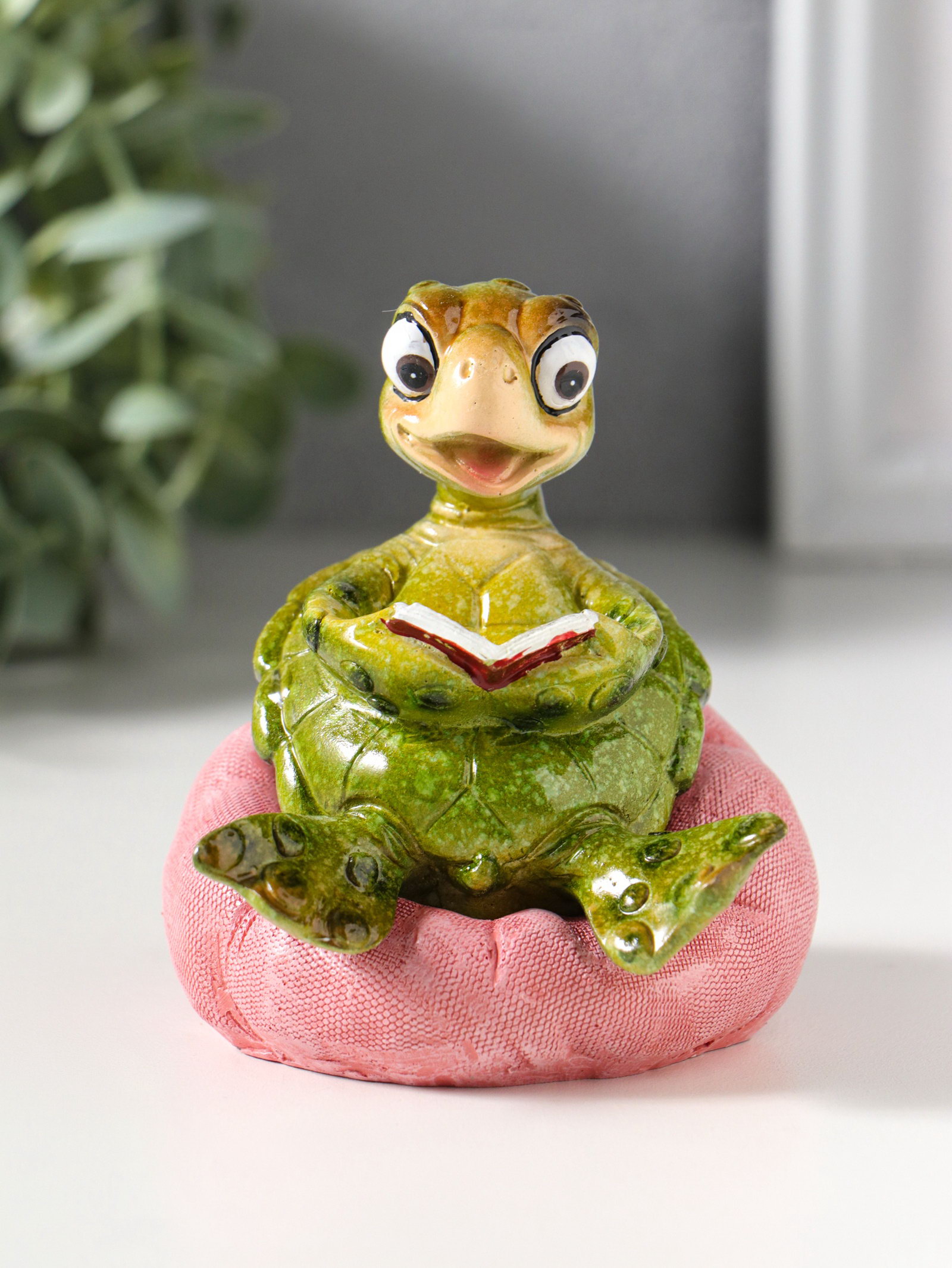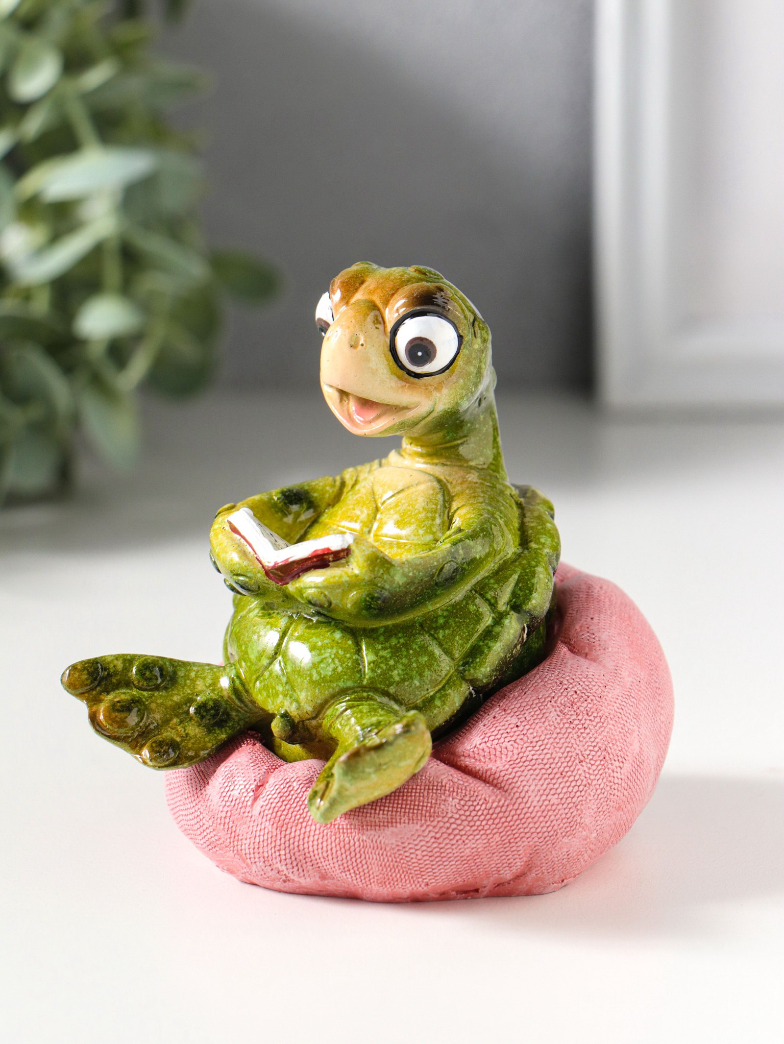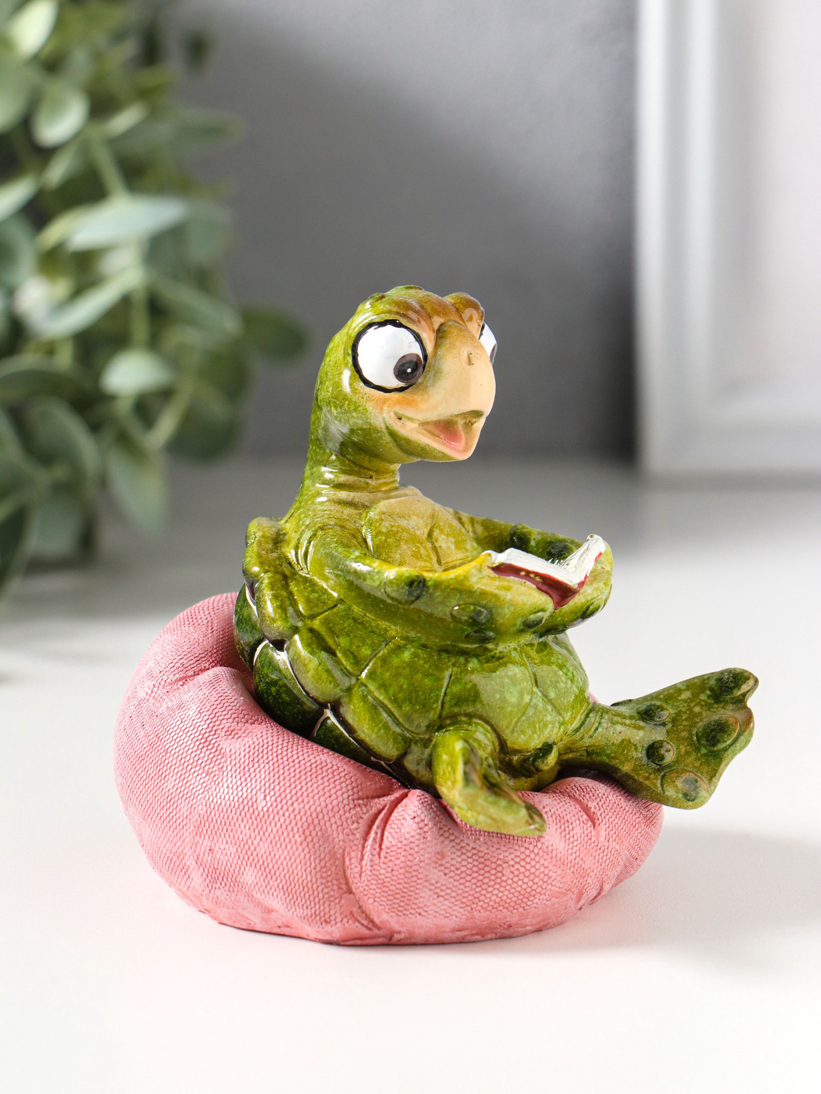 Фигурка полистоун лак "Черепашонок в кресле-мешке, читает книгу", 5.5x8.2x9.5 см, 8.2x9.5x9.5 см., Китай