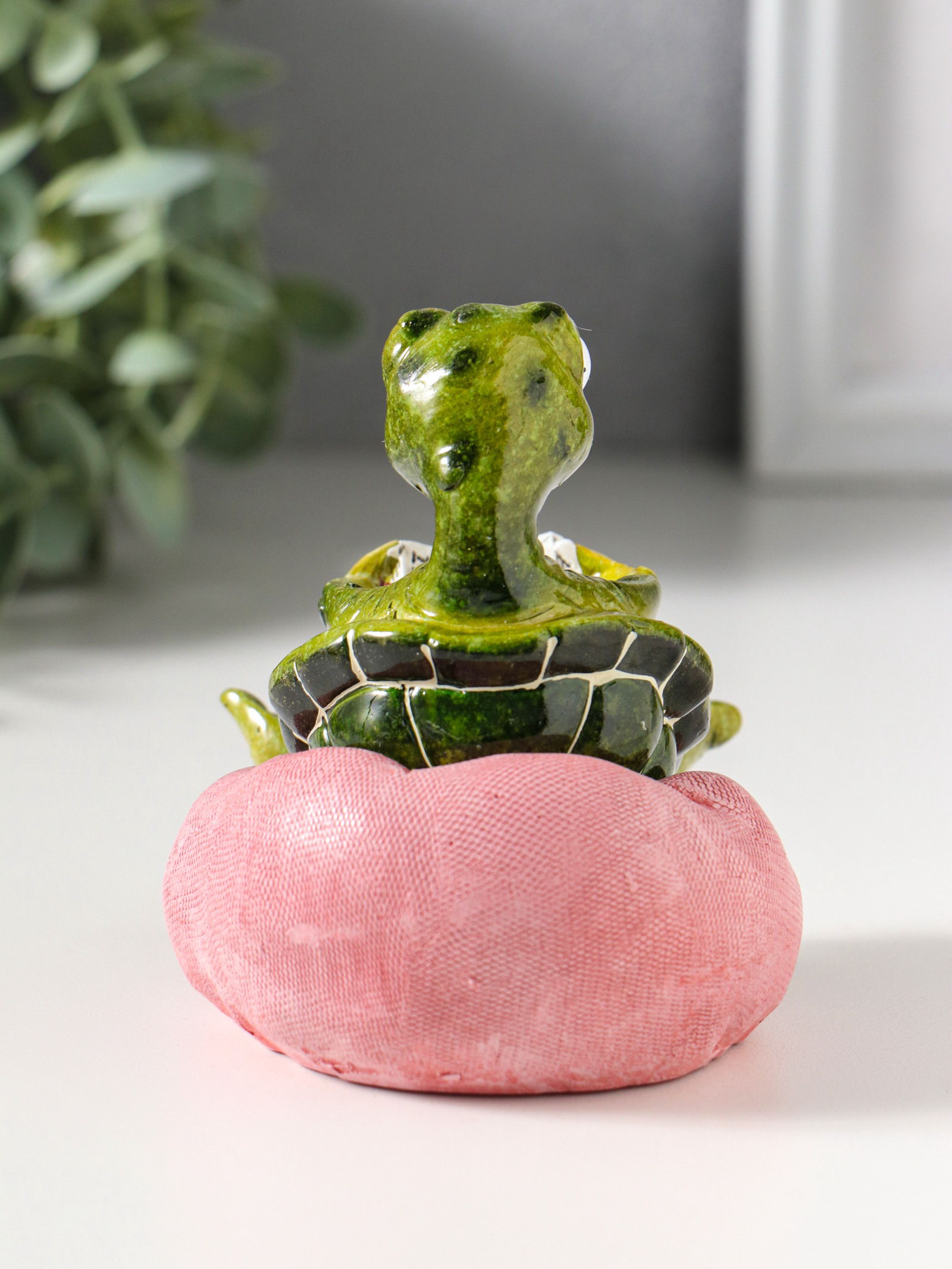 Тематика праздника: 1 Сентября, Универсальная тематика Цвет: Зелёный, Розовый Размер упаковки: 12 x 14.5 x 14 см. tnved: 3926400000 Форма фигуры: Черепаха Набор: Нет Одноцветный: Нет Высота, см: 9.5 Эта уютная фигурка черепашки, устроившейся с книгой в кресле-мешке, готовый символ отдыха и маленьких радостей. Она напоминает о ценности тихого вечера, когда можно забыть о суете и погрузиться в любимую историю. Детализированный полистоун передаёт фактуру панциря и мягкой ткани, создавая тёплый и душевный образ, который станет милым акцентом на полке, рабочем столе или прикроватной тумбочке. Особенности
