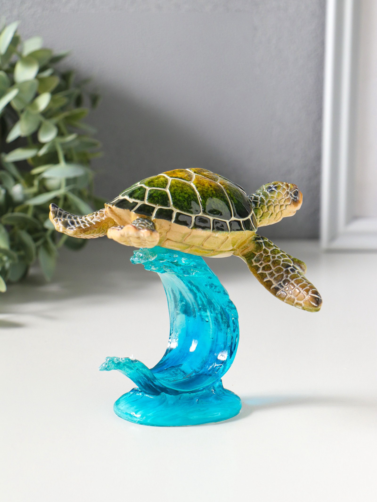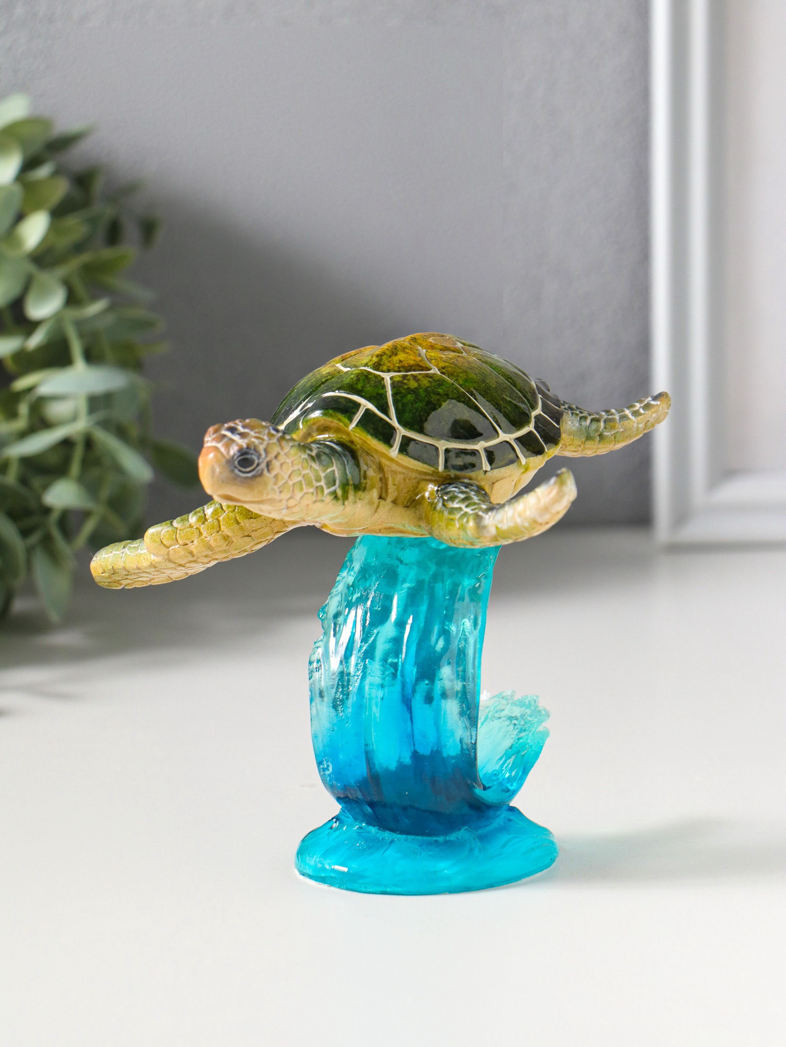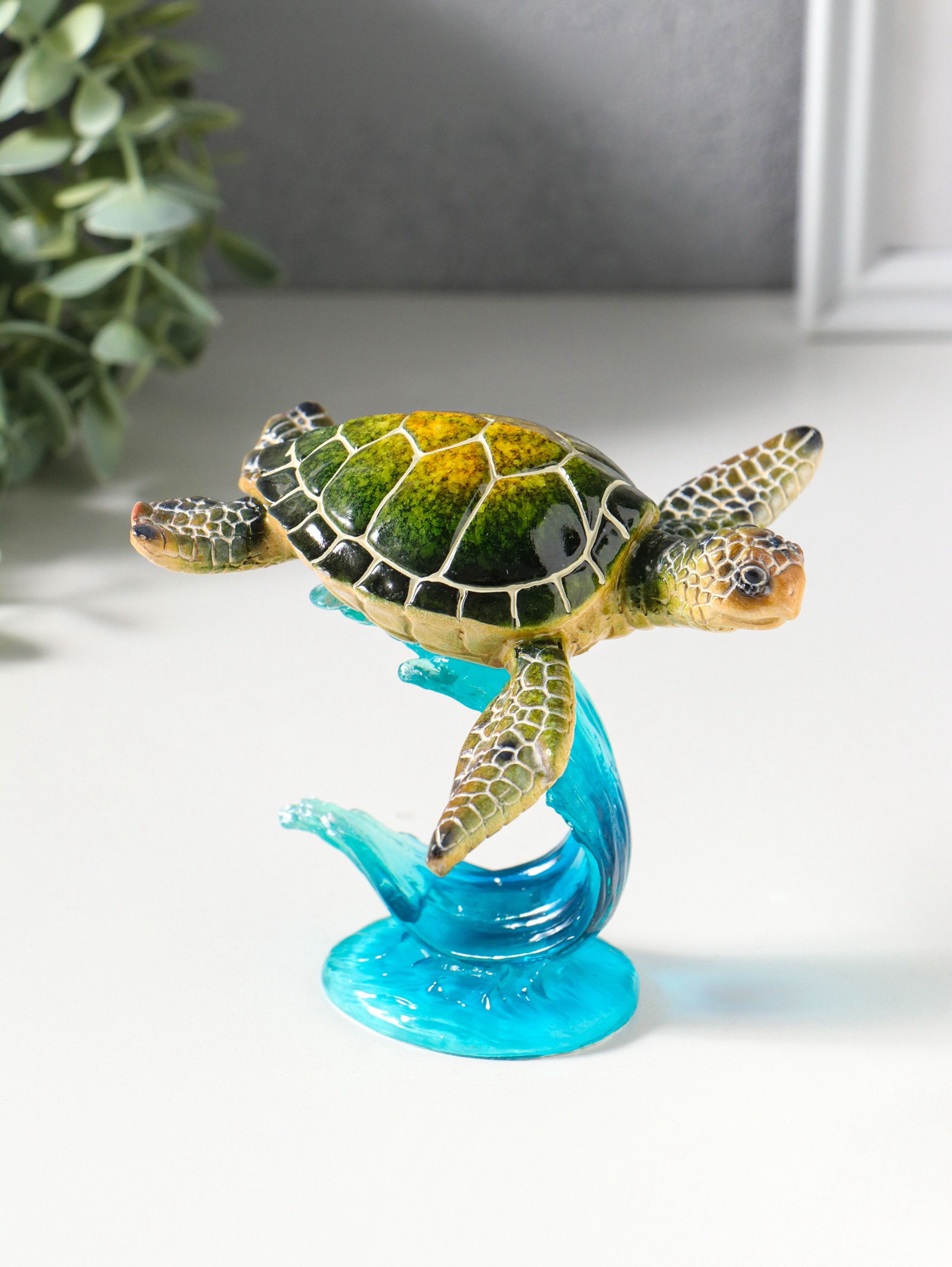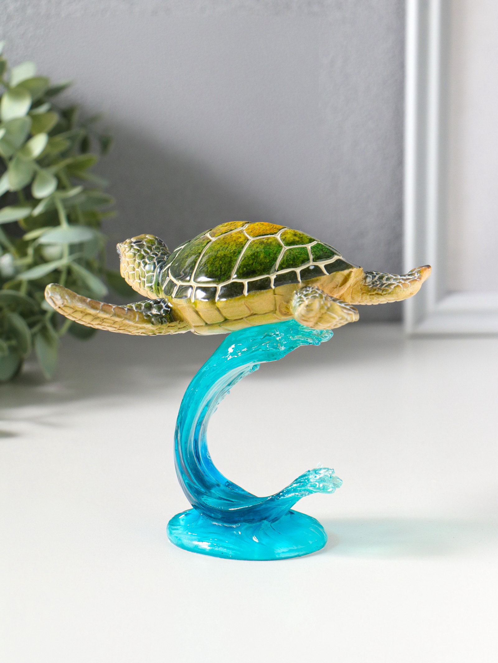 Фигурка полистоун лак "Черепаха на волне", зелёный, 13.3x12.3x11.6 см, 12.3x13.3x11.6 см., Китай
