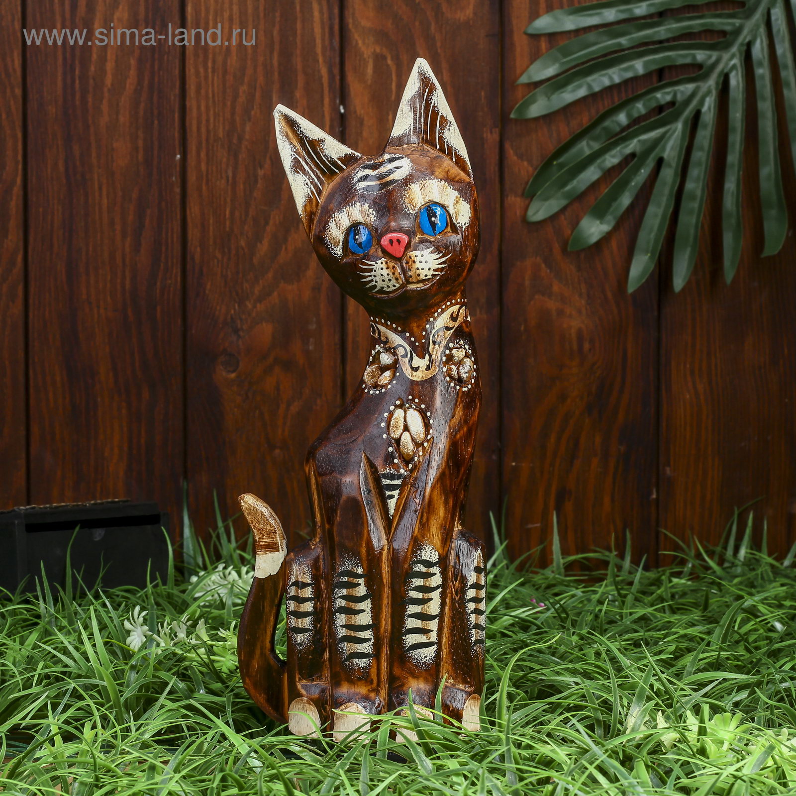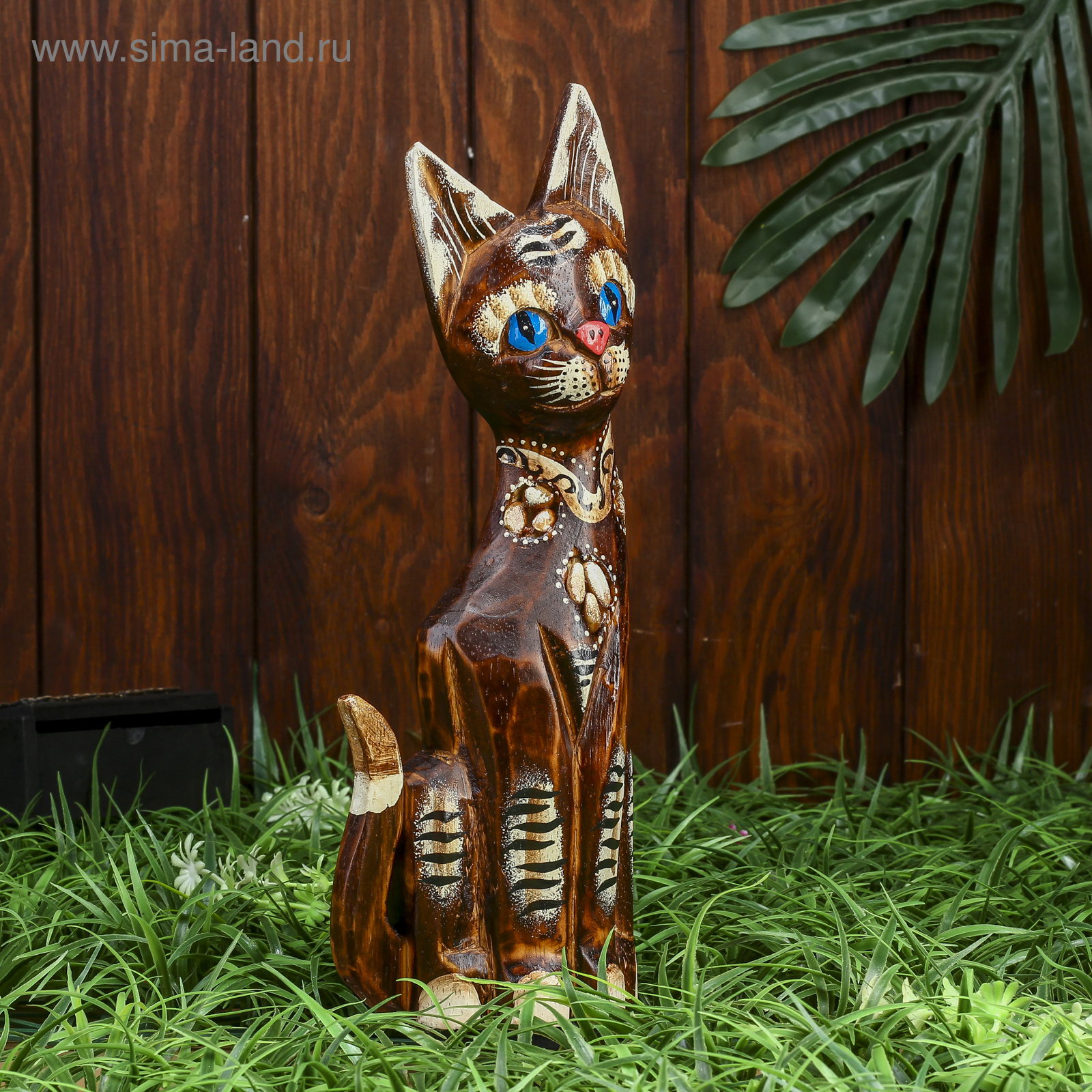 Сувенир "Кошка с голубыми глазами", 30 см, дерево, 11x4x30 см., Индонезия