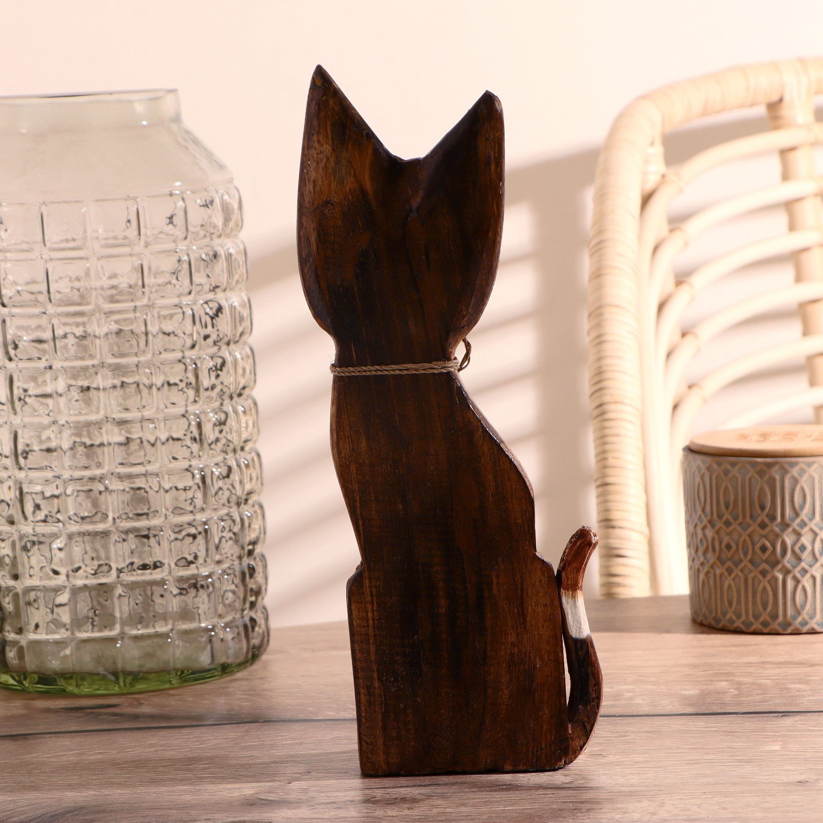 Сувенир "Кошка с бантом, ушки в горошек", 30x10x3 см, дерево, 10x3x30 см., Индонезия