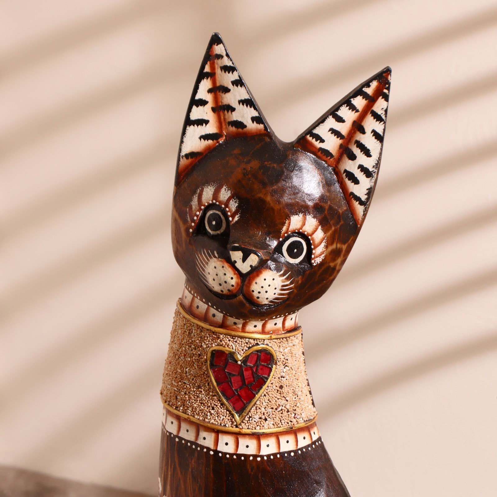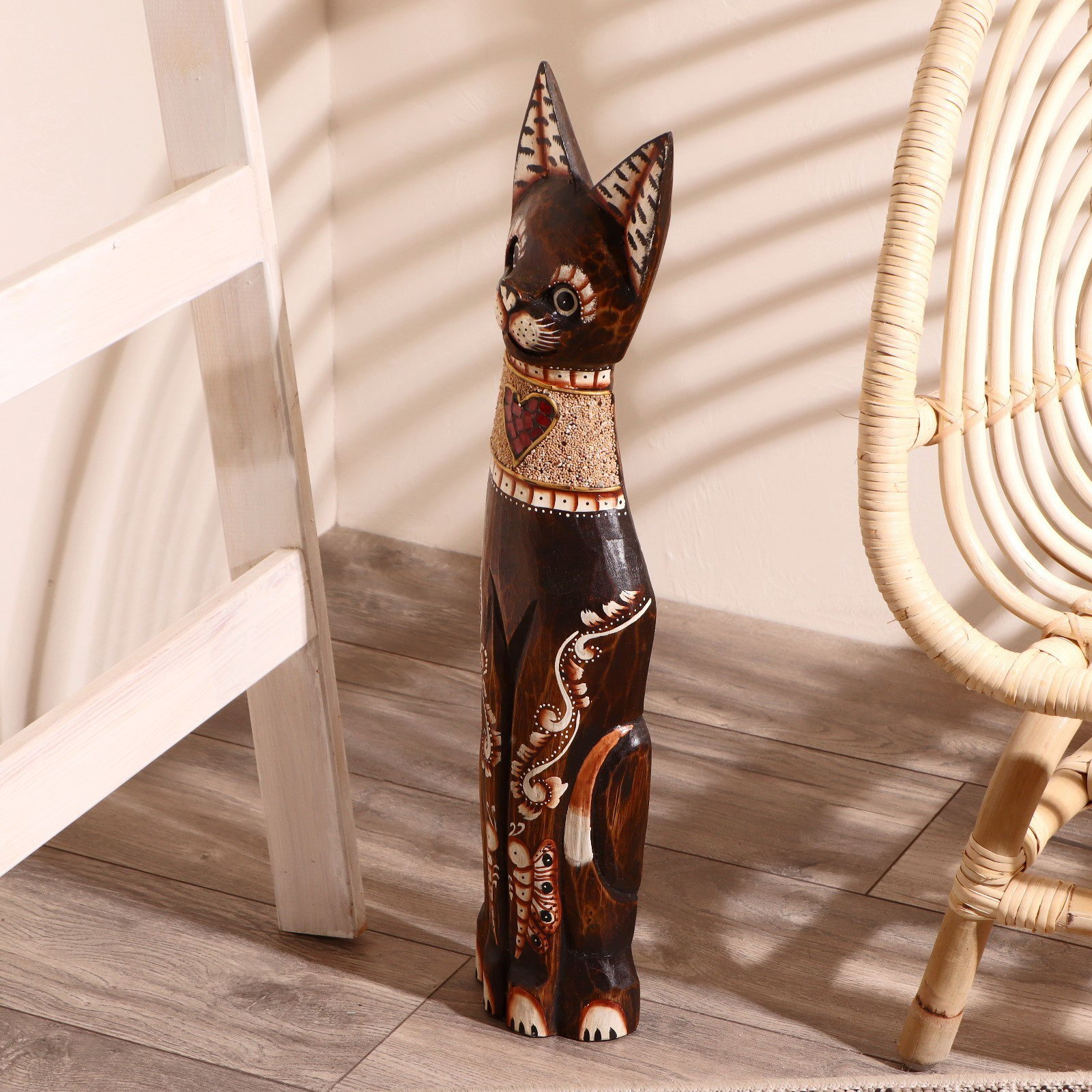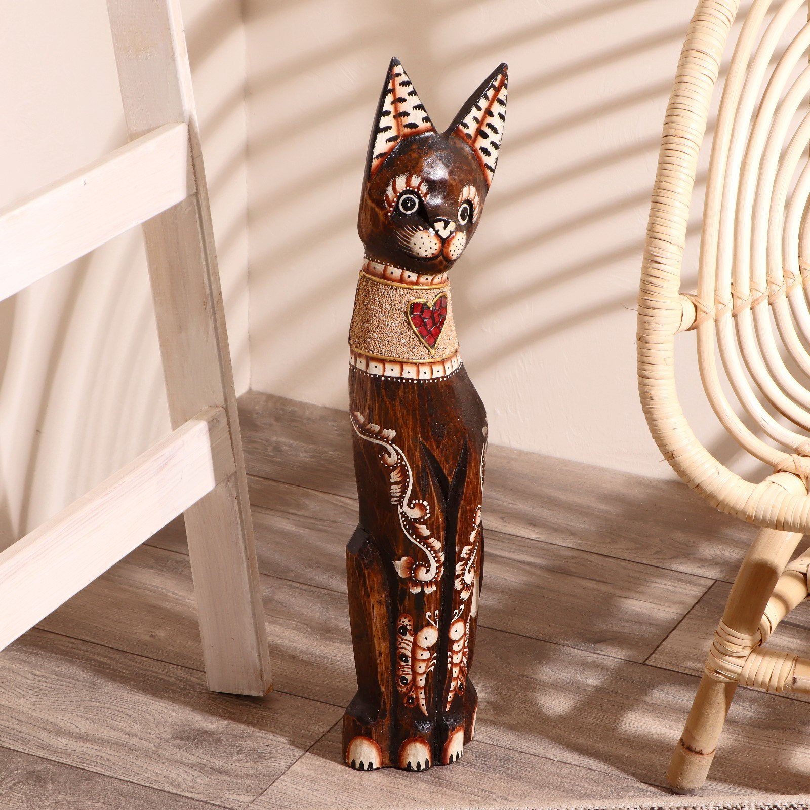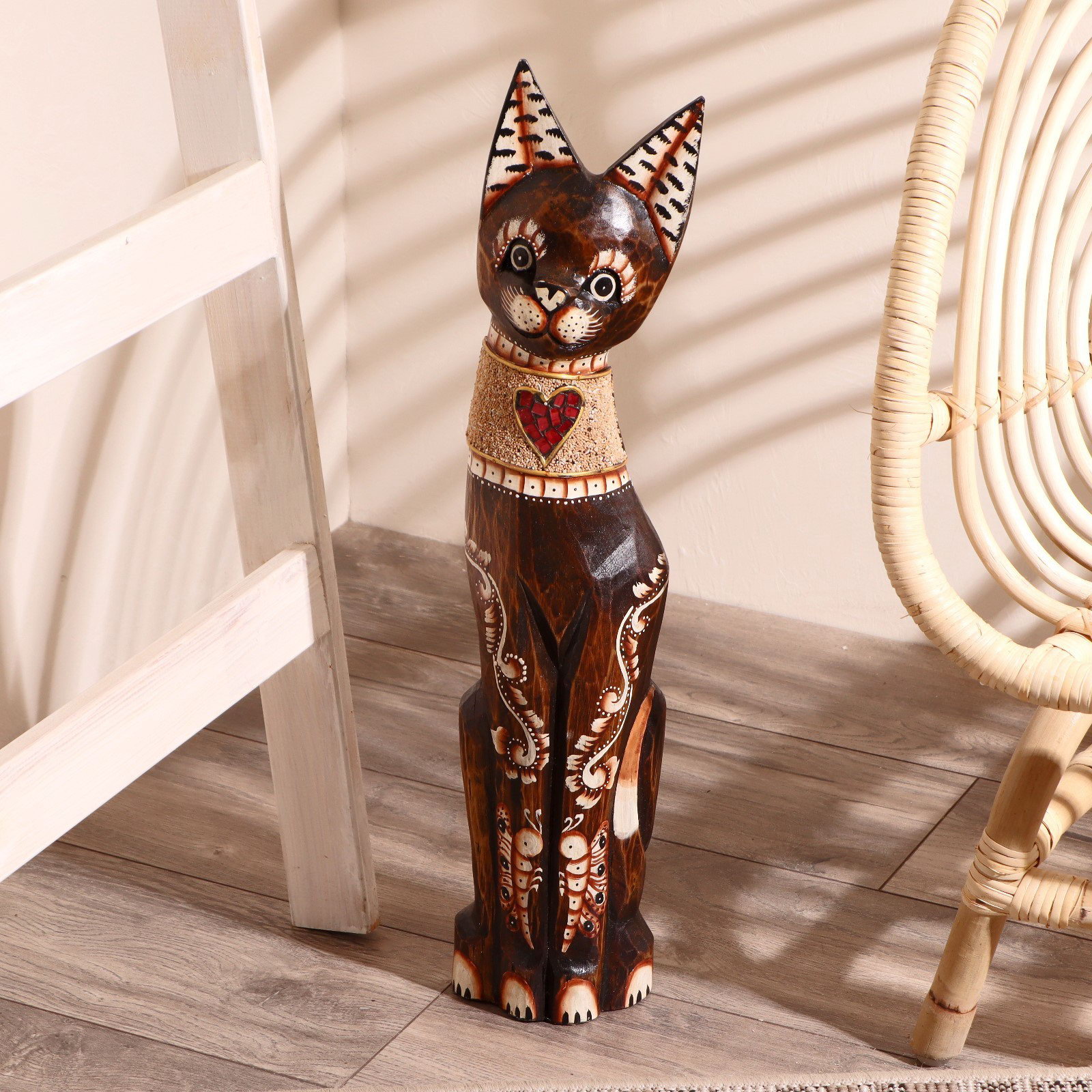 Сувенир дерево "Кошка с бабочками и сердечком на ошейнике" 60х12х6 см, 12x6x60 см., Индонезия