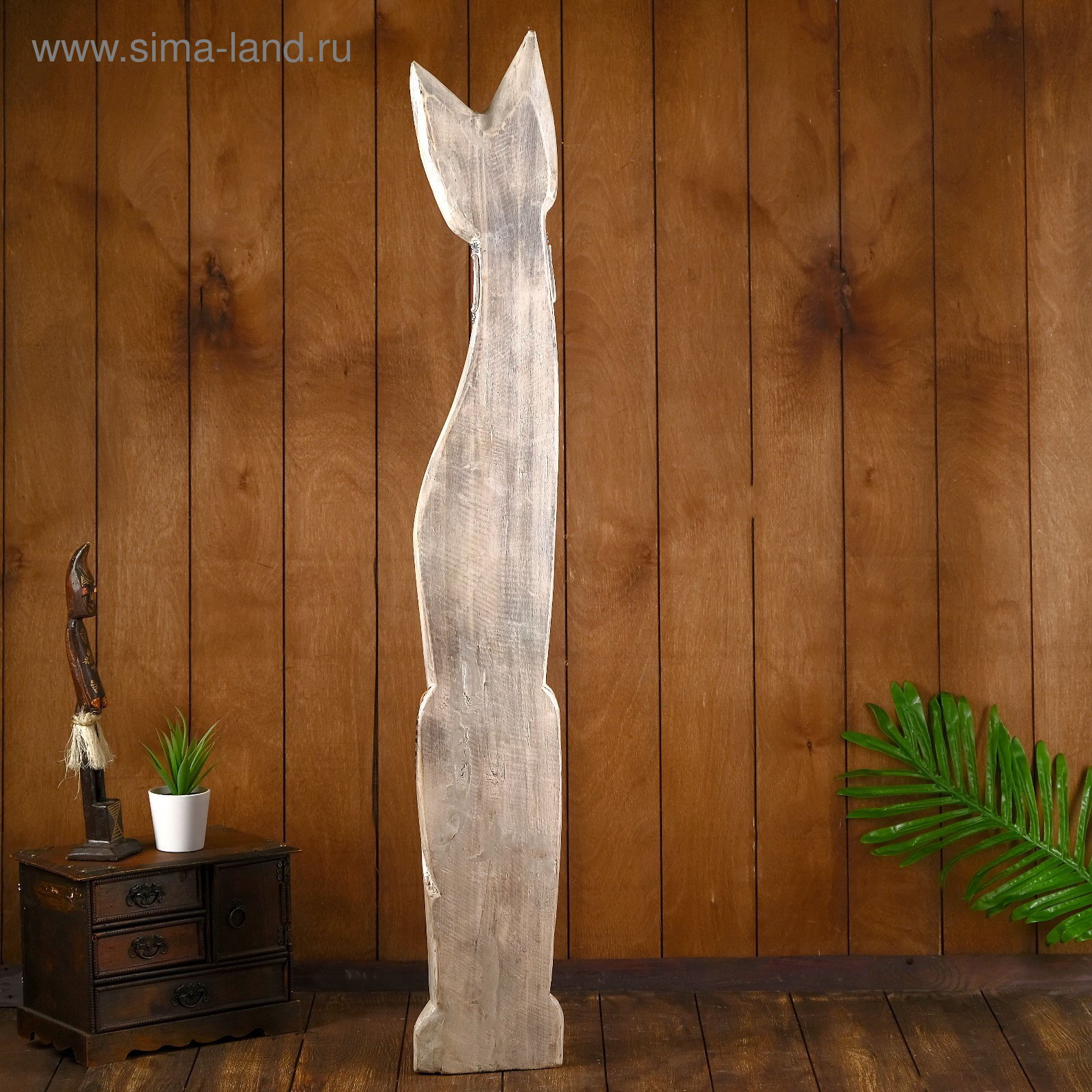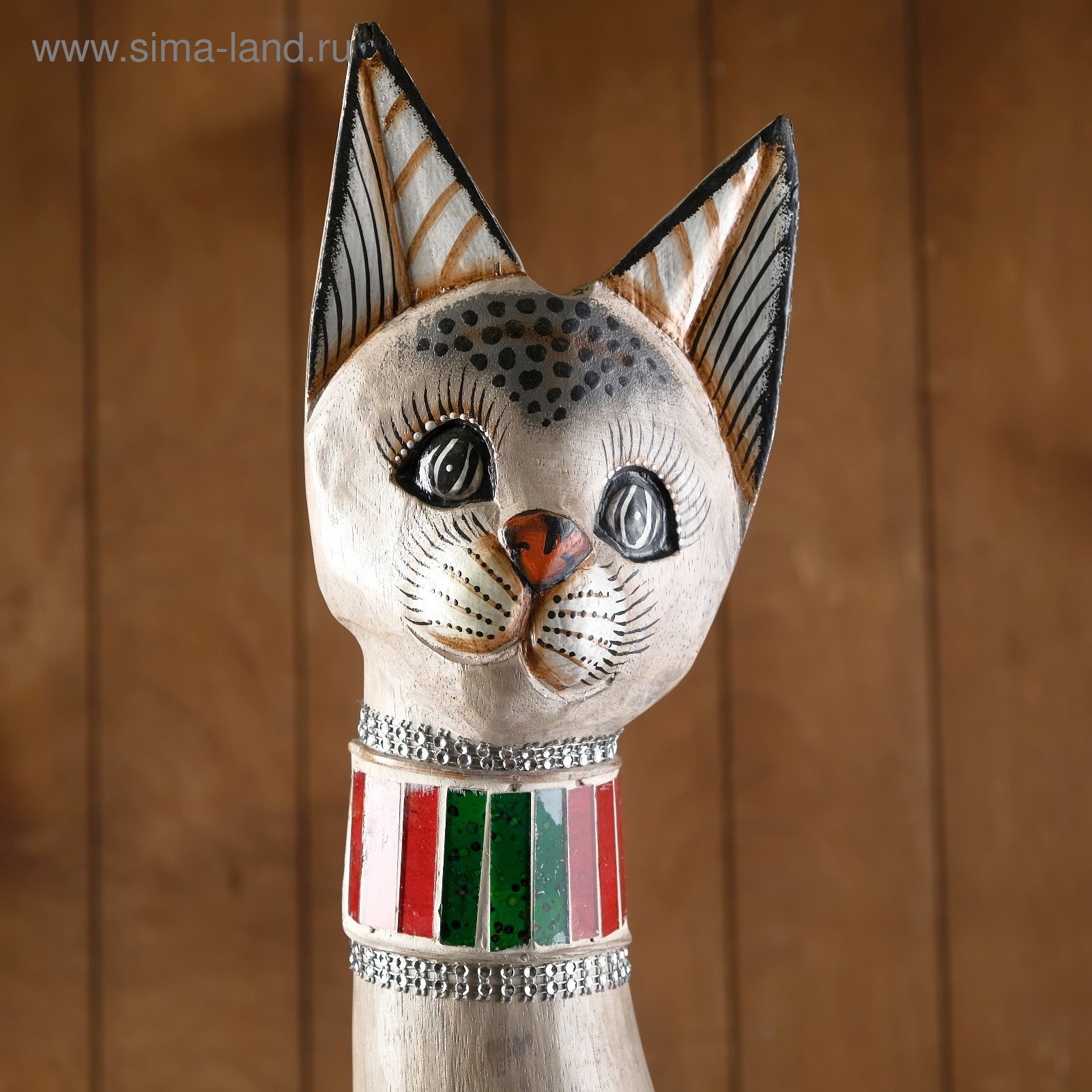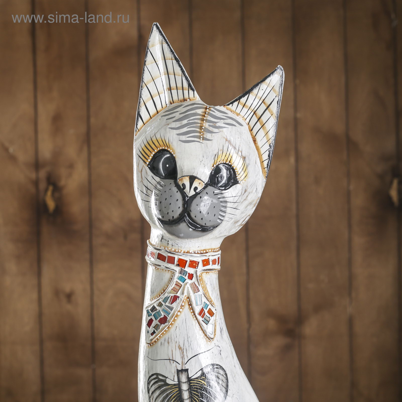 Сувенир дерево "Серая кошка в ошейнике из мозаики и с черепахой" 100х16х7 см, 16x7x100 см., Индонезия