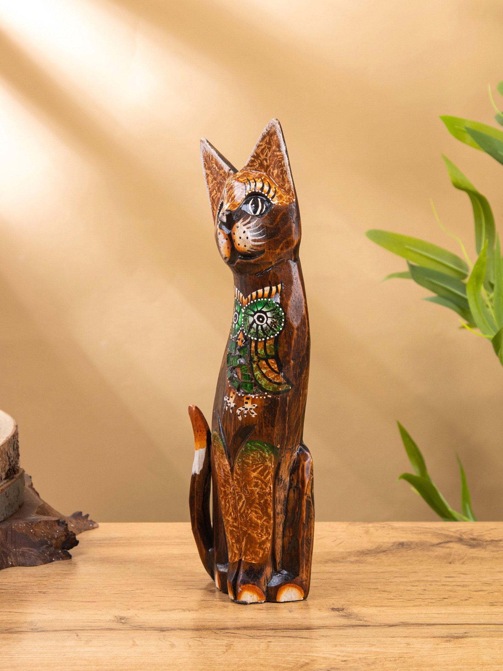Интерьерный сувенир "Кошка с совой", 30 см, 9x4x30 см., Индонезия