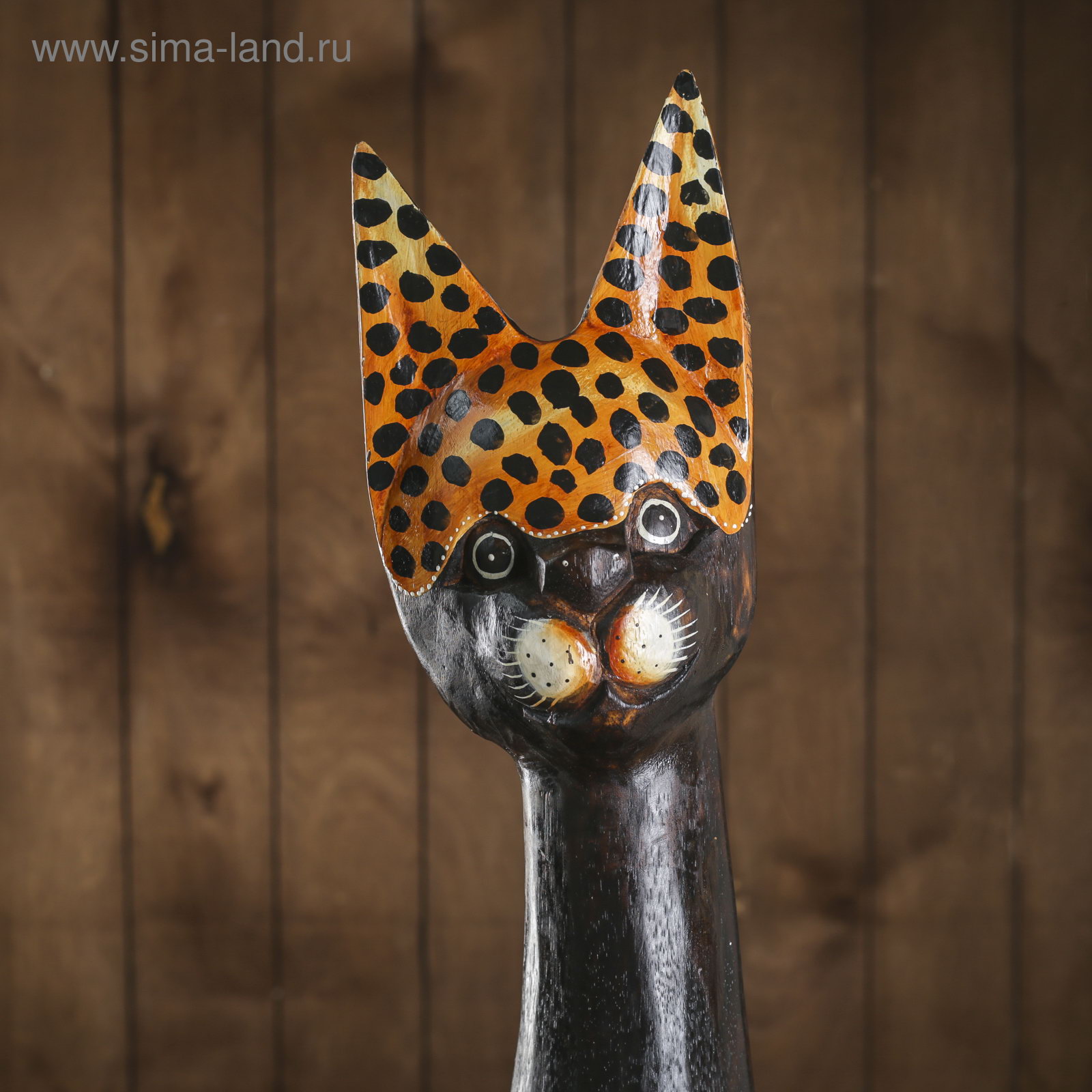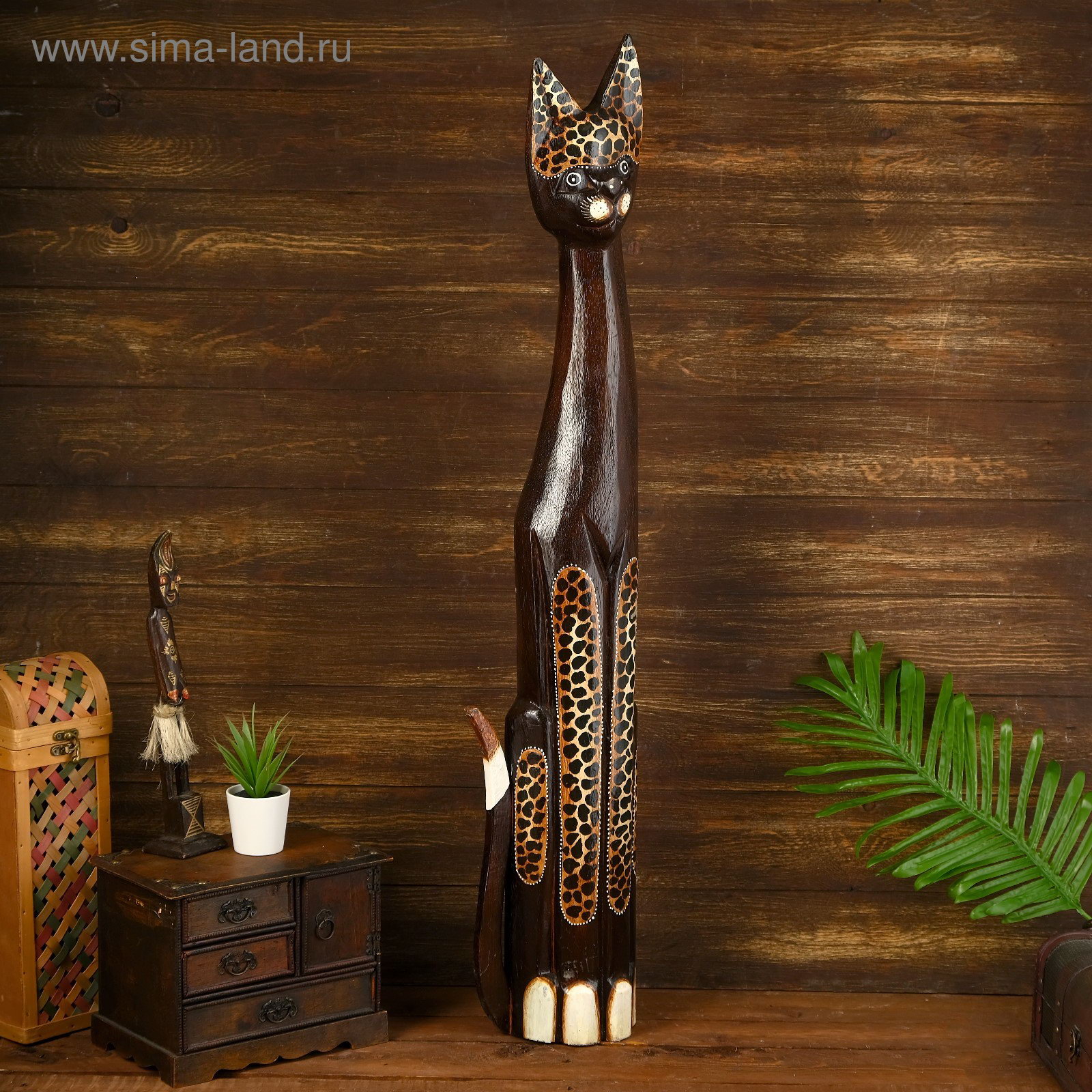 Сувенир "Кошка с леопардовыми лапками" дерево 7х16х100 см, 16x7x100 см., Индонезия
