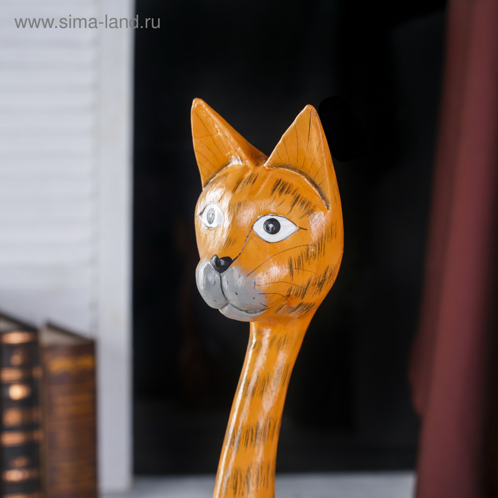 Сувенир "Рыжая кошечка с длинной шеей", 10x15x50 см, дерево, 15x10x50 см., Индонезия