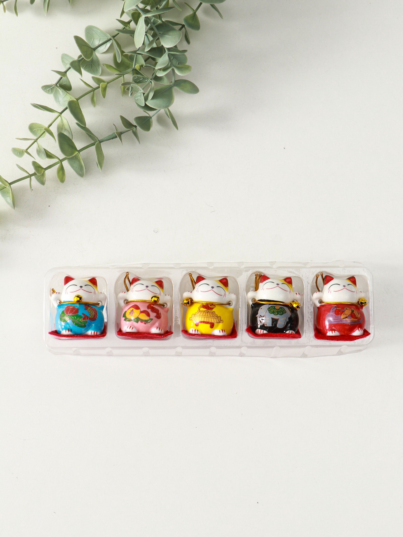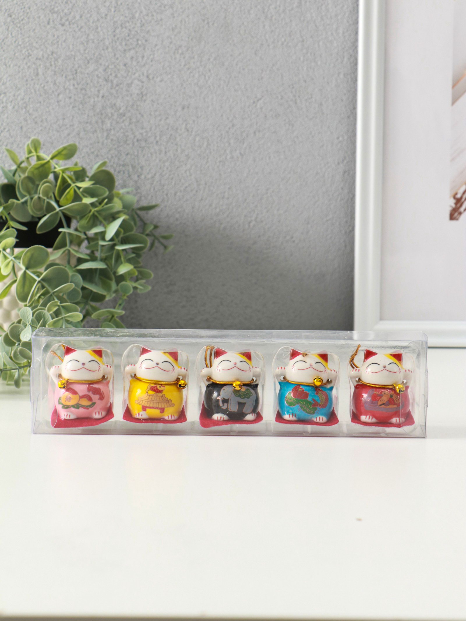 Набор фигурок керамика "Манэки-нэко с рисунком, на коврике", 5 шт., 4x4x3.5 см, 4x3.5x4 см., Китай