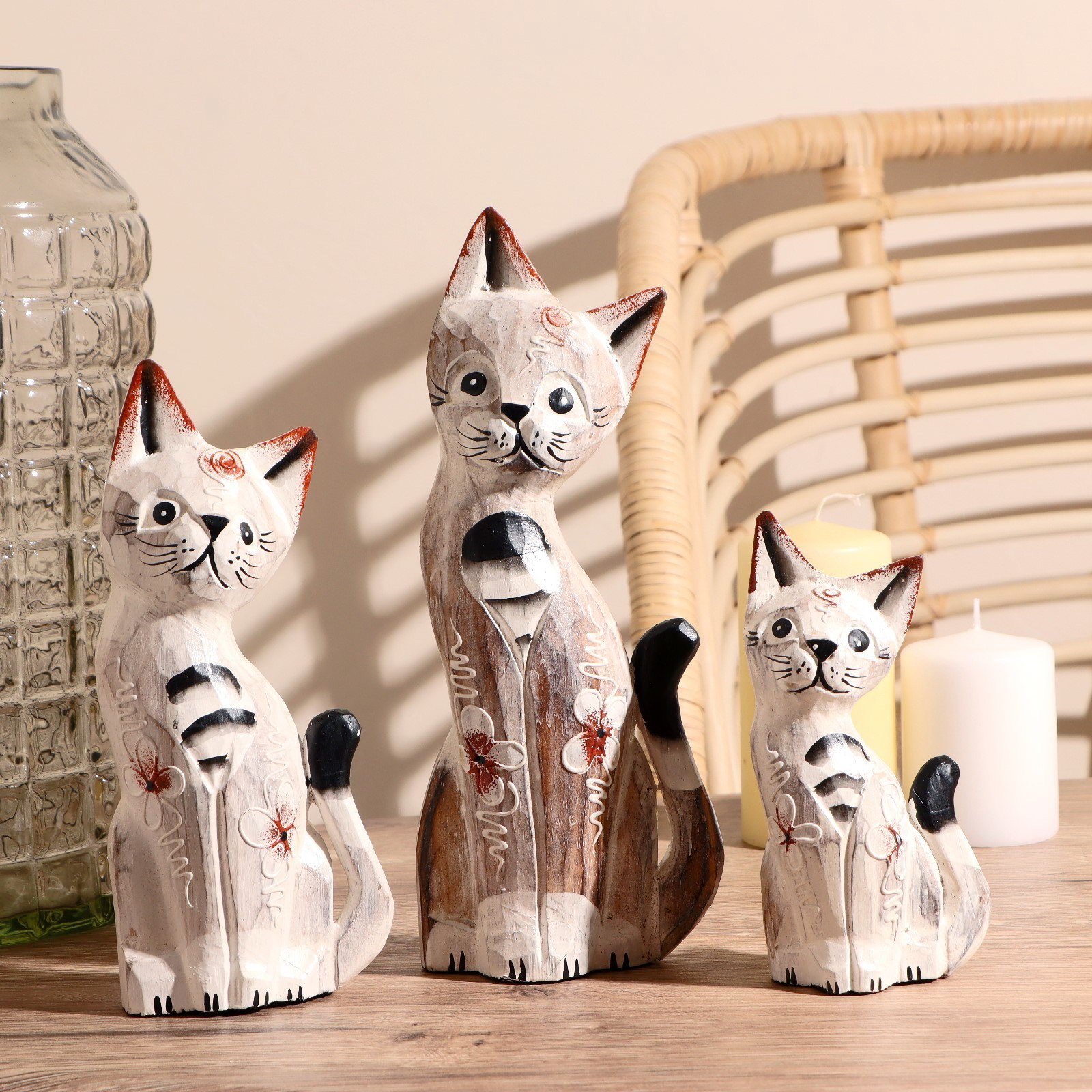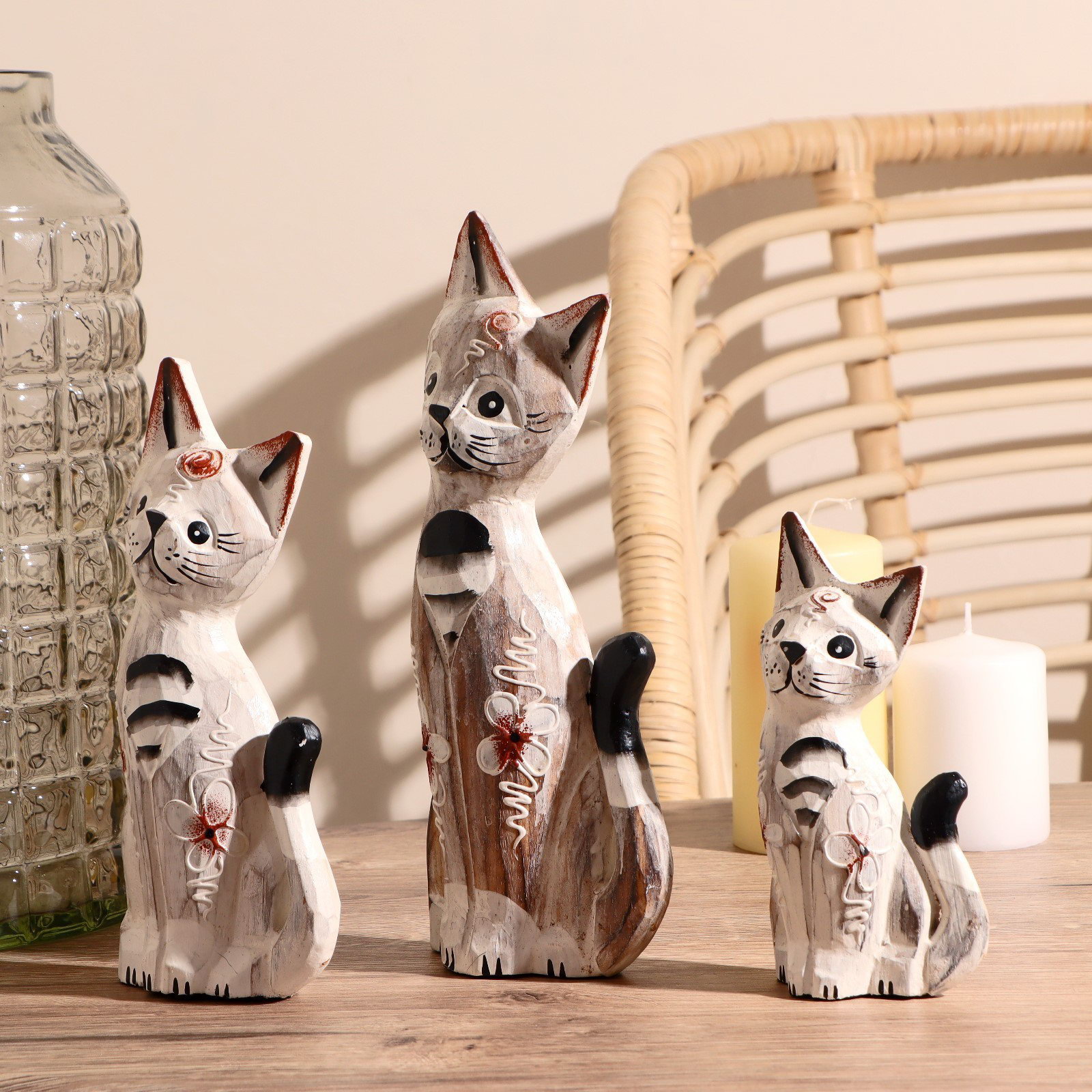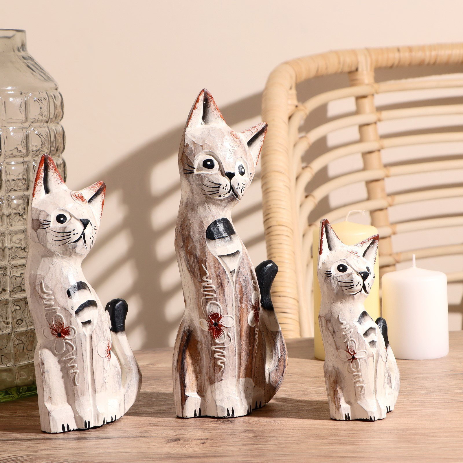 Сувенирный набор "Кошки белые", 15 см, 20 см, 25 см, 15x8x25 см, дерево, 8x15x25 см., Индонезия