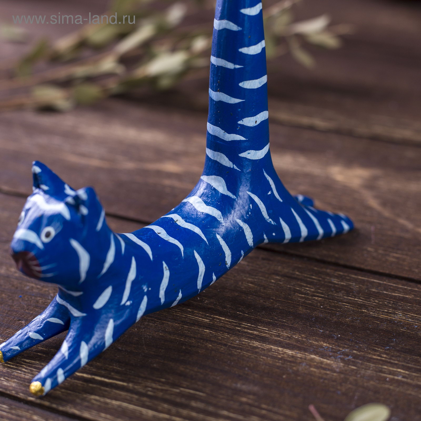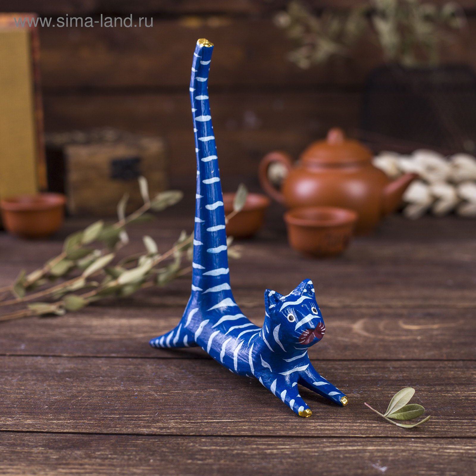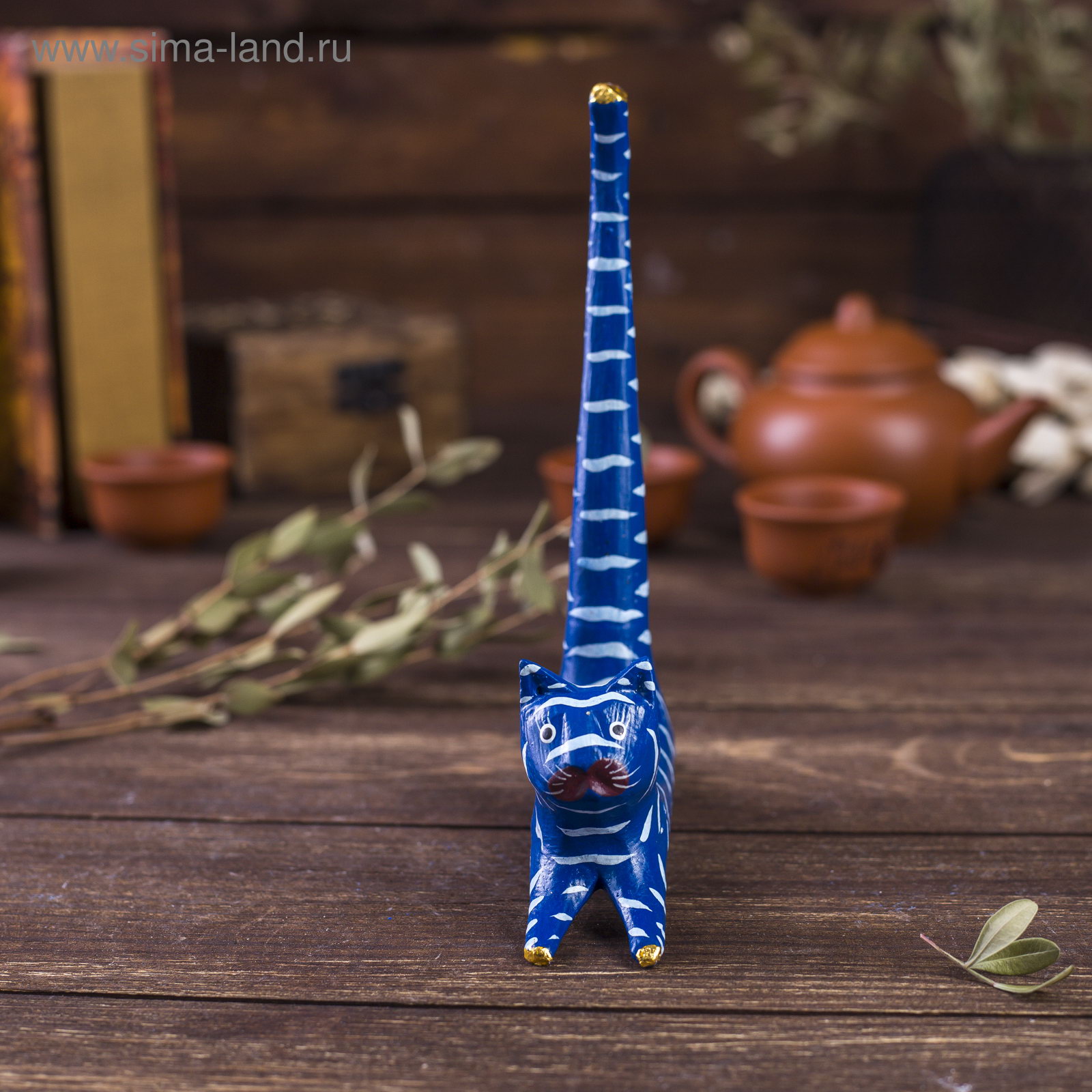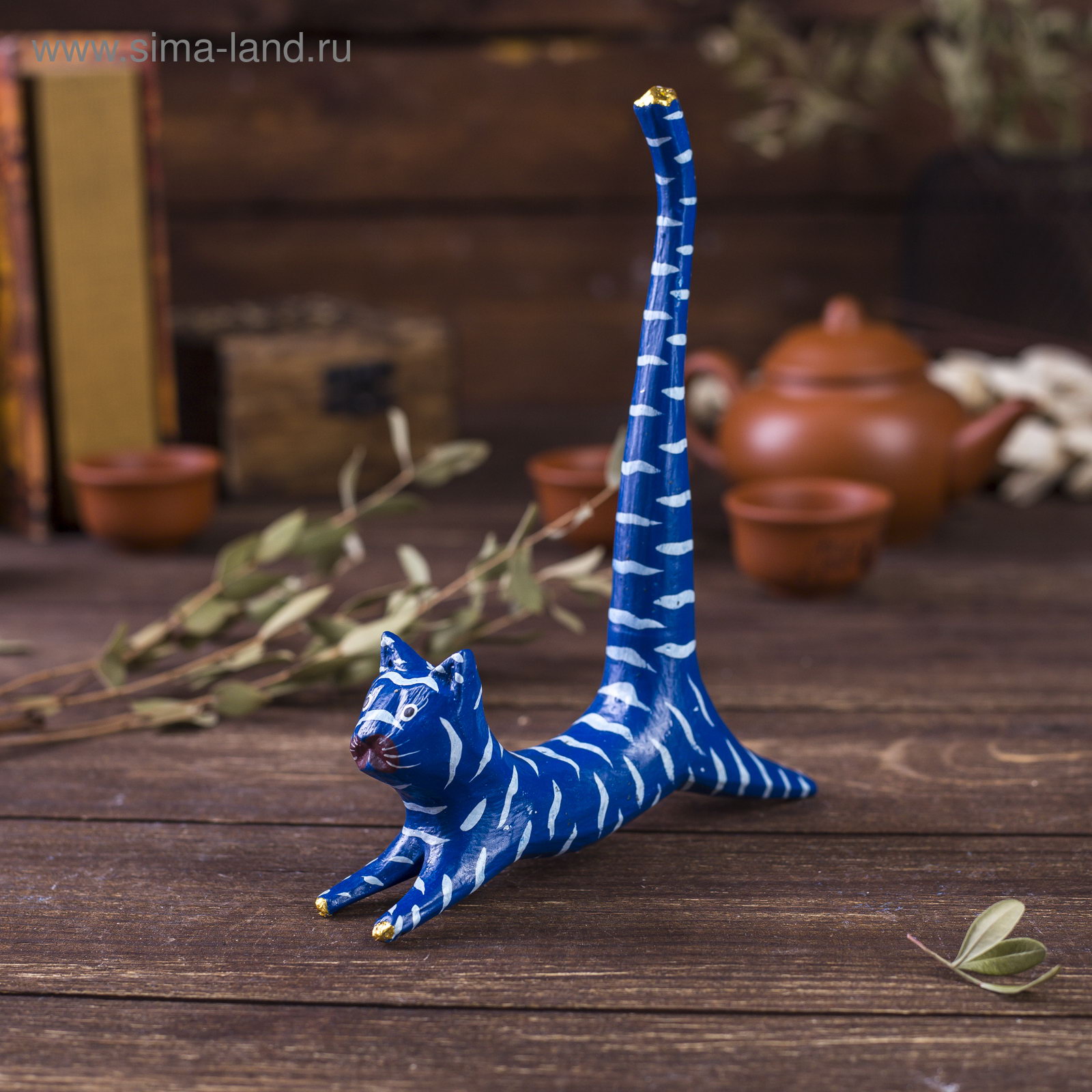 Сувенир дерево "Кошка синяя под кольца" 13х3х14 см, 3x13x14 см., Индонезия