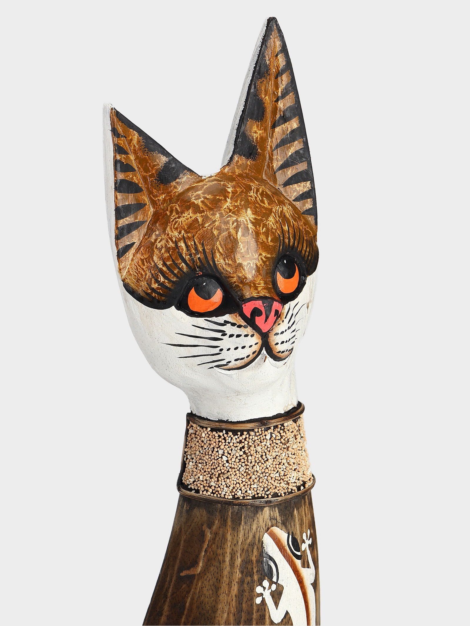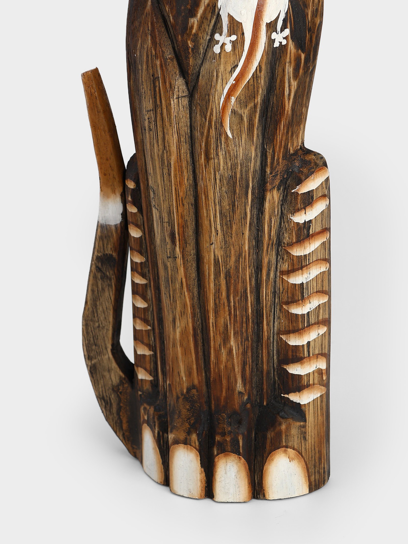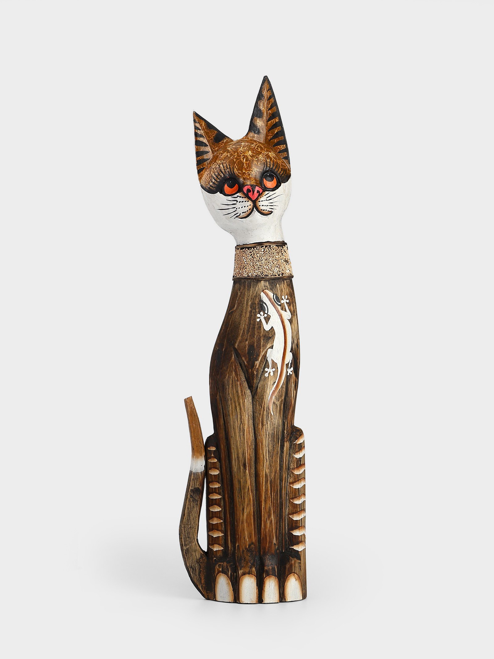 Сувенир "Серая кошка в ошейнике с ящерками", 60x12x6 см, дерево, 12x6x60 см., Индонезия