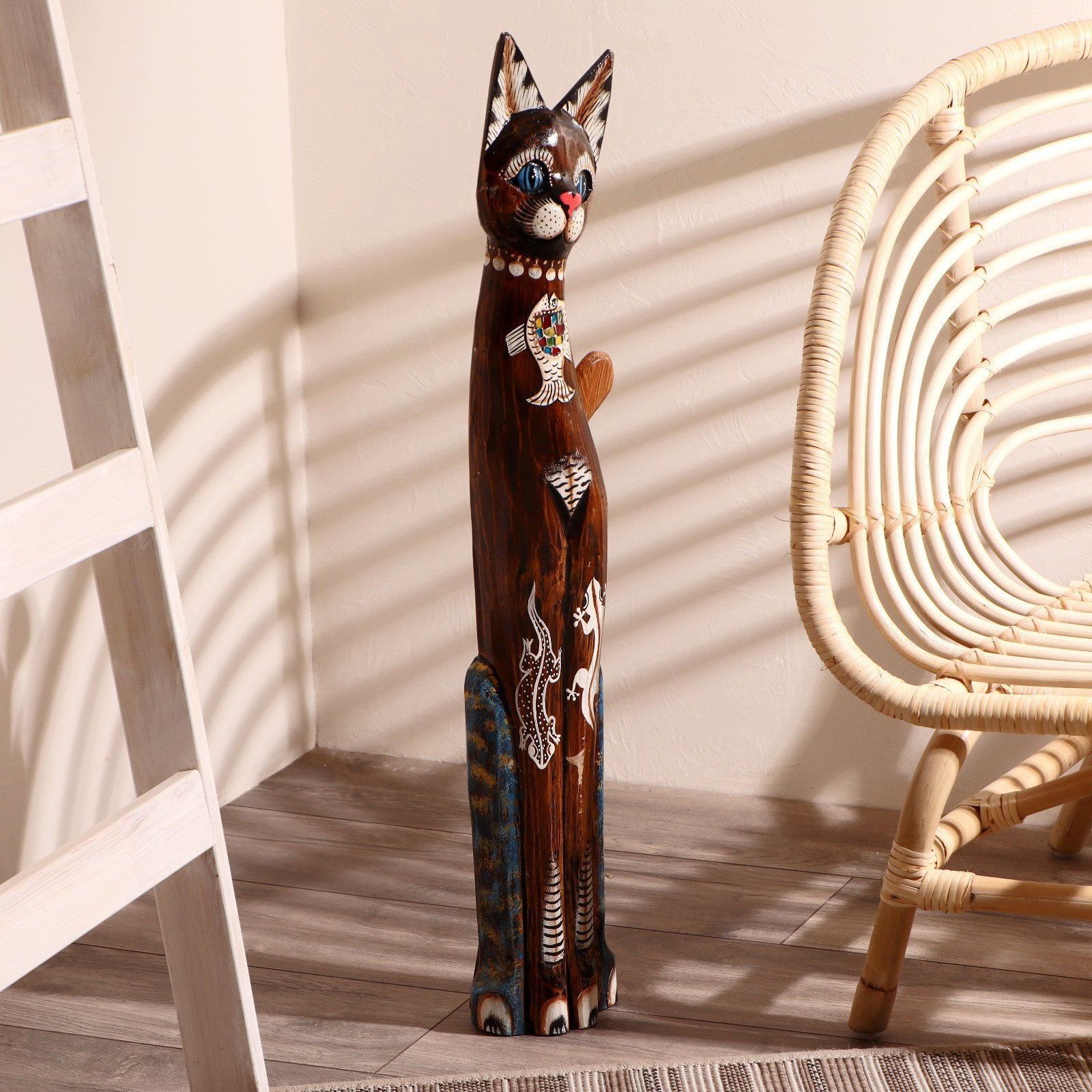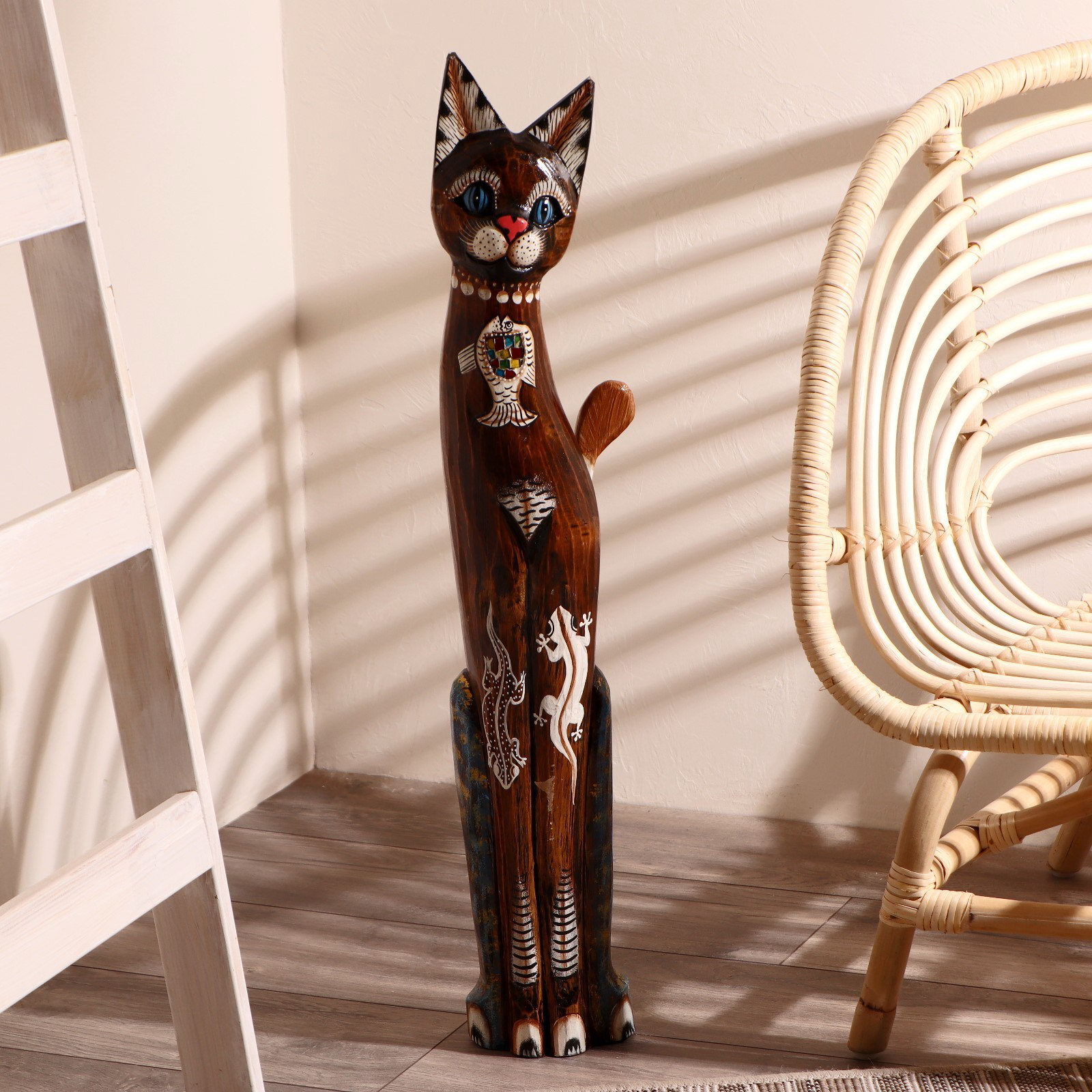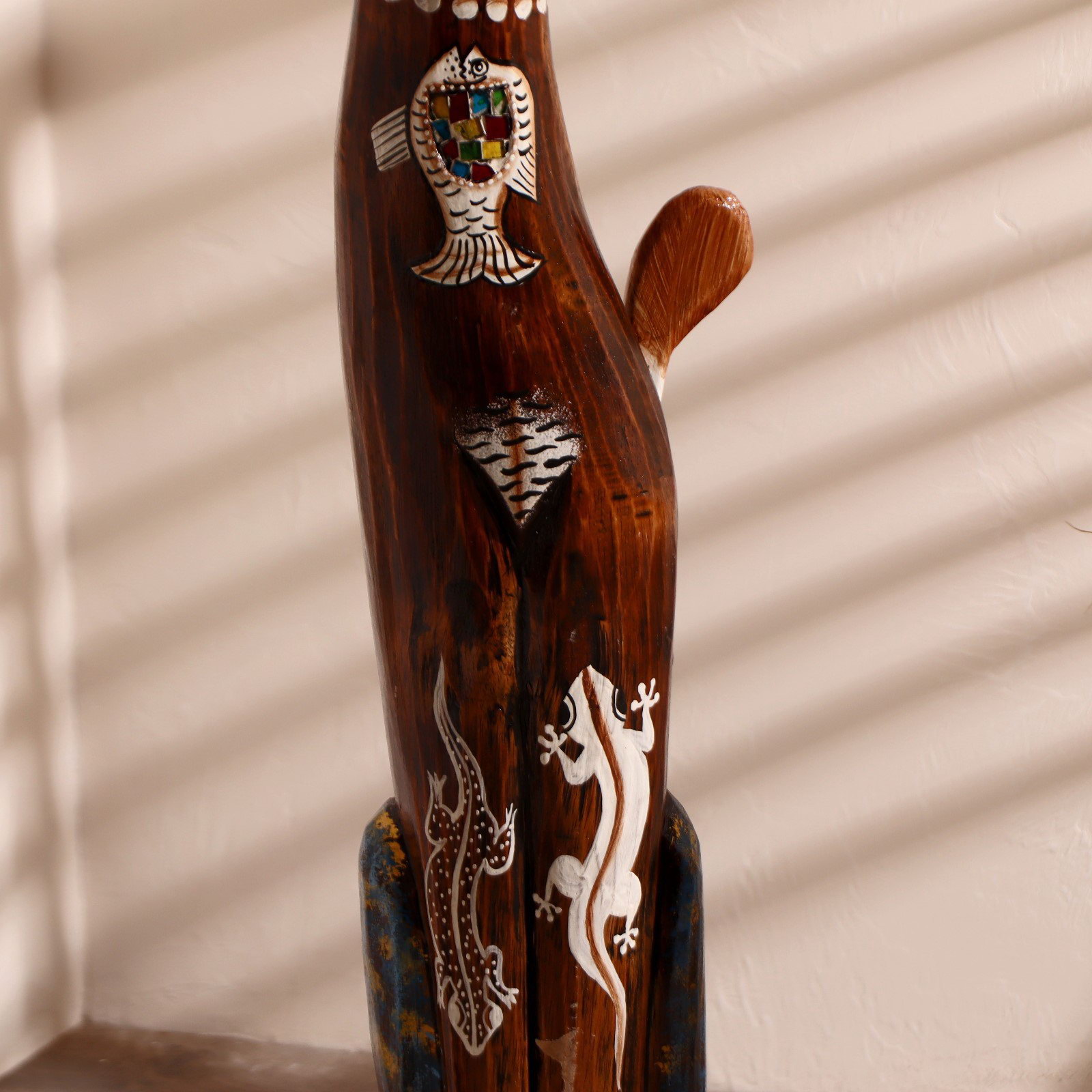 Сувенир "Кошка морская с рыбкой и ящерками", 80x13x7 см, дерево, 13x7x80 см., Индонезия