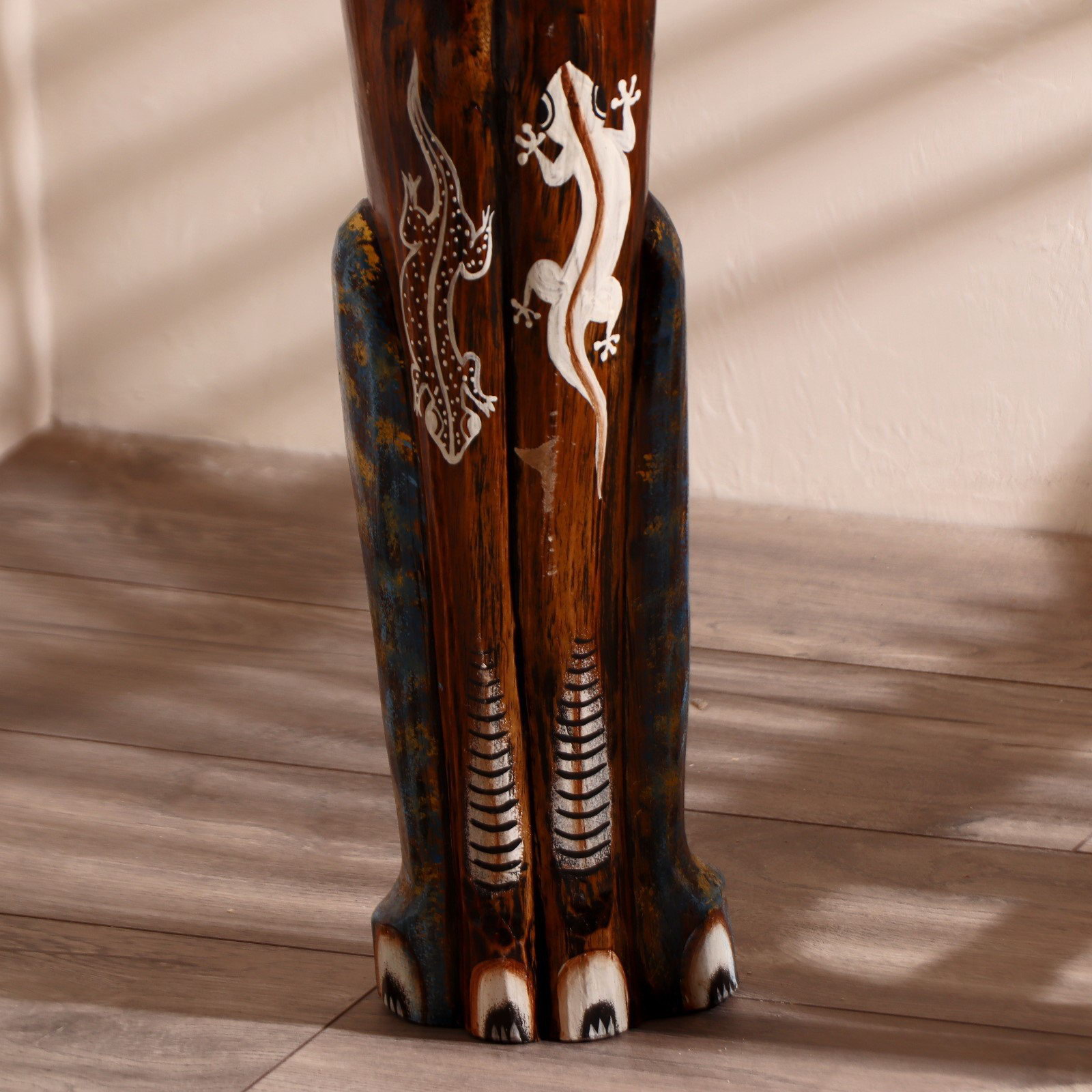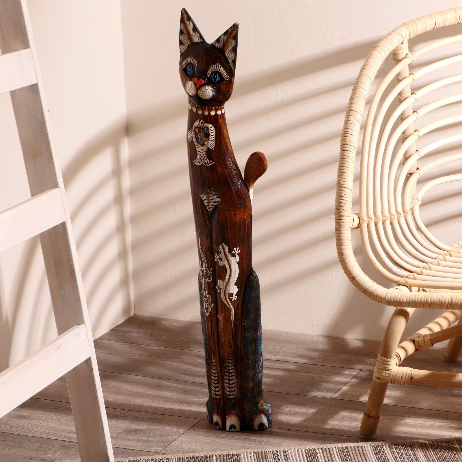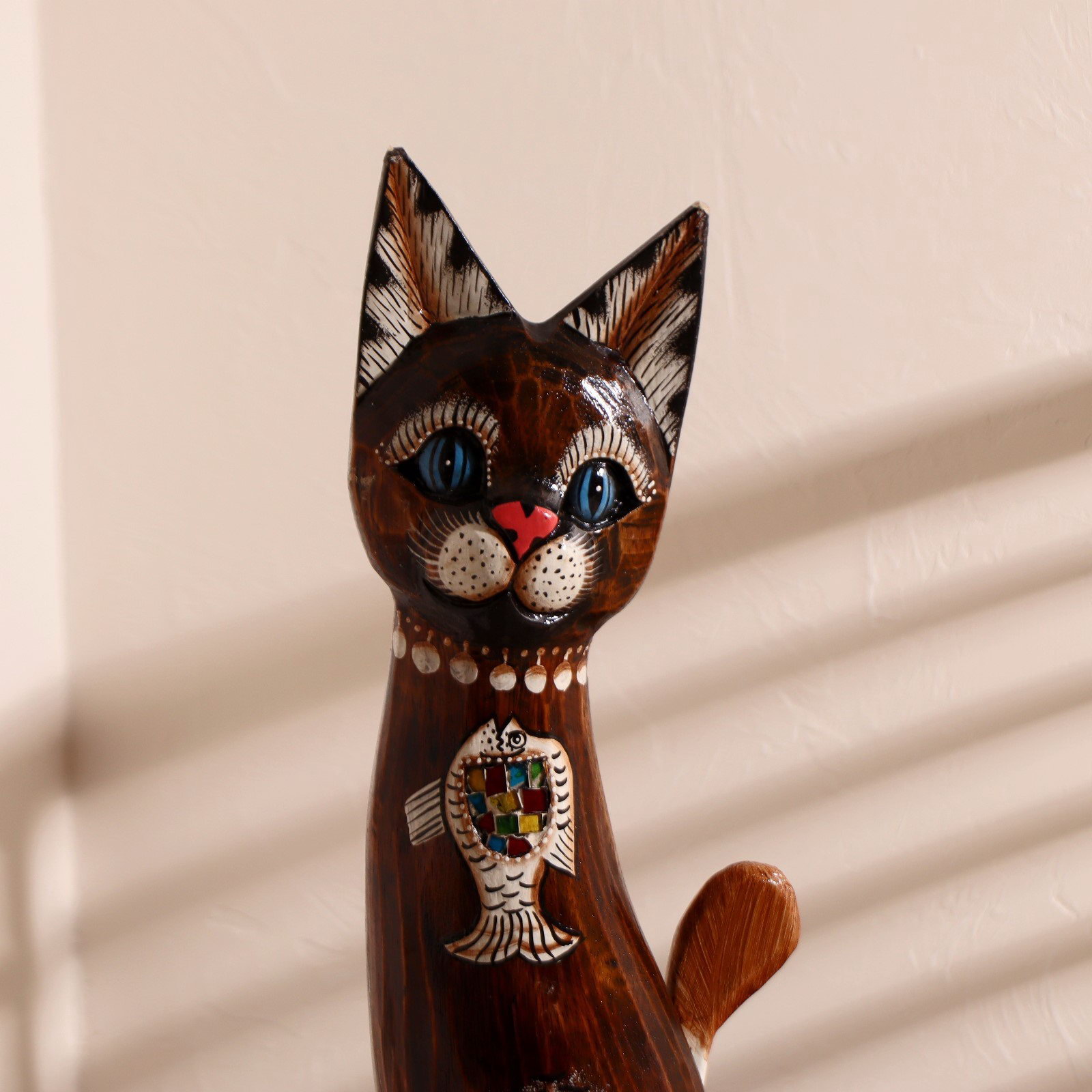 Сувенир "Кошка морская с рыбкой и ящерками", 80x13x7 см, дерево, 13x7x80 см., Индонезия