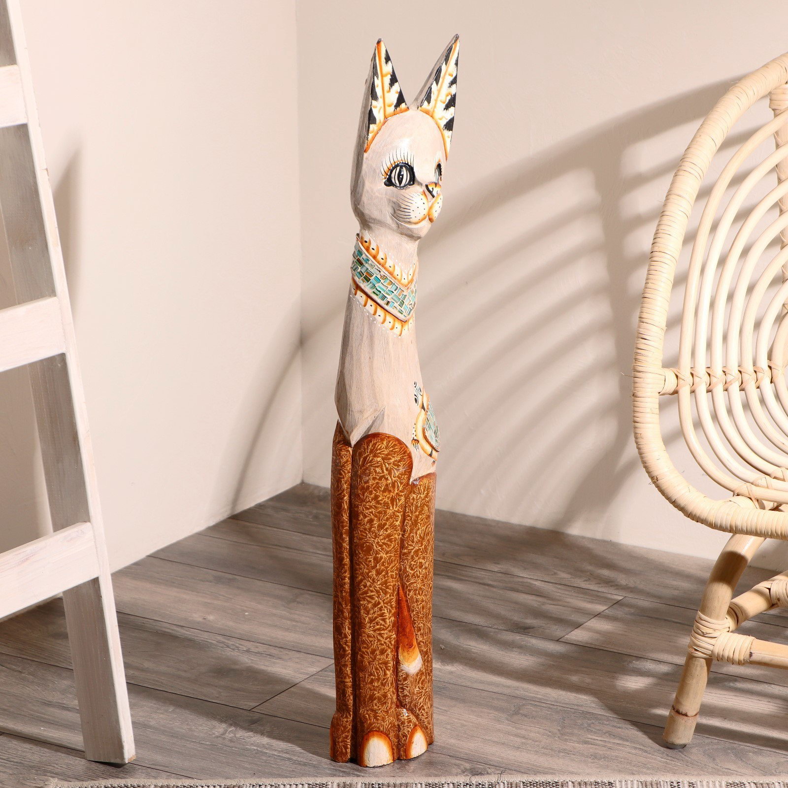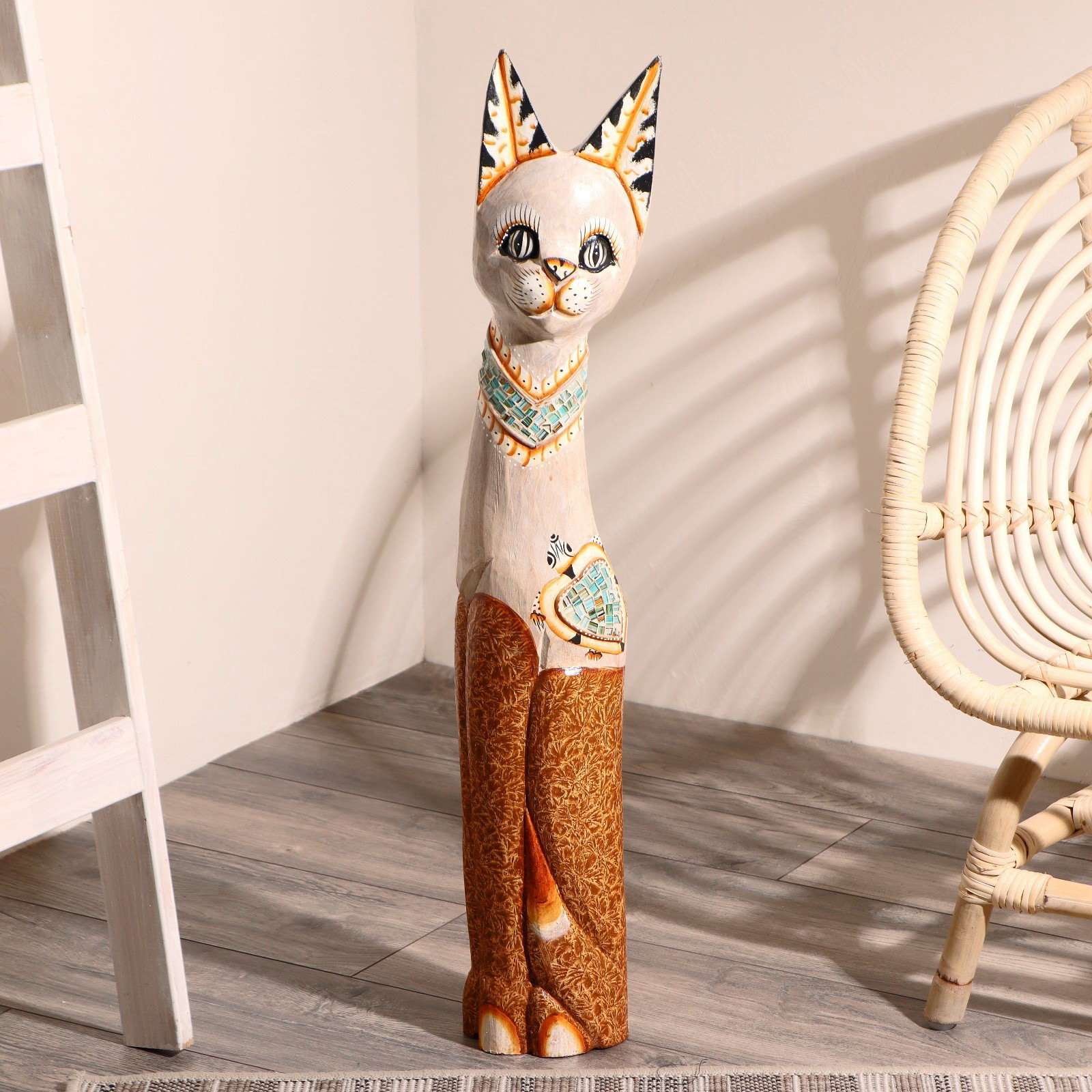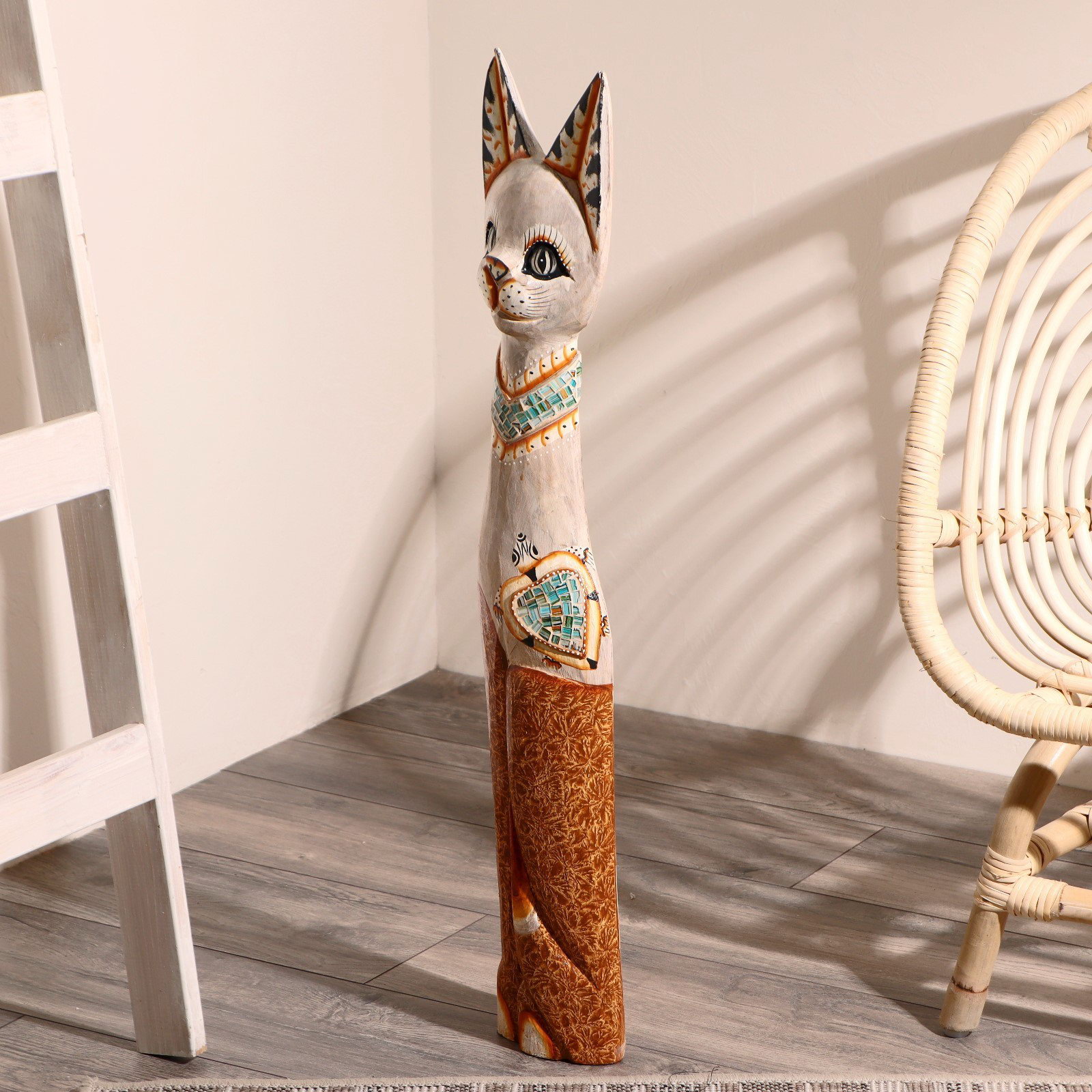 Сувенир "Кошка в ошейнике с сердечком", 80 см, дерево, 18x6x80 см., Индонезия