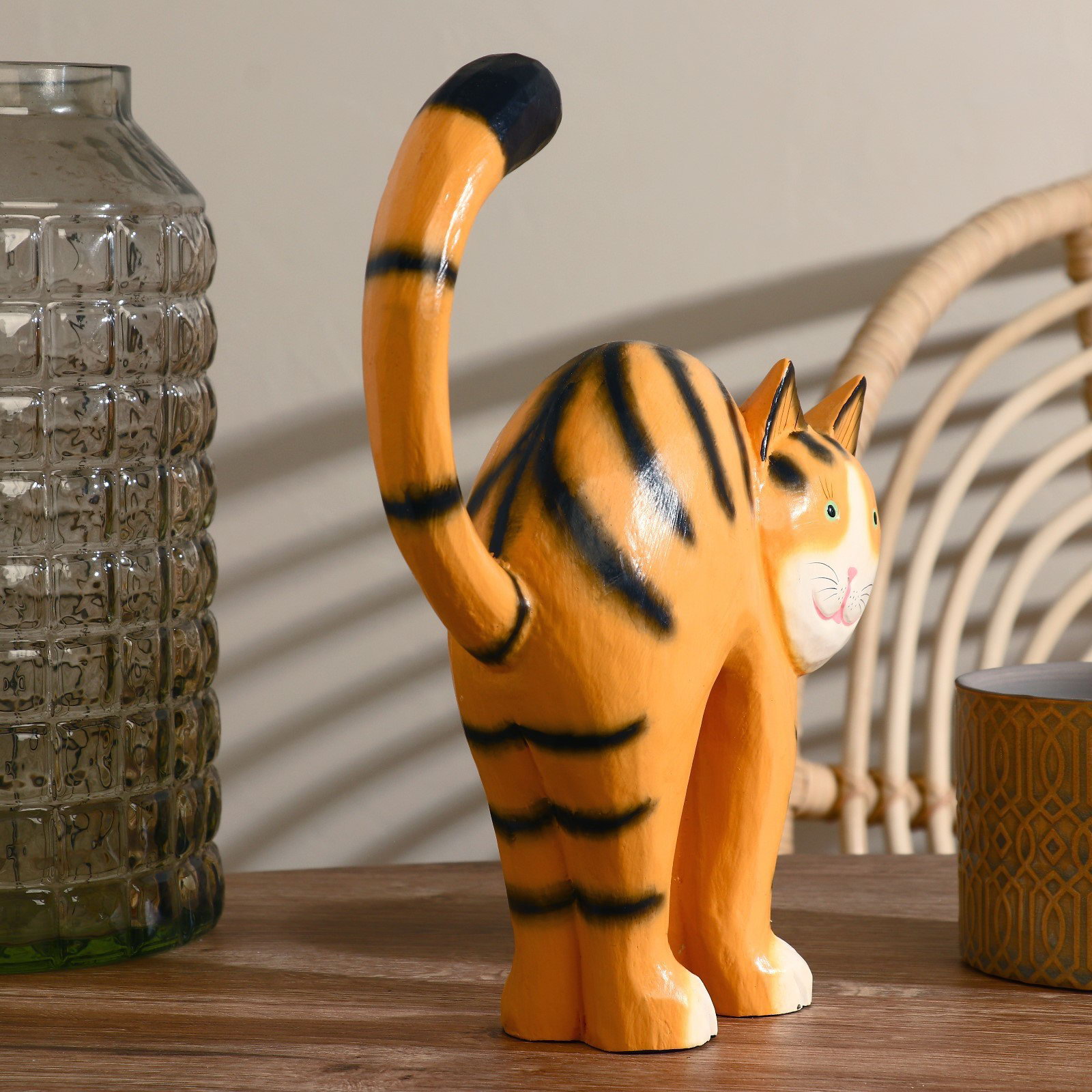 Сувенир дерево "Кошка" тигровая 25х30х7 см, 30x25x7 см., Индонезия