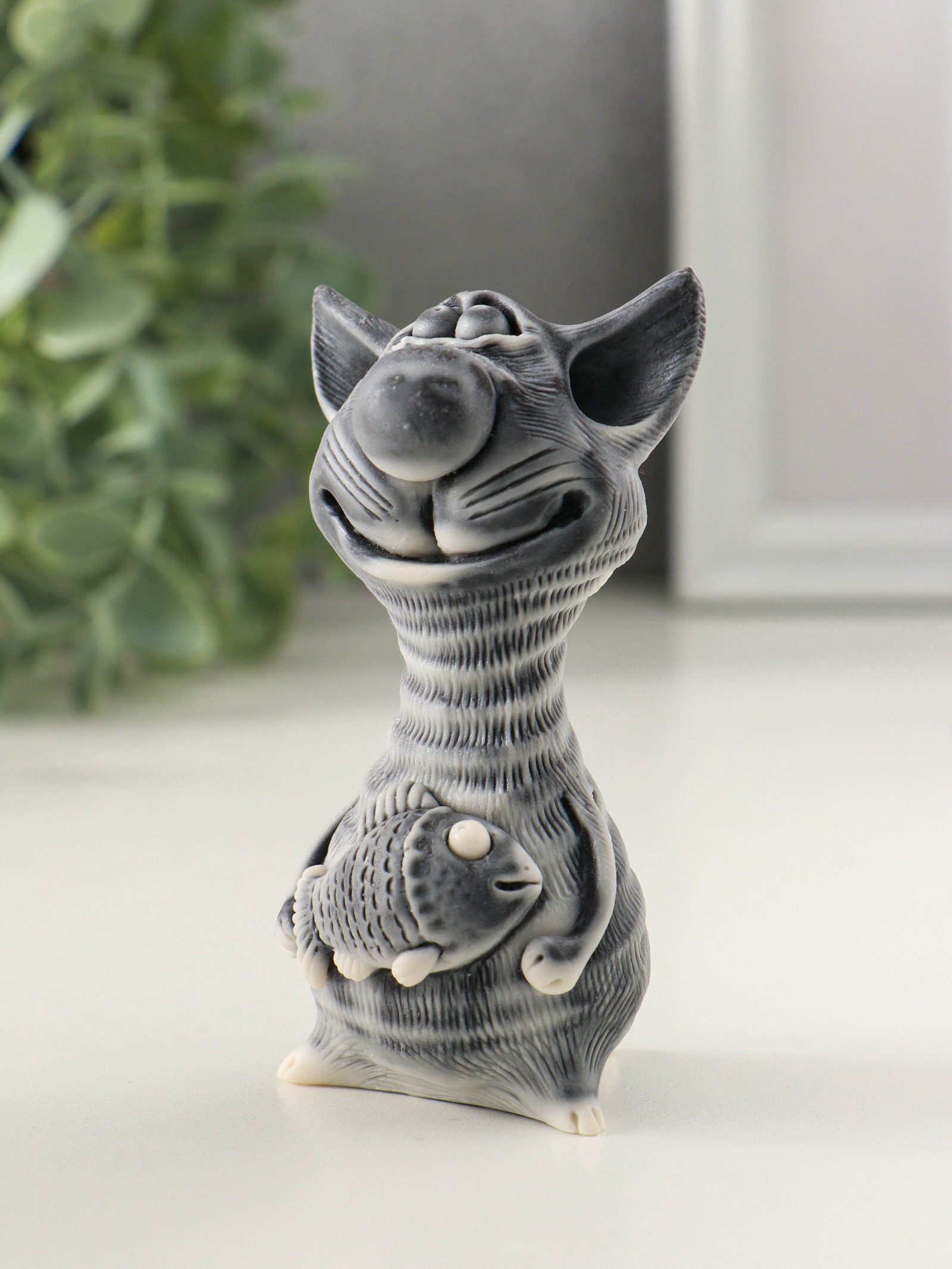 Фигурка "Кот худой с рыбой", 9.5 см, Россия