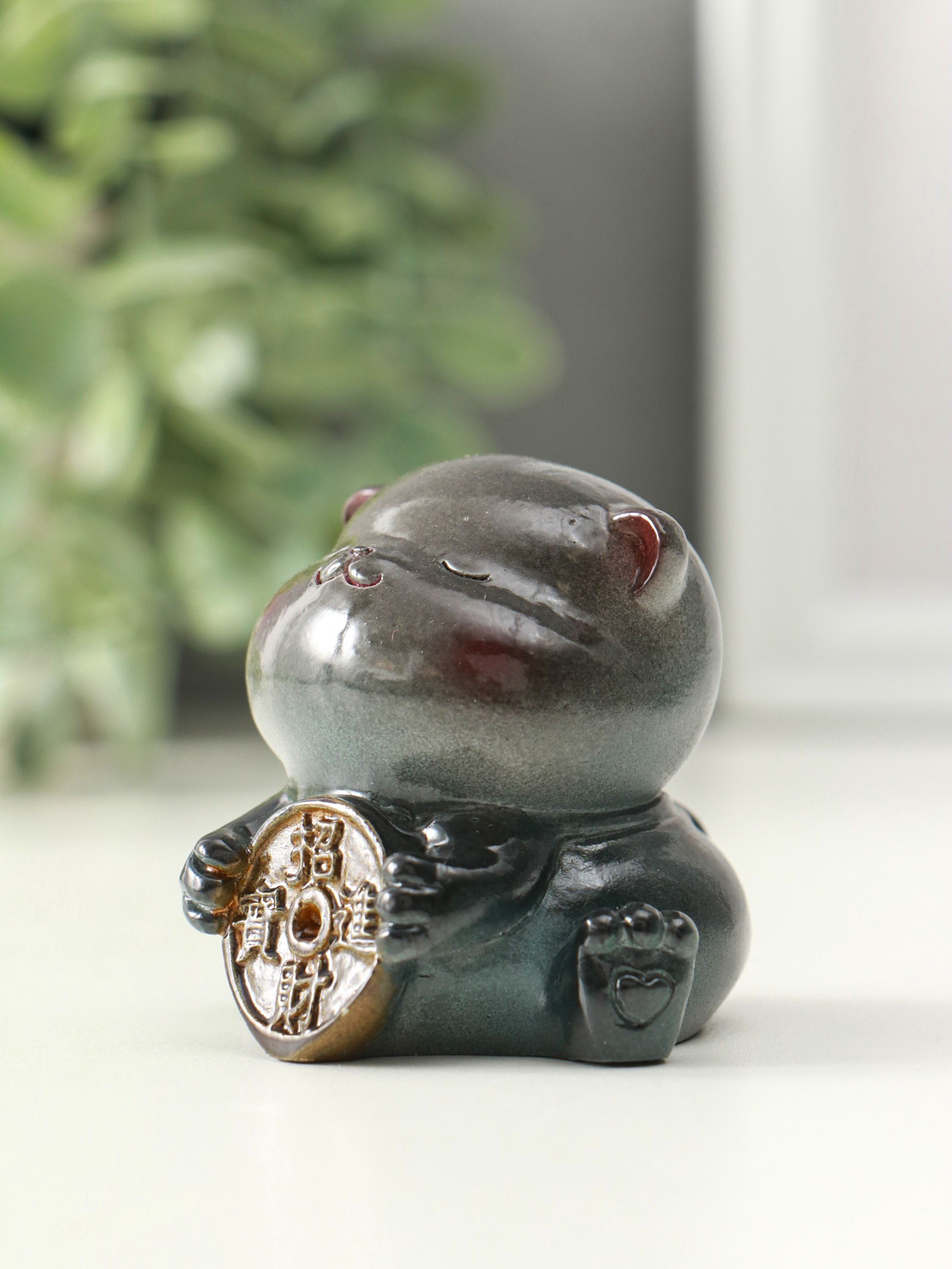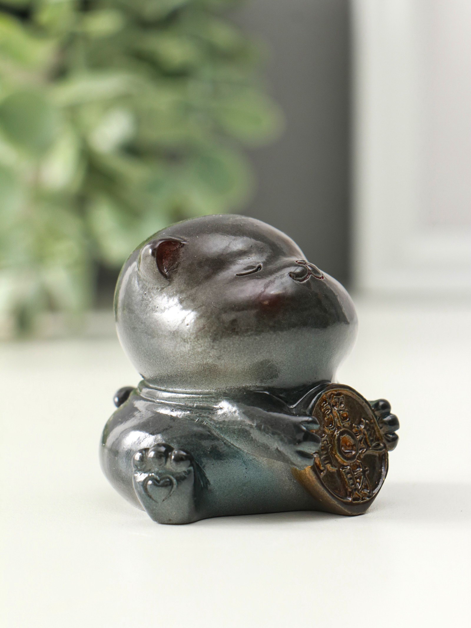 Фигурка для чайной церемонии "Кот с монетой привлечение богатства", меняет цвет, 6x5.5x5.5 см, 5.5x6x5.5 см., Китай