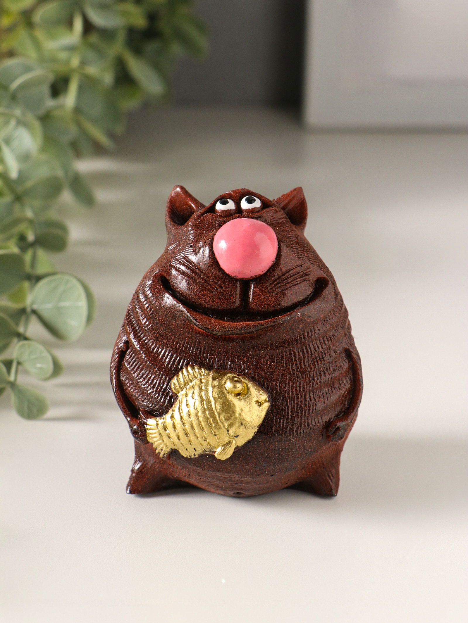 Фигурка "Кот с рыбой", 7x5.5x6 см, МИКС, Россия