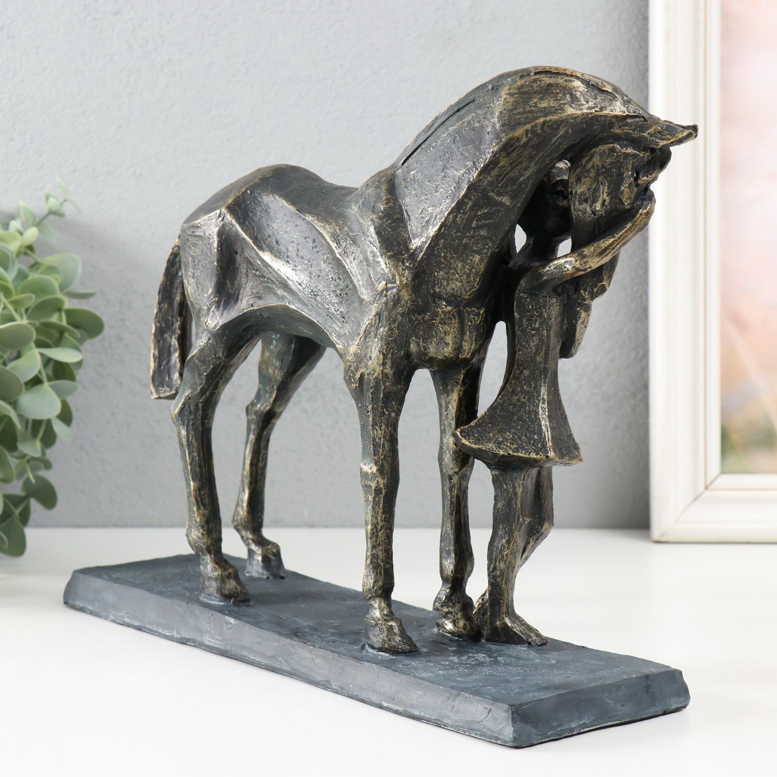 Фигурка полистоун "Девочка с конём" под металл, 23.5х8.7х29.5 см, 8.7x29.5x23.5 см., Китай