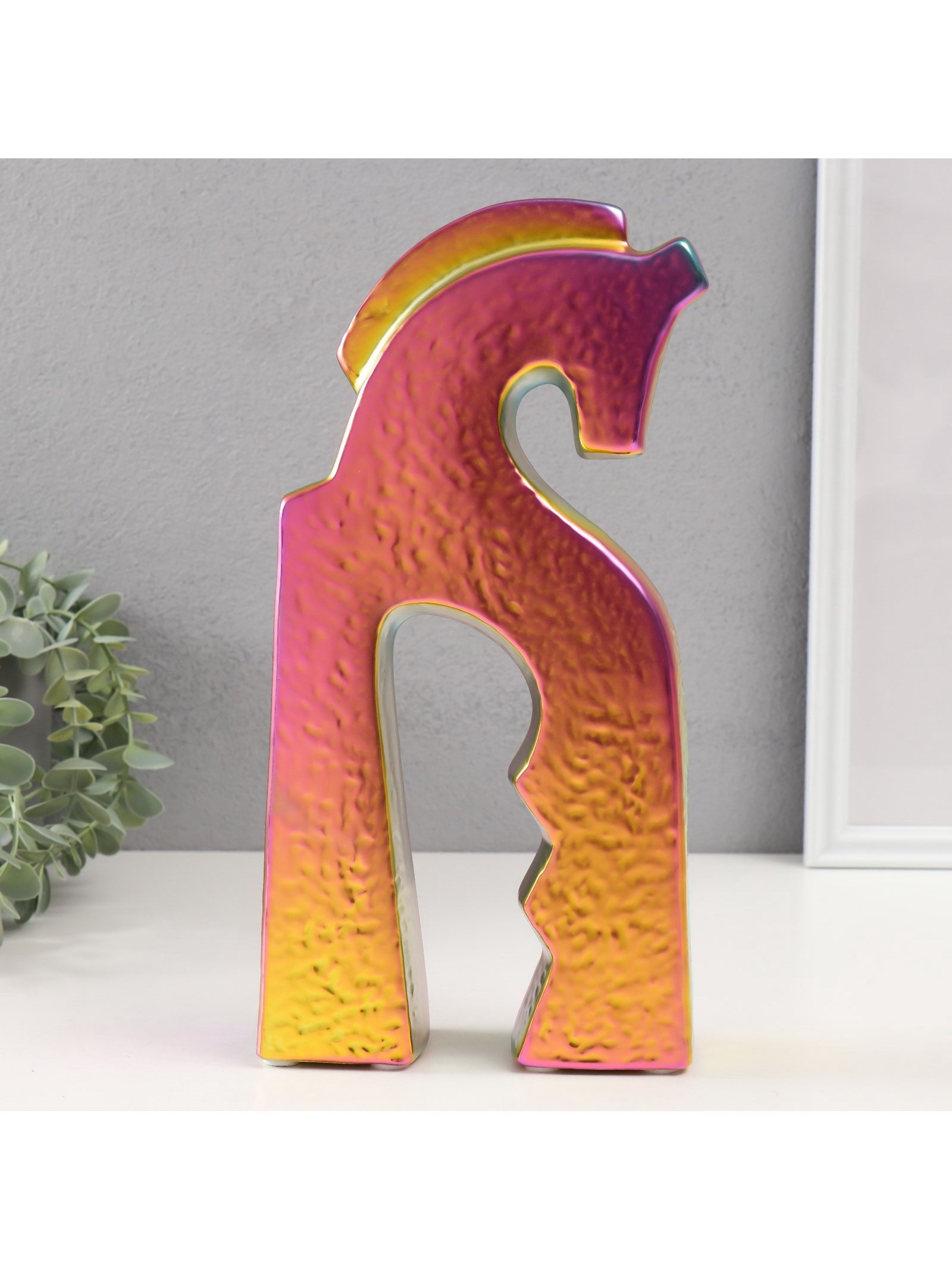 Тематика праздника: Новый год, Универсальная тематика Размер упаковки: 15.5 x 7 x 29.5 см. Цвет: Разноцветный Одноцветный: Нет Высота, см: 29 Покрытие: Гальваническое Тематика: Животный мир Вид упаковки: Коробка картонная Можно использовать на открытом воздухе: Нет Форма фигуры: Лошадь, конь Персонаж: Животные, птицы Набор: Нет tnved: 6913909000 Символ года: Символ года 2026 (Лошадь) Эта керамическая фигурка в виде лошади уникальный арт-объект для вашего интерьера. Динамичная форма и переливающаяся гальваническая поверхность создают ощущение живого движения, застывшего в керамике. Статуэтка станет ярким акцентом на полке или рабочем столе, привнося в пространство магию и грацию. Ключевые детали