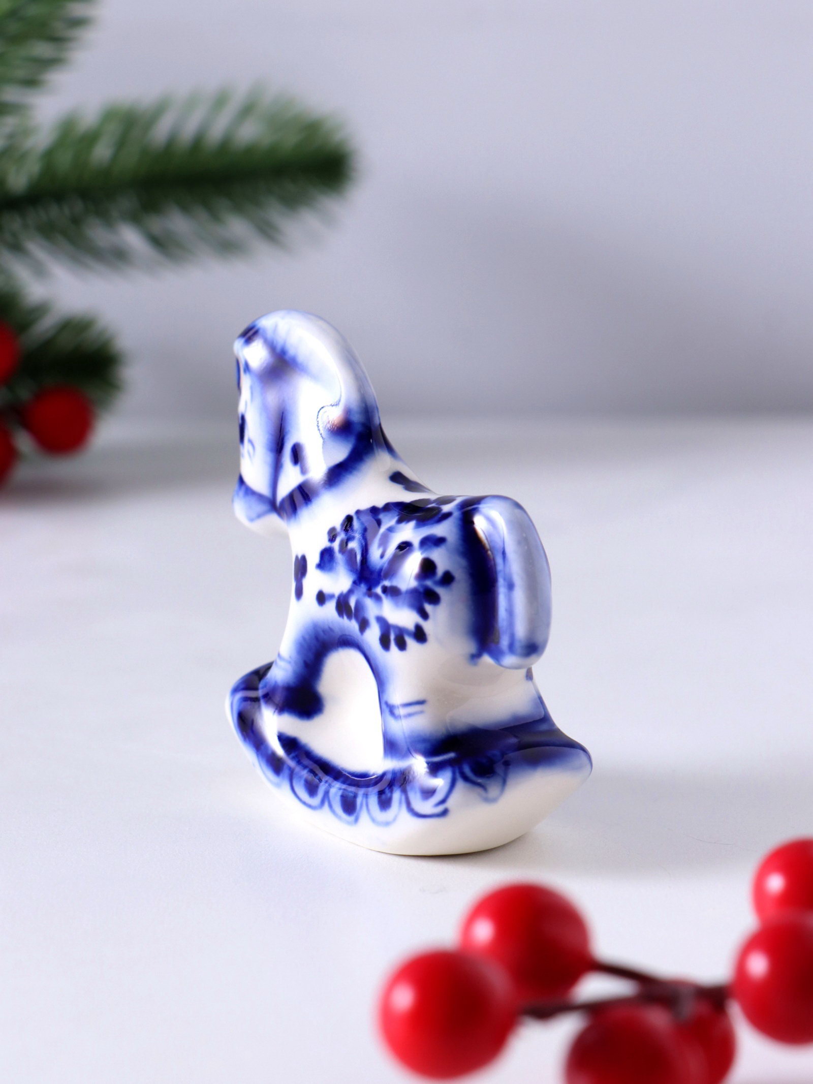 Фигурка фарфор гжель "Конь-качалка", 7x7x2.5 см, бело-синий, Россия