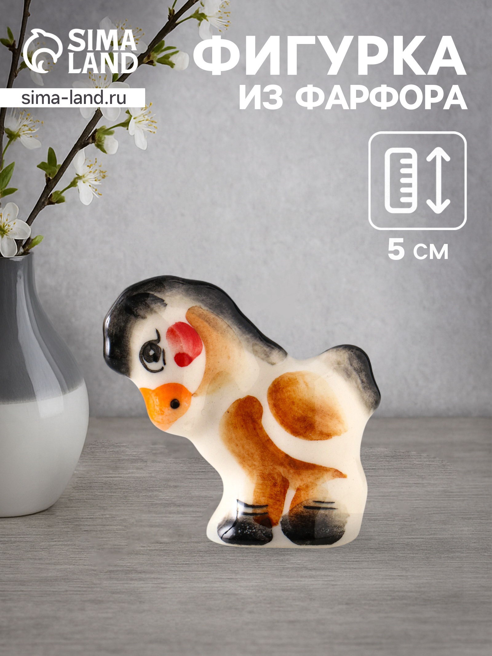 Фигурка фарфор "Жеребенок Пупс Саша", 5x5 см, гжель, цветной, Россия