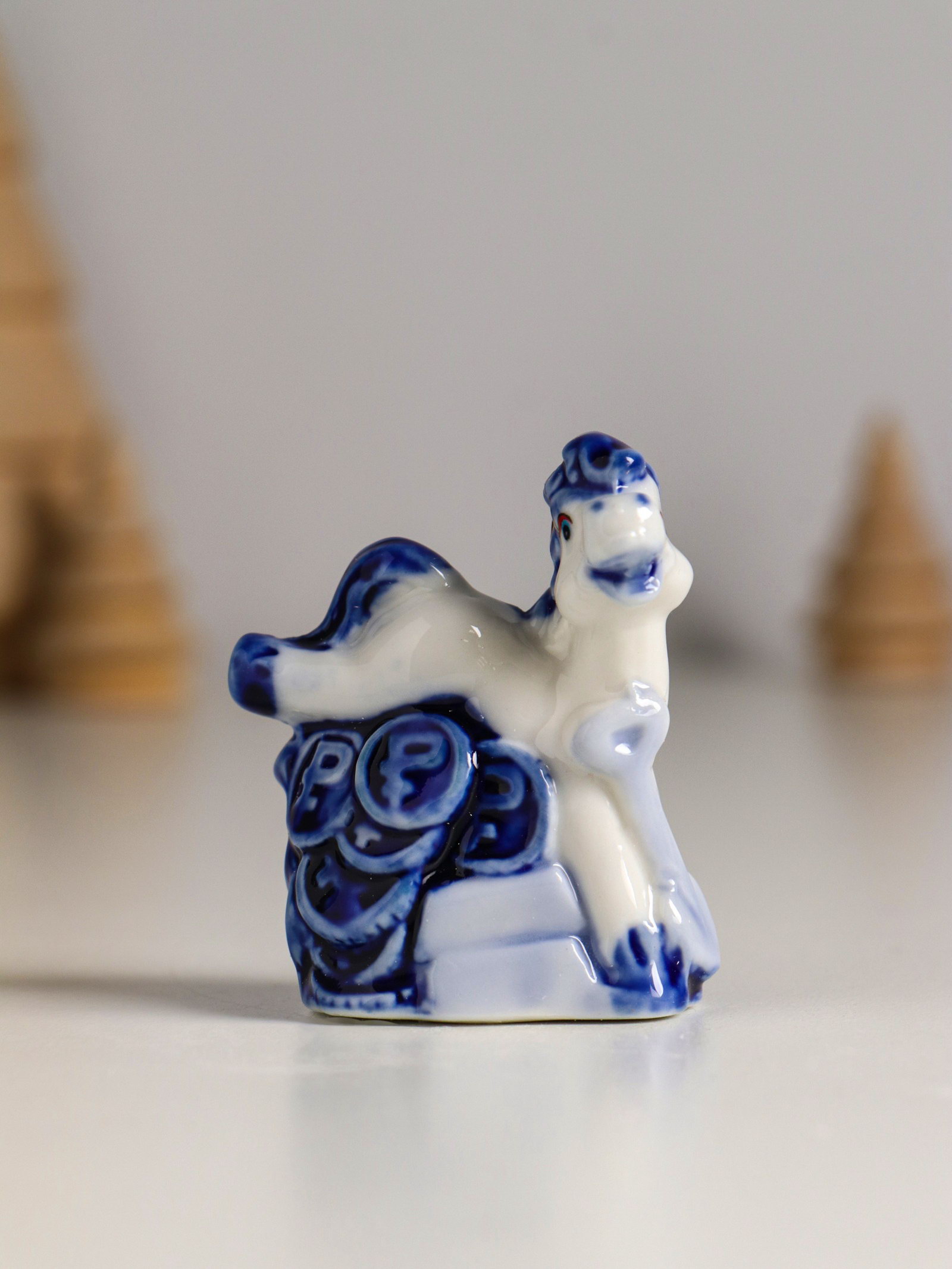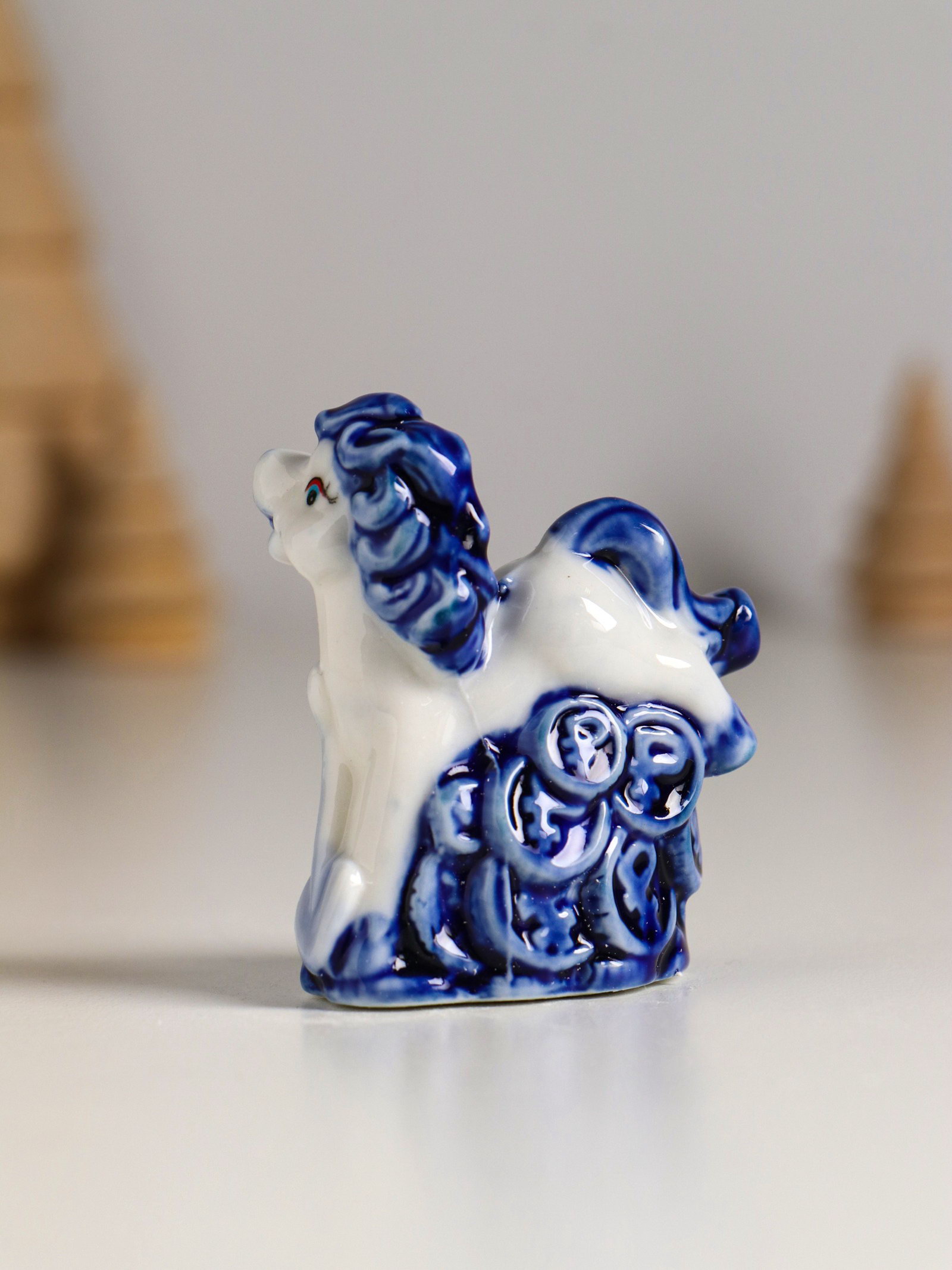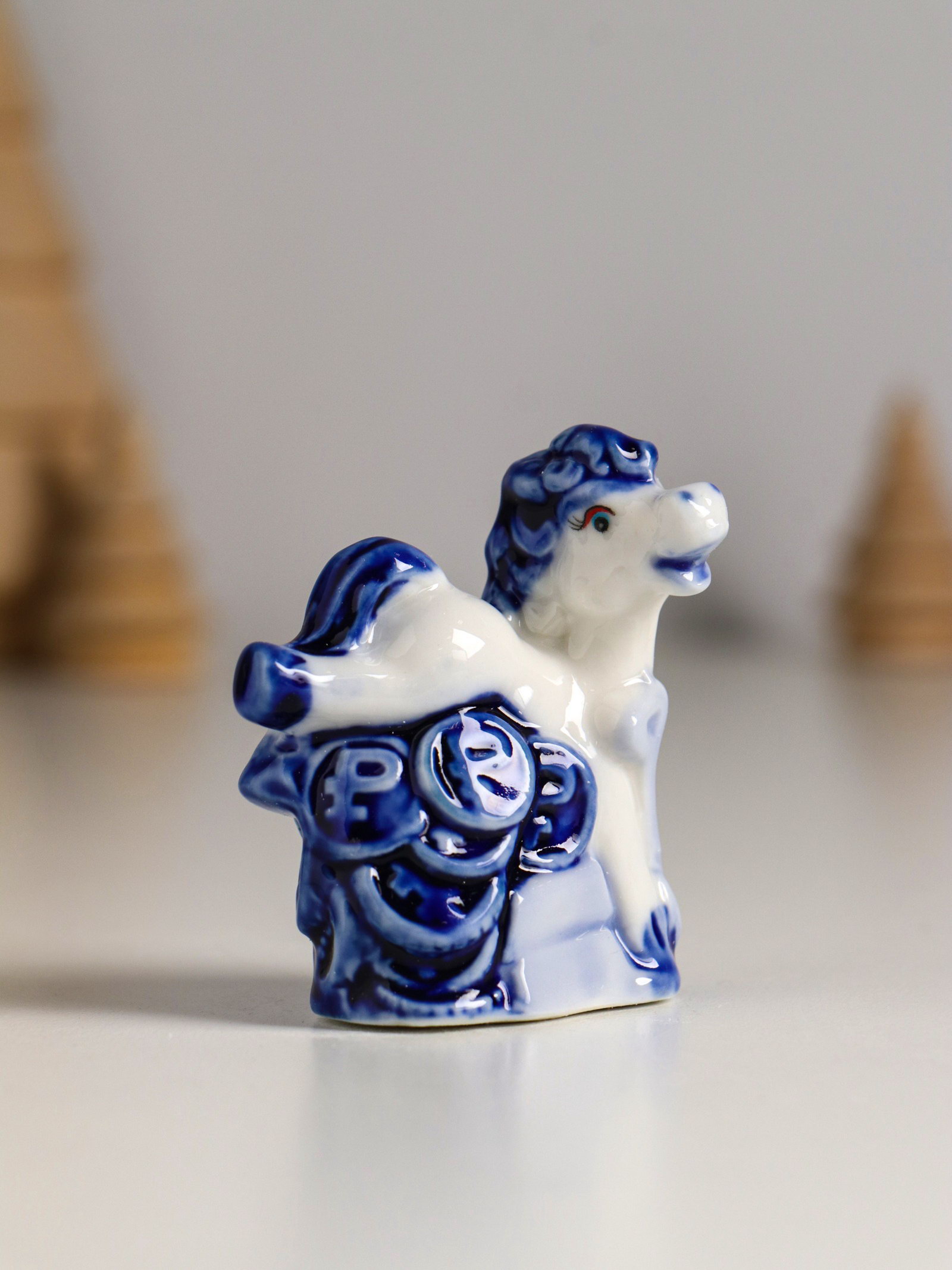 Фигурка керамика "Лошадка на монетках", бело-синий, 2.5x5x6 см, МИКС, 5x2.5x6 см., Китай