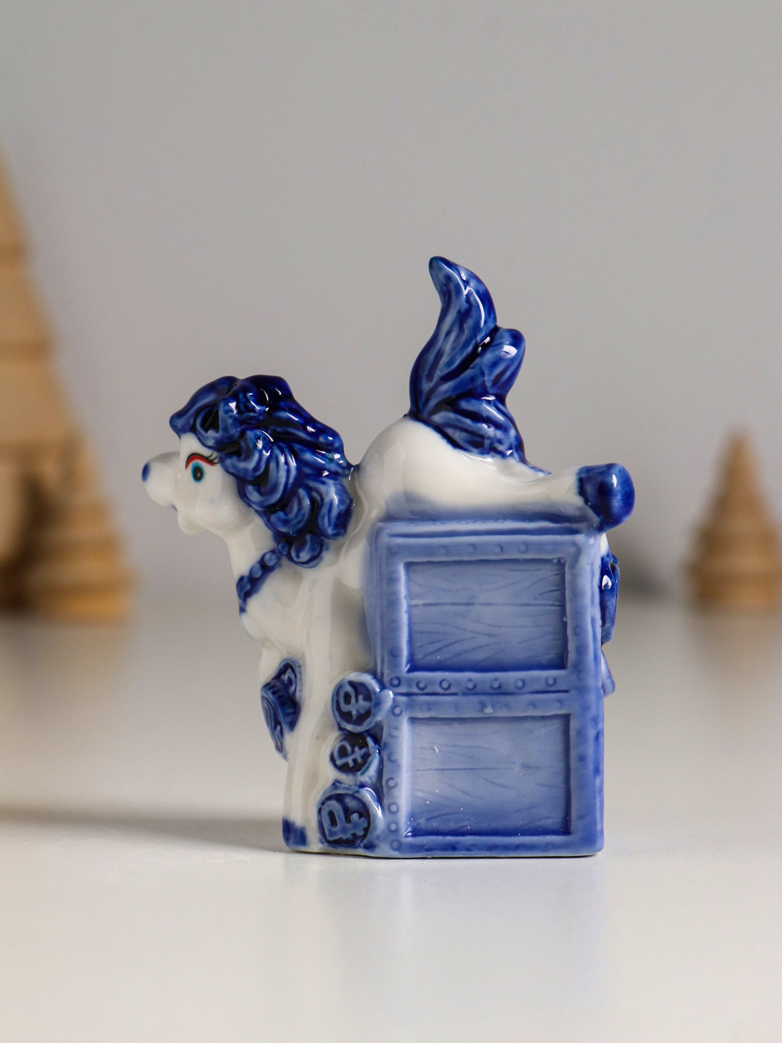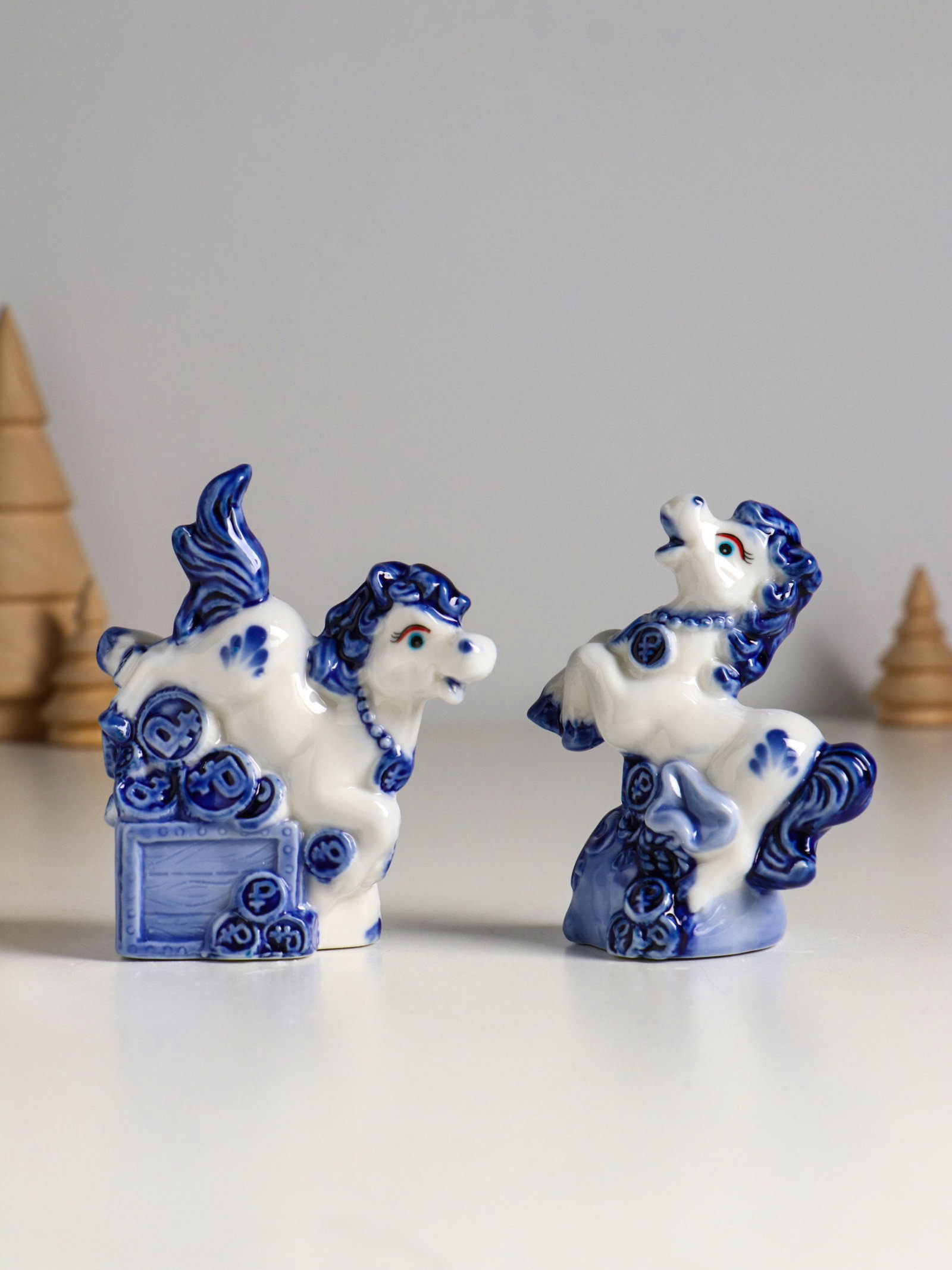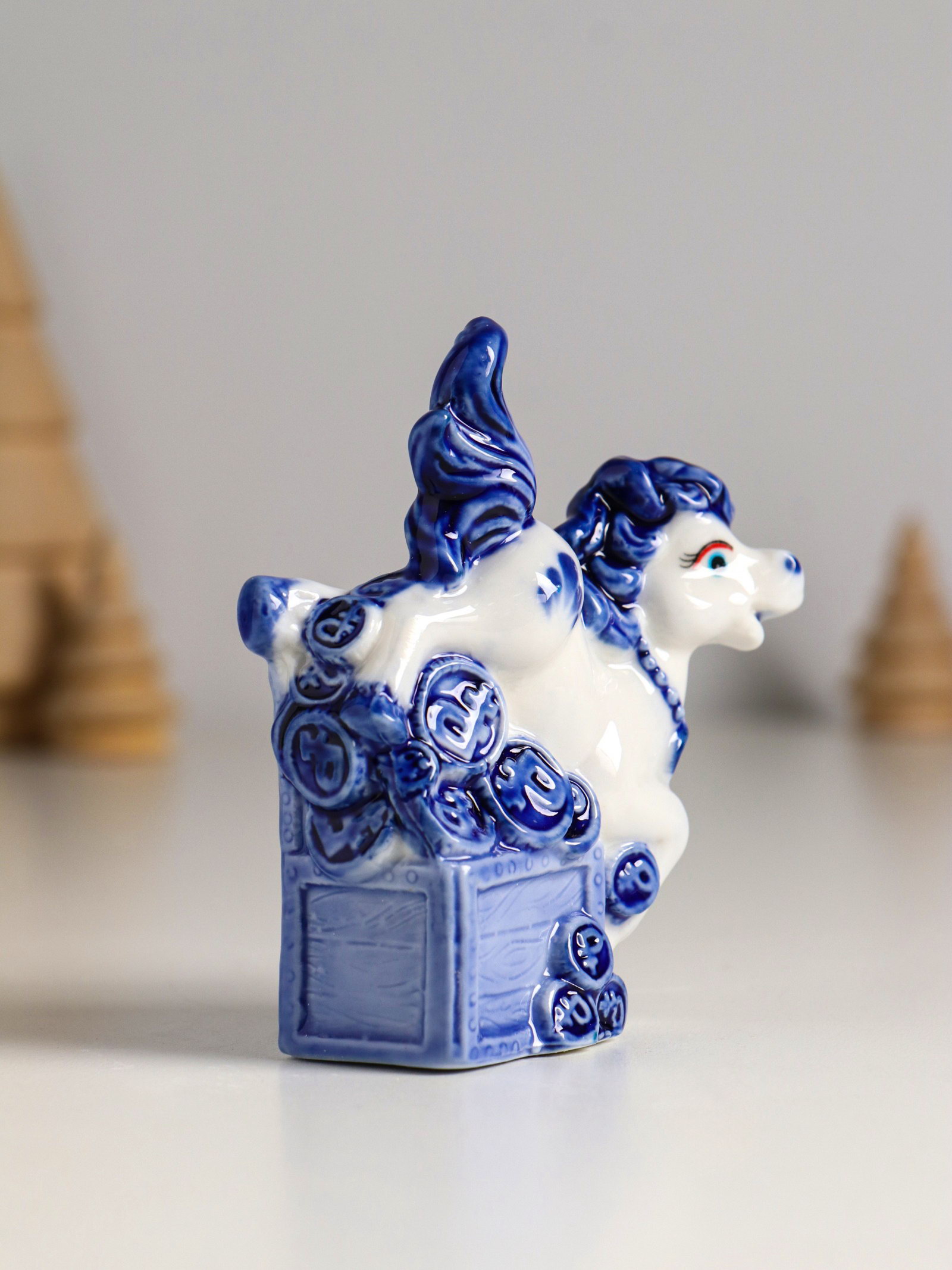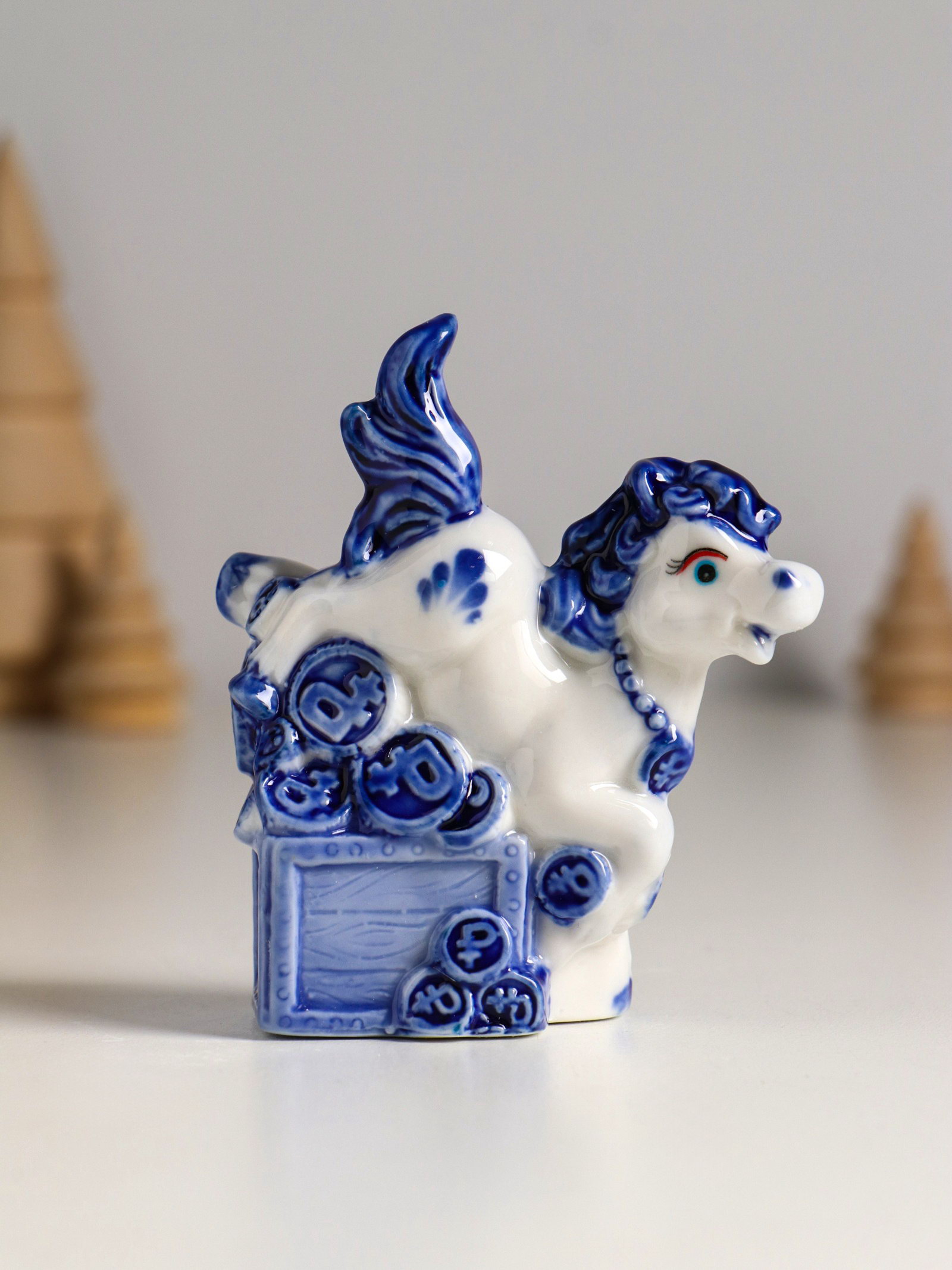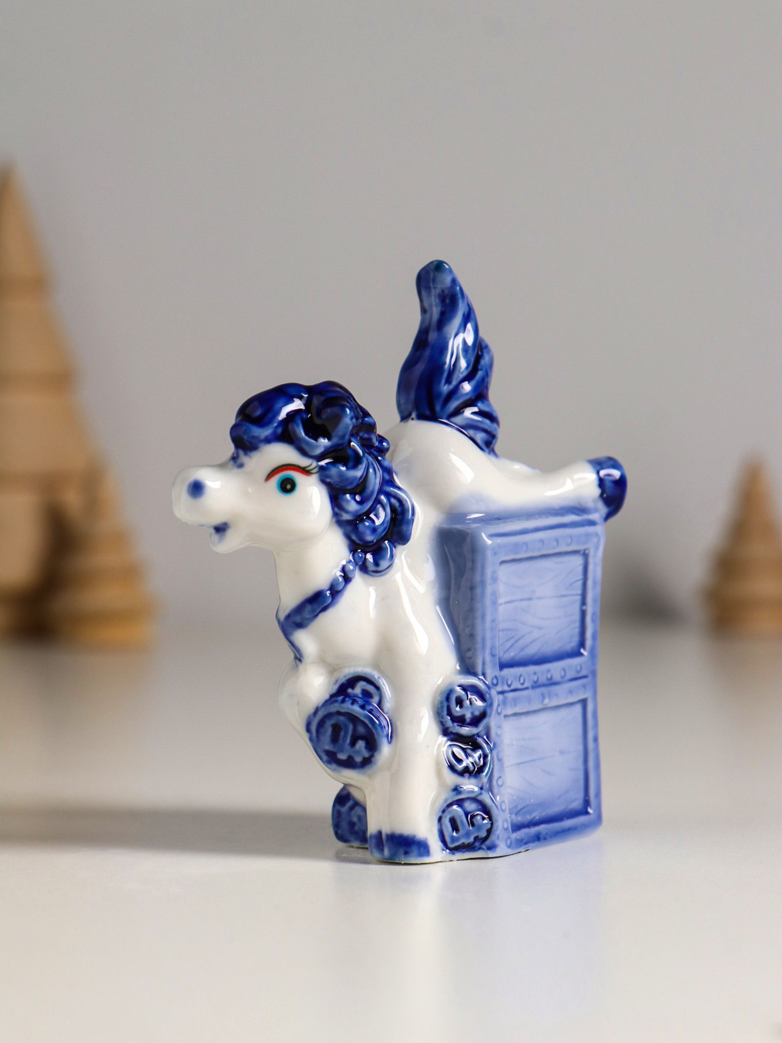 Фигурка керамика "Лошадка денежная", бело-синий, 7.1x3.1x9 см, МИКС, 3.1x7.1x9 см., Китай