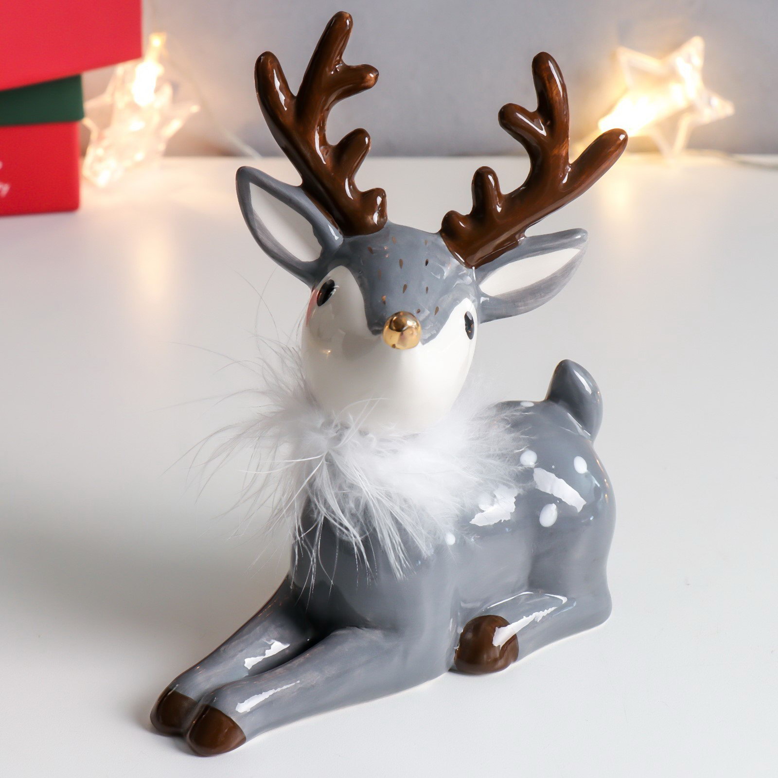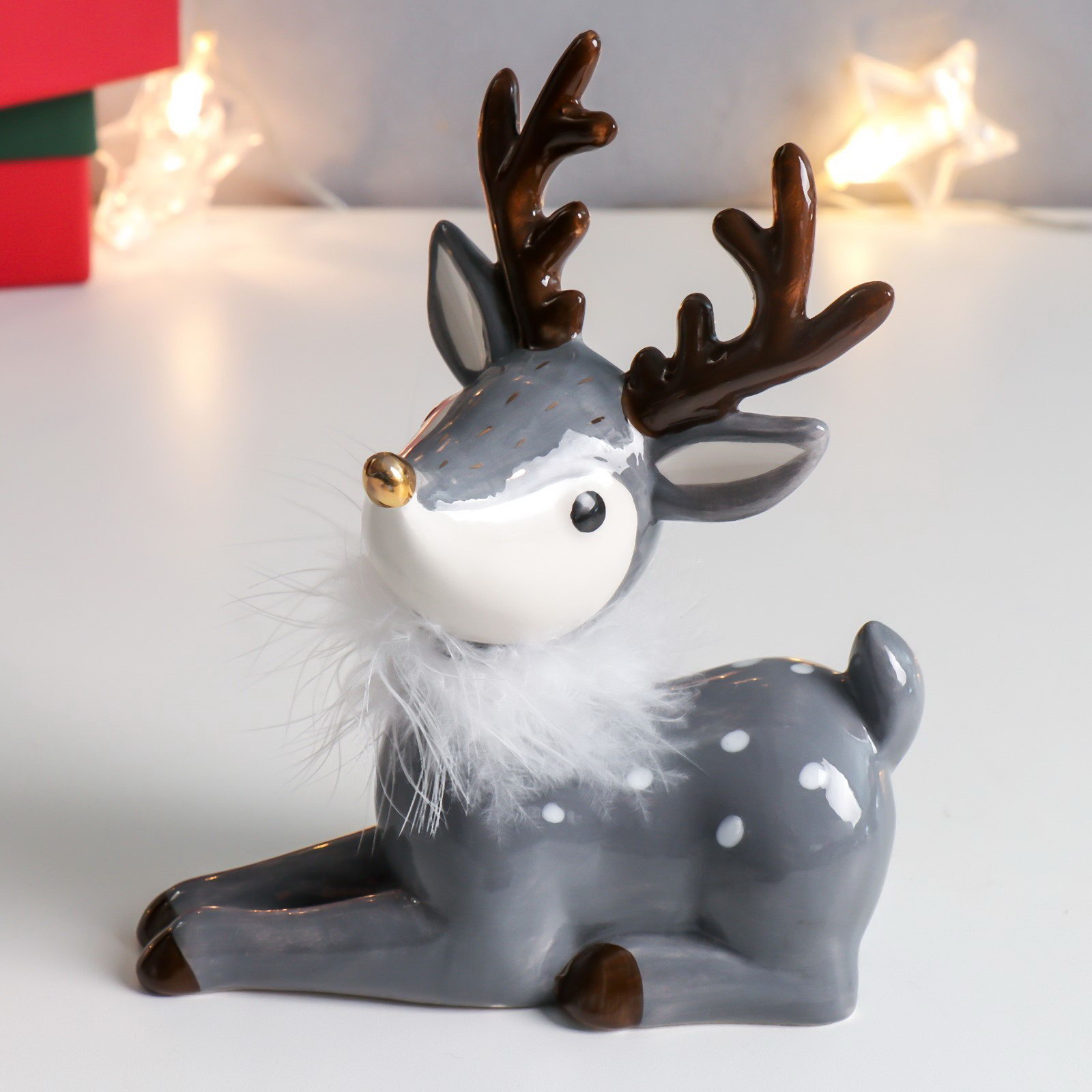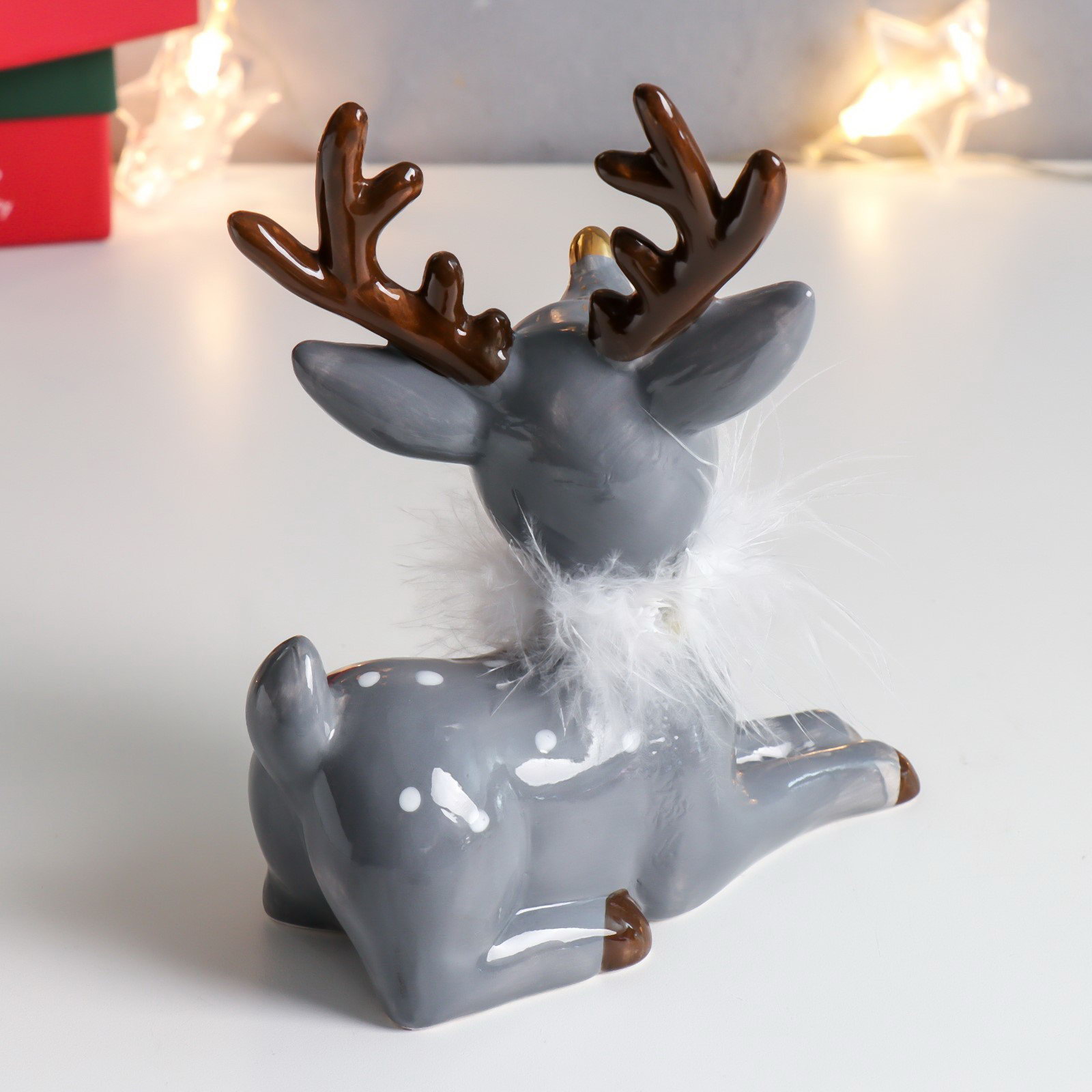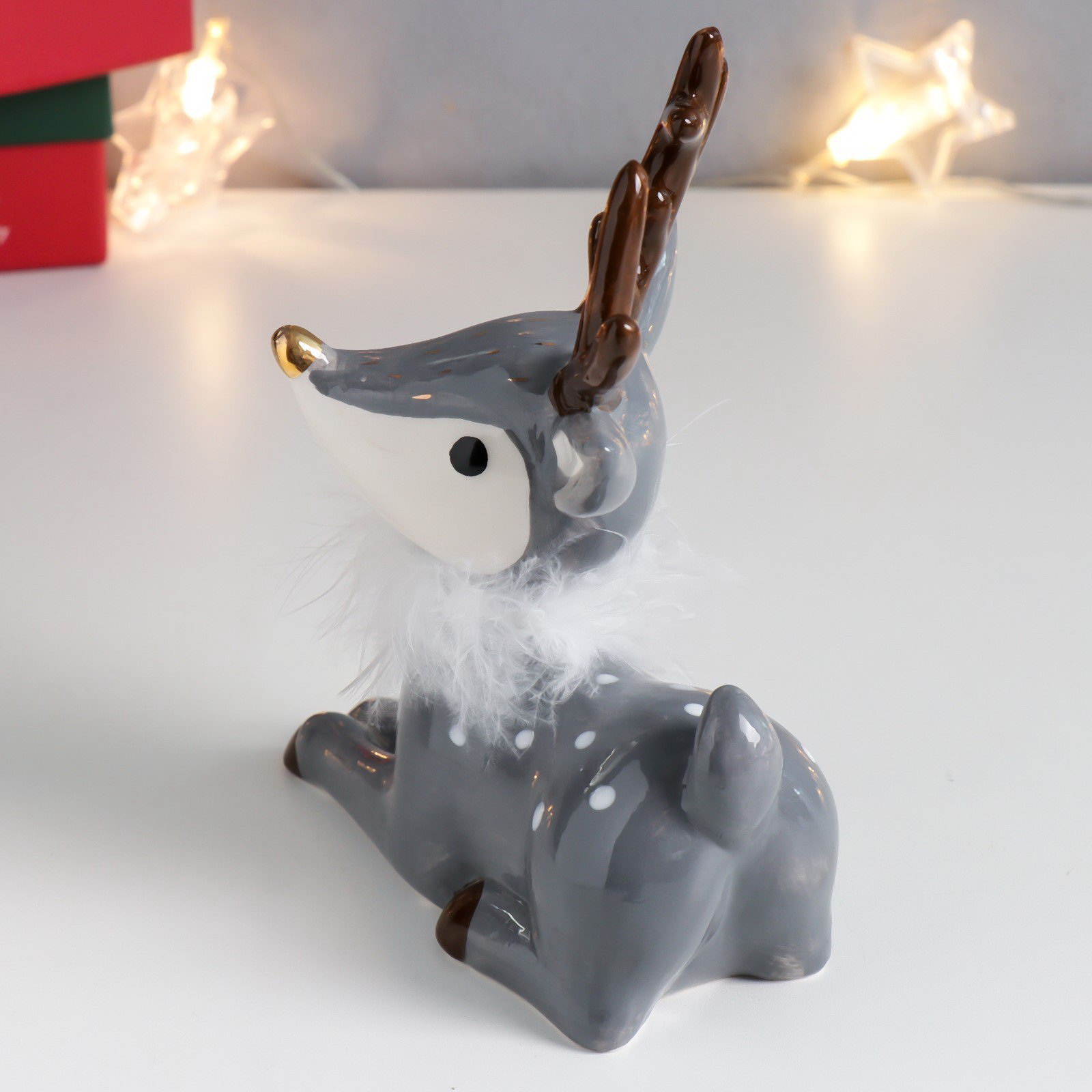 Сувенир керамика "Оленёнок с пуховым ожерельем" серый 17.2х8.3х14.8 см, 14.8x8.3x17.2 см., Китай