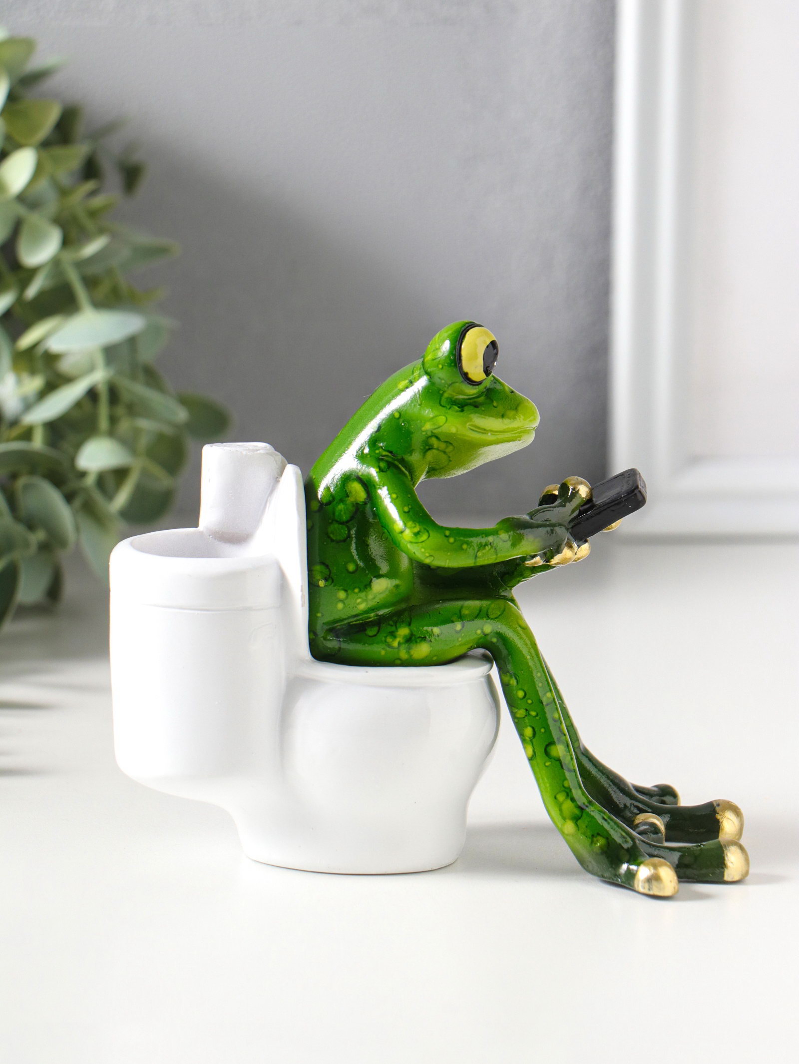 Фигурка полистоун лак "Лягушонок на унитазе с телефоном", 12.5x8x11 см, 8x11x12.5 см., Китай