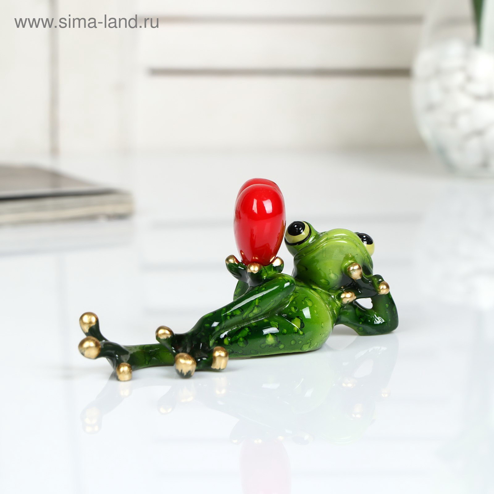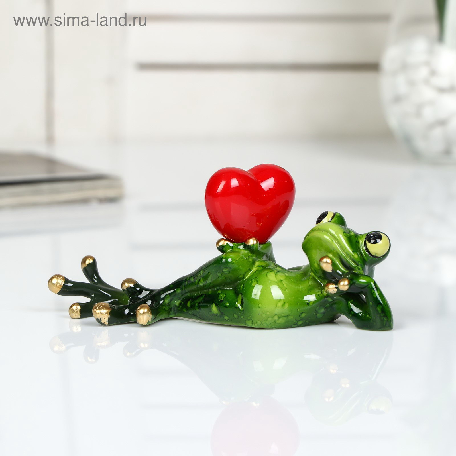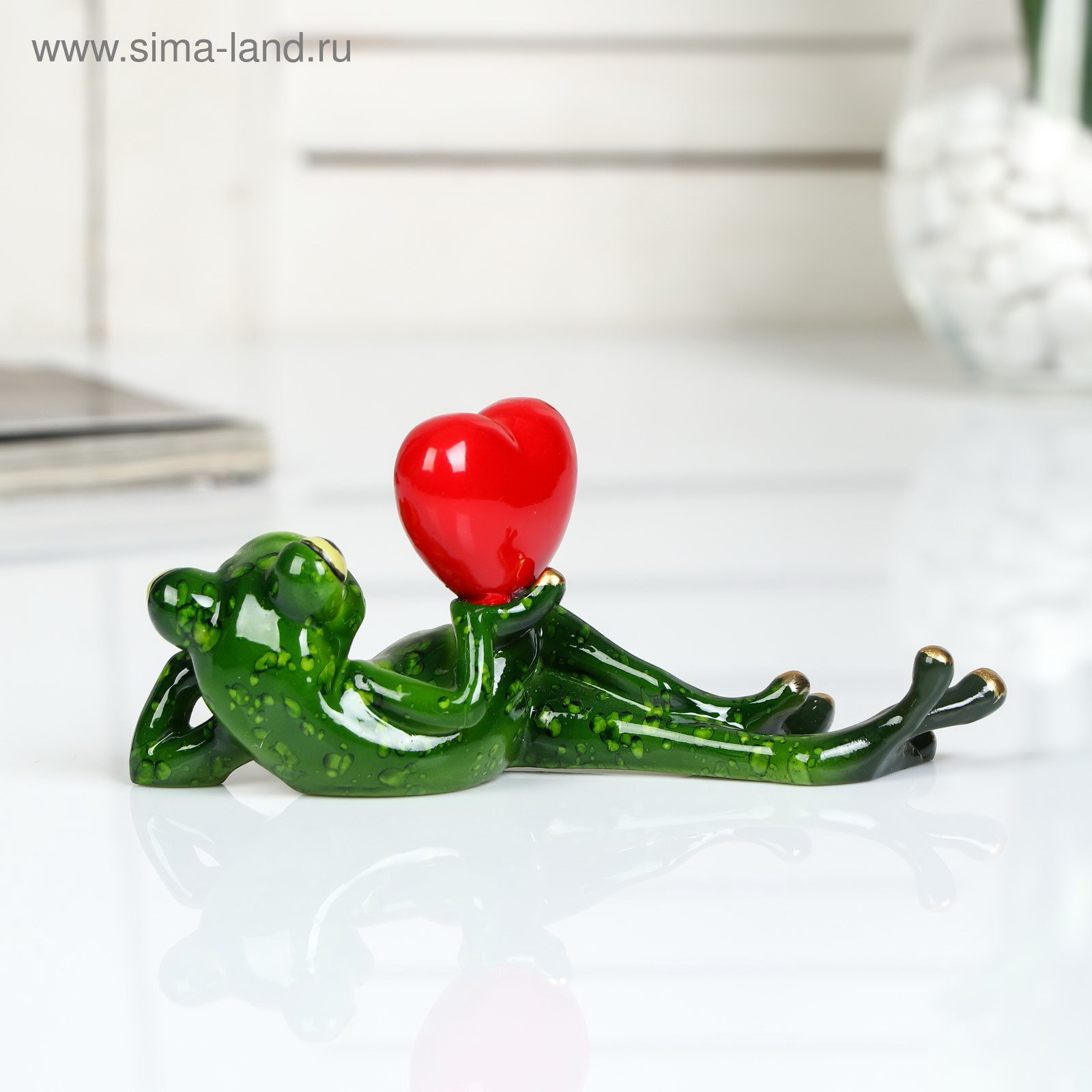 Фигурка полистоун лак "Лягушонок лежит с сердцем в руке", 6x5x15 см, 20x11x9 см., Китай