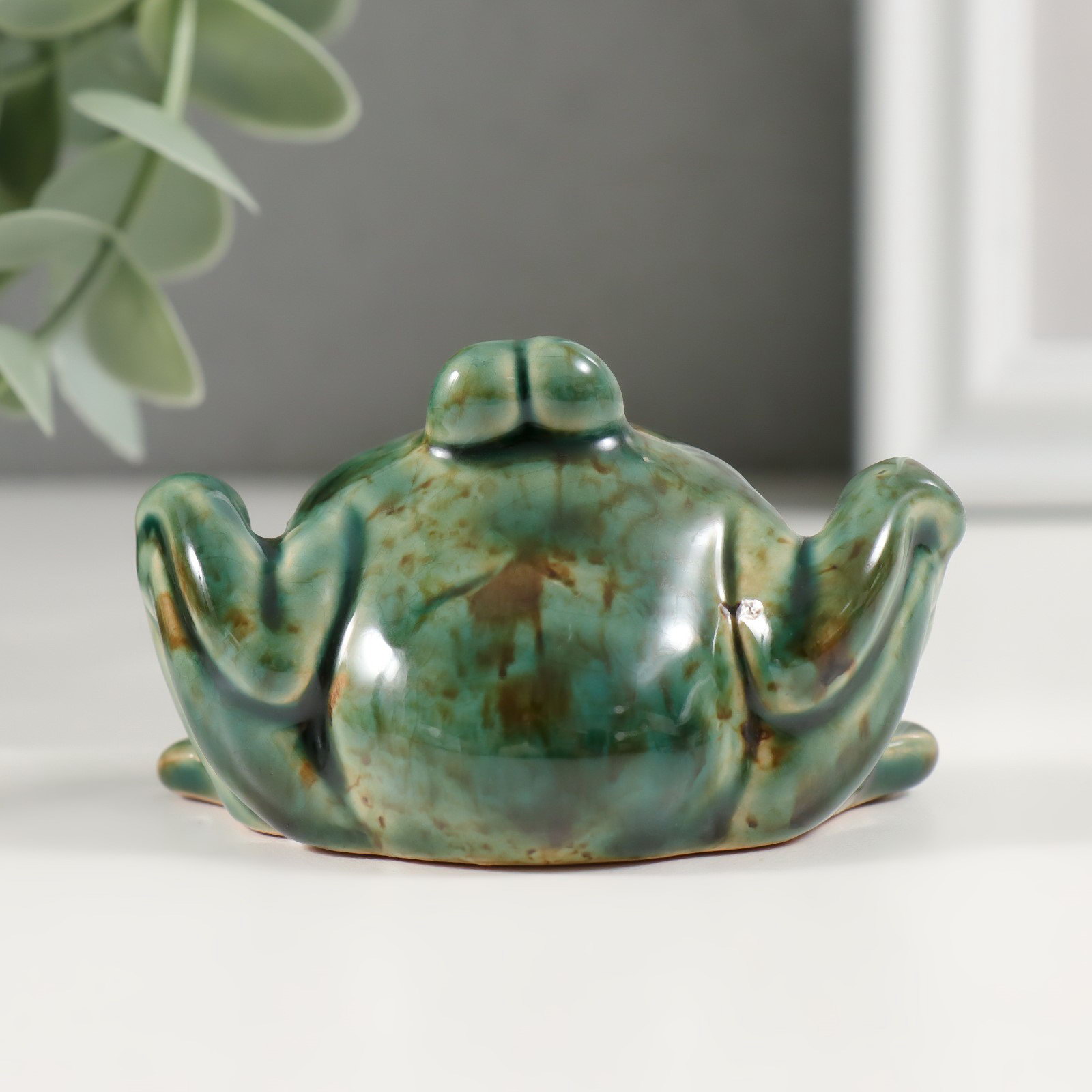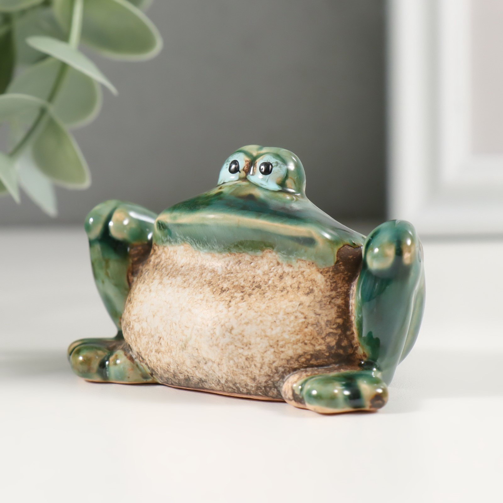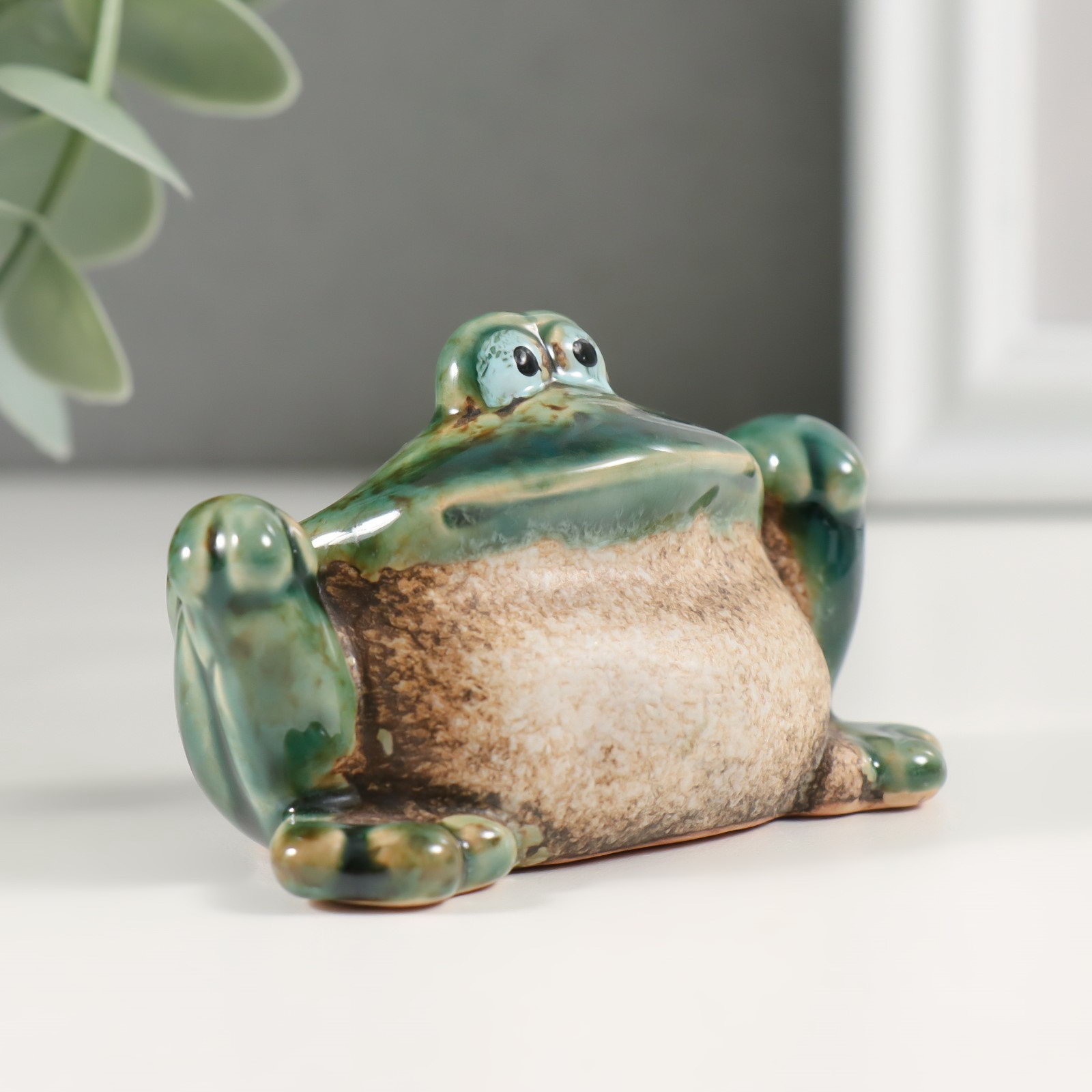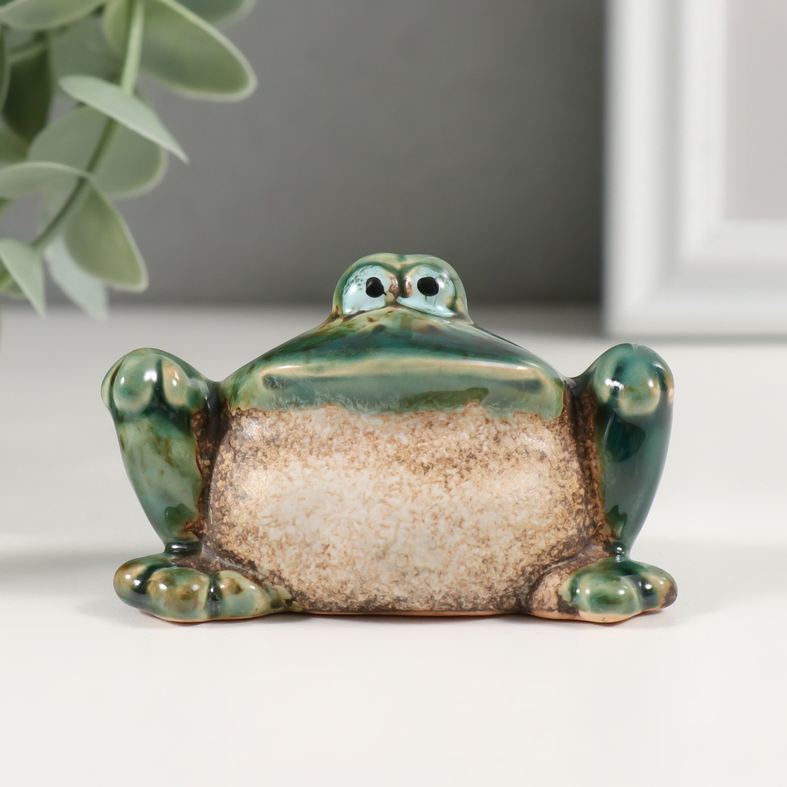 Сувенир керамика "Зелёная лягушка с лапками на коленях" 4.7х7.2х4.5 см, Китай