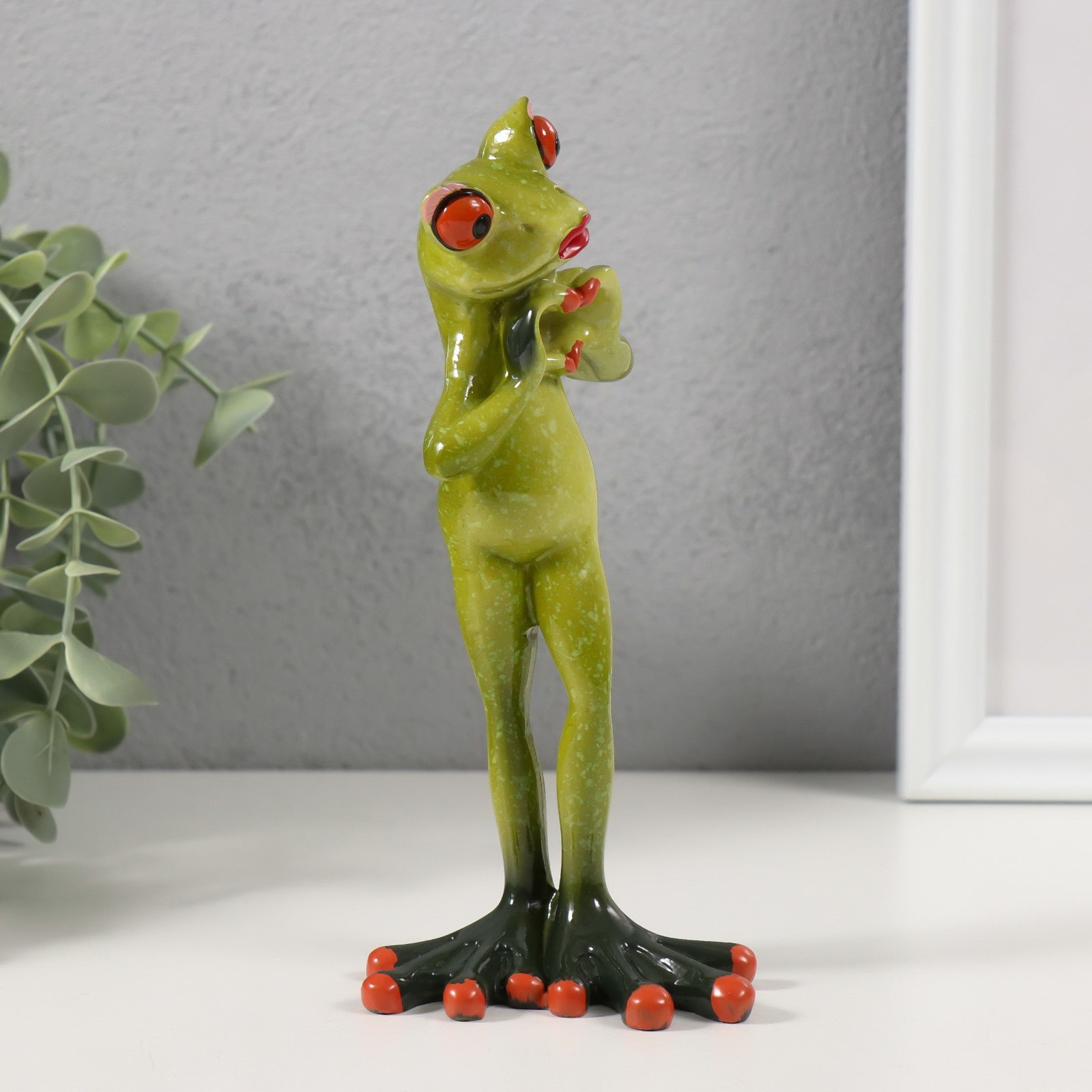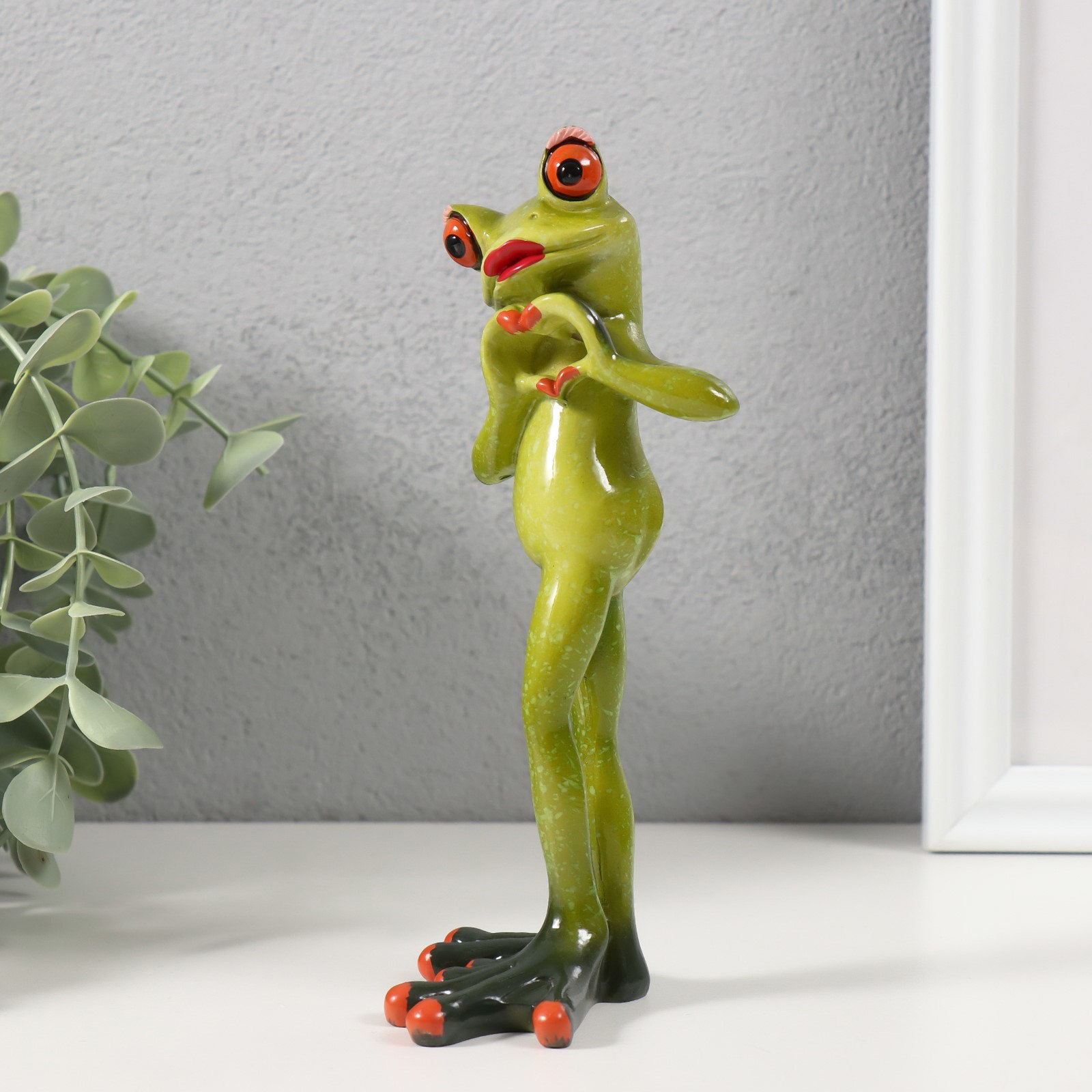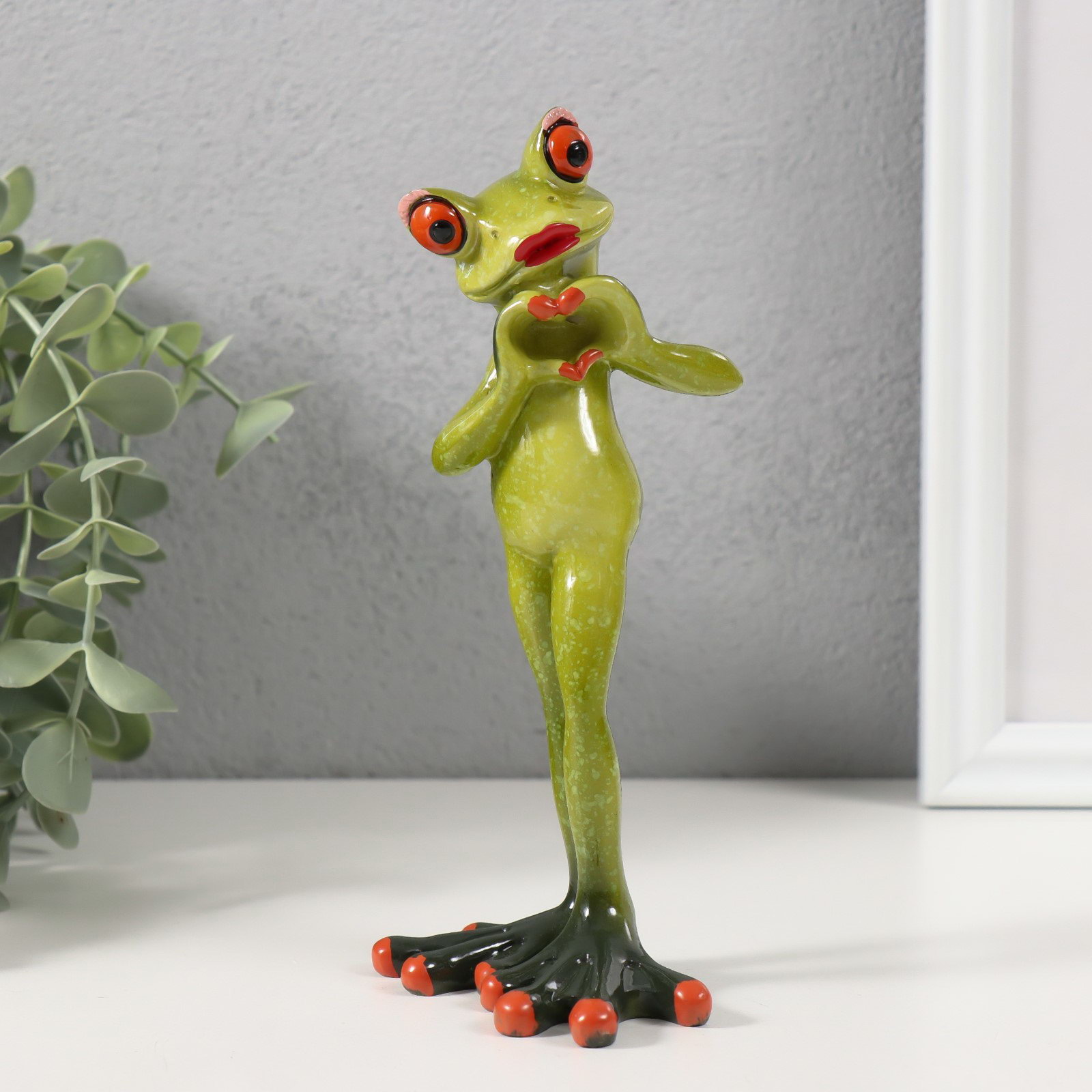 Фигурка полистоун лак "Лягуха показывает сердечко лапками", 7.5x5.8x16 см, 7.5x5.8x16 см., Китай