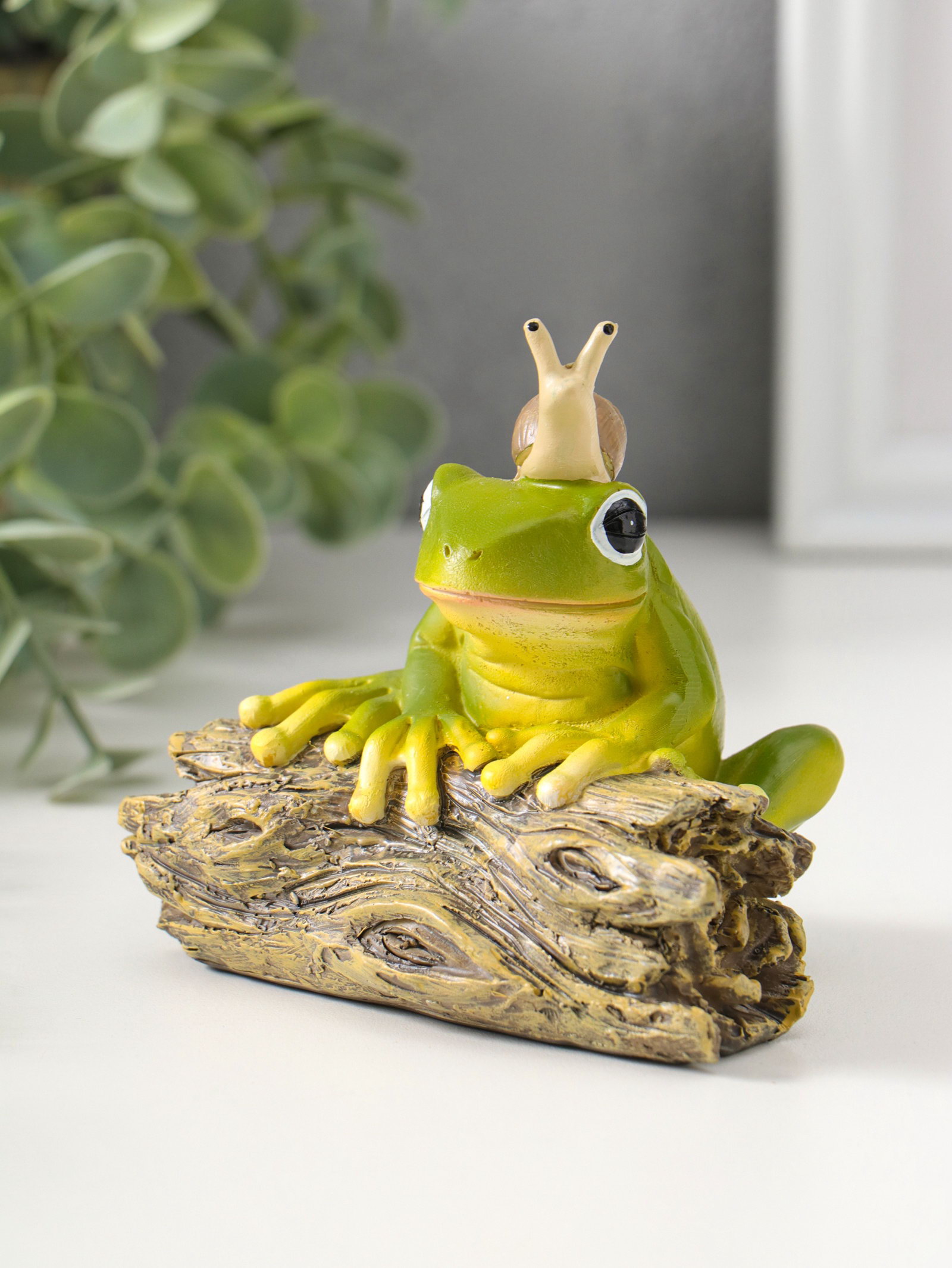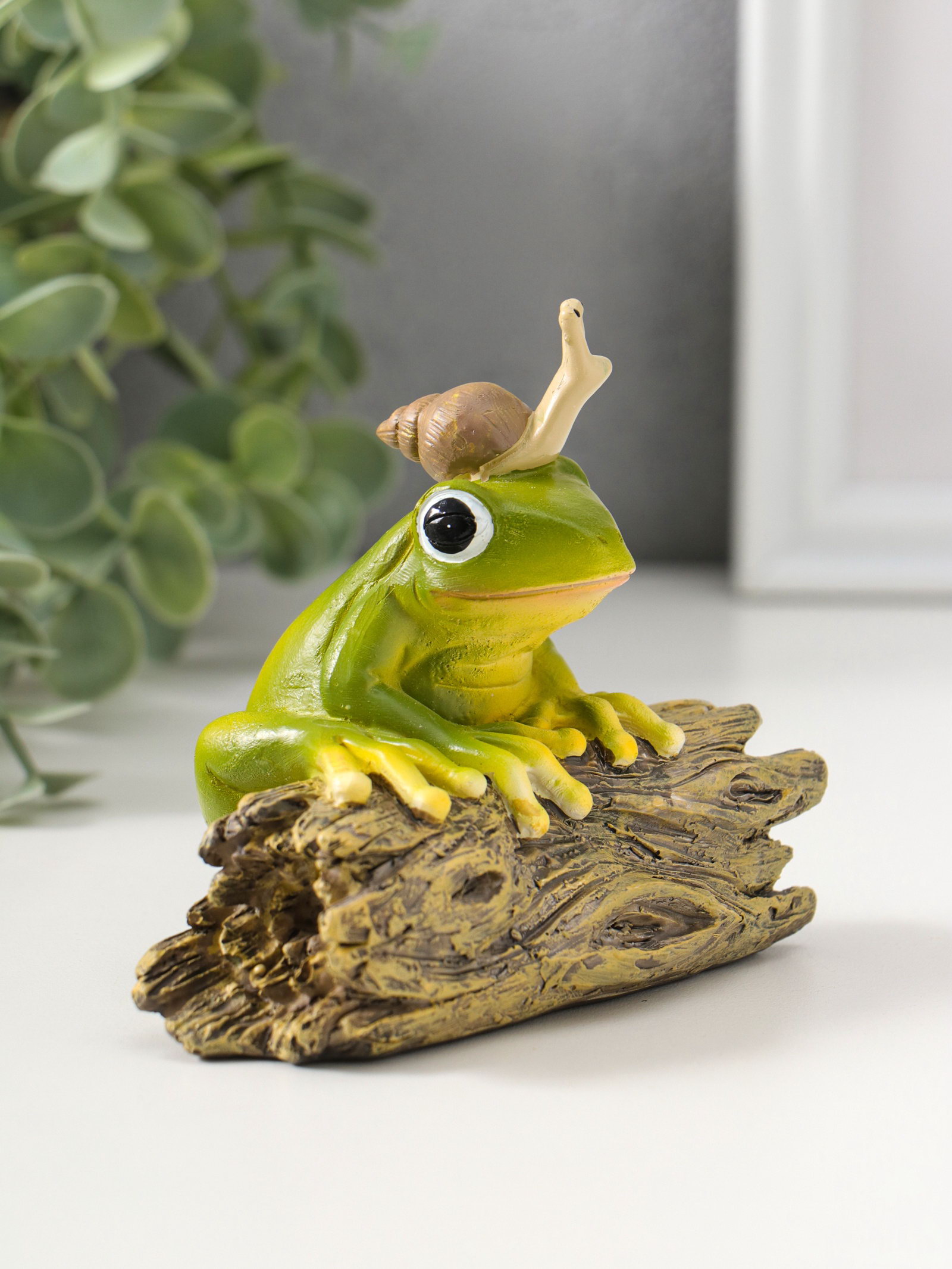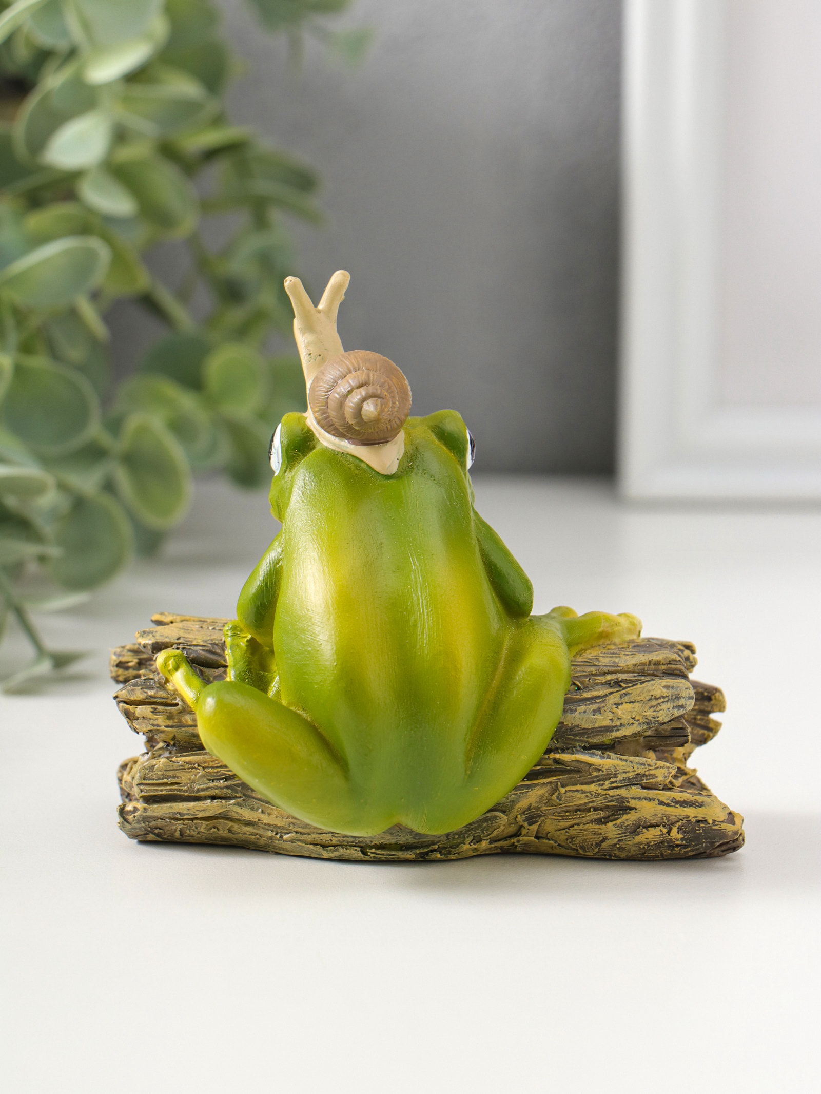 Фигурка полистоун "Лягушонок на коряге с улиткой на голове", 9.5 см, 7x11x9.5 см., Китай