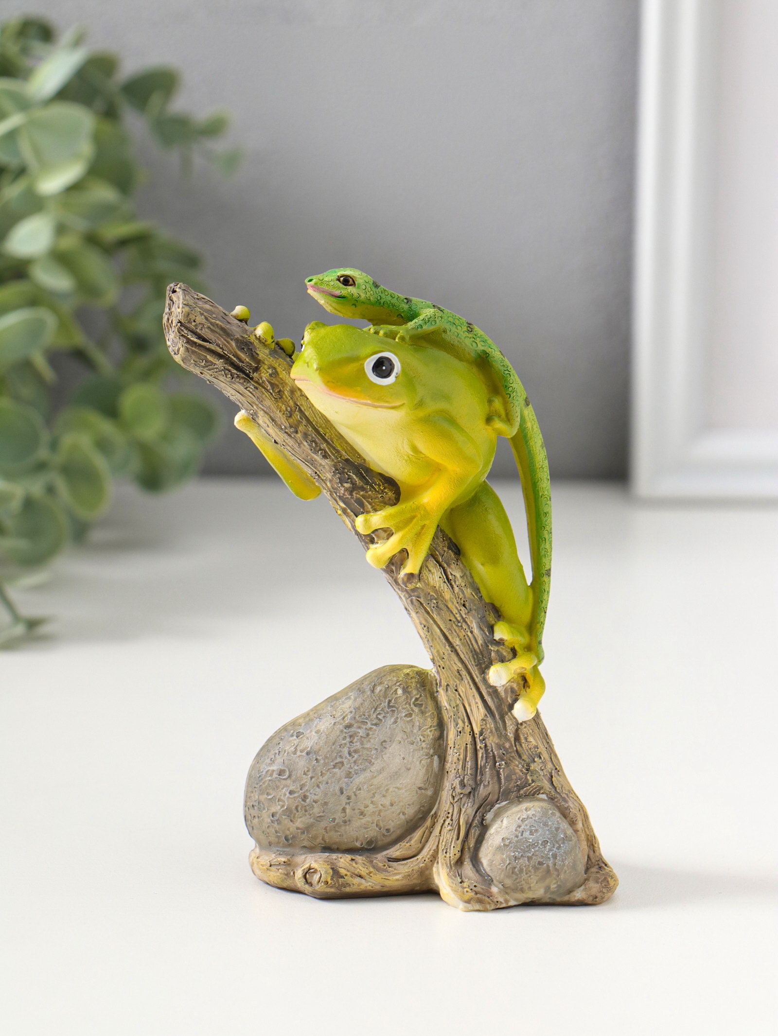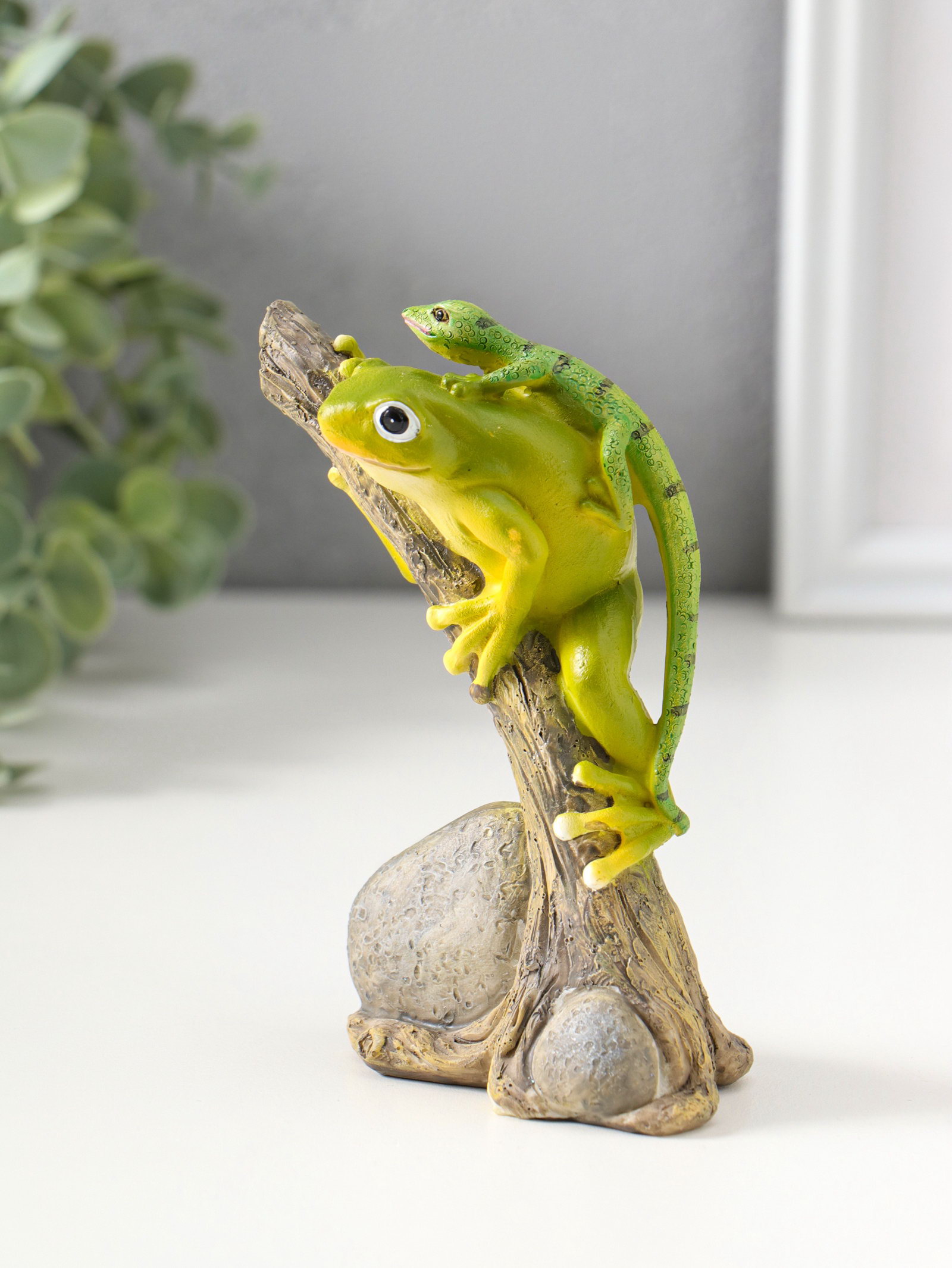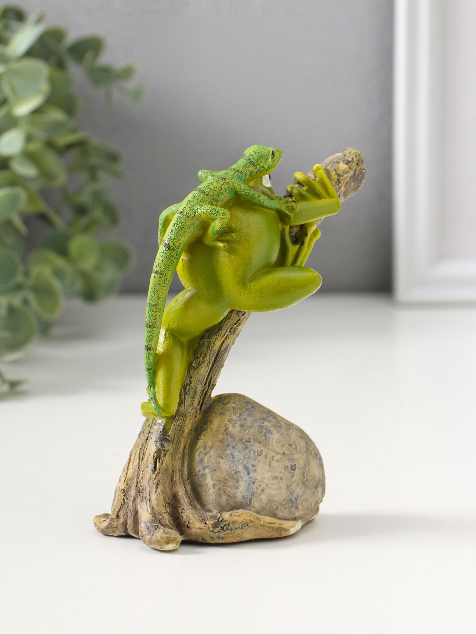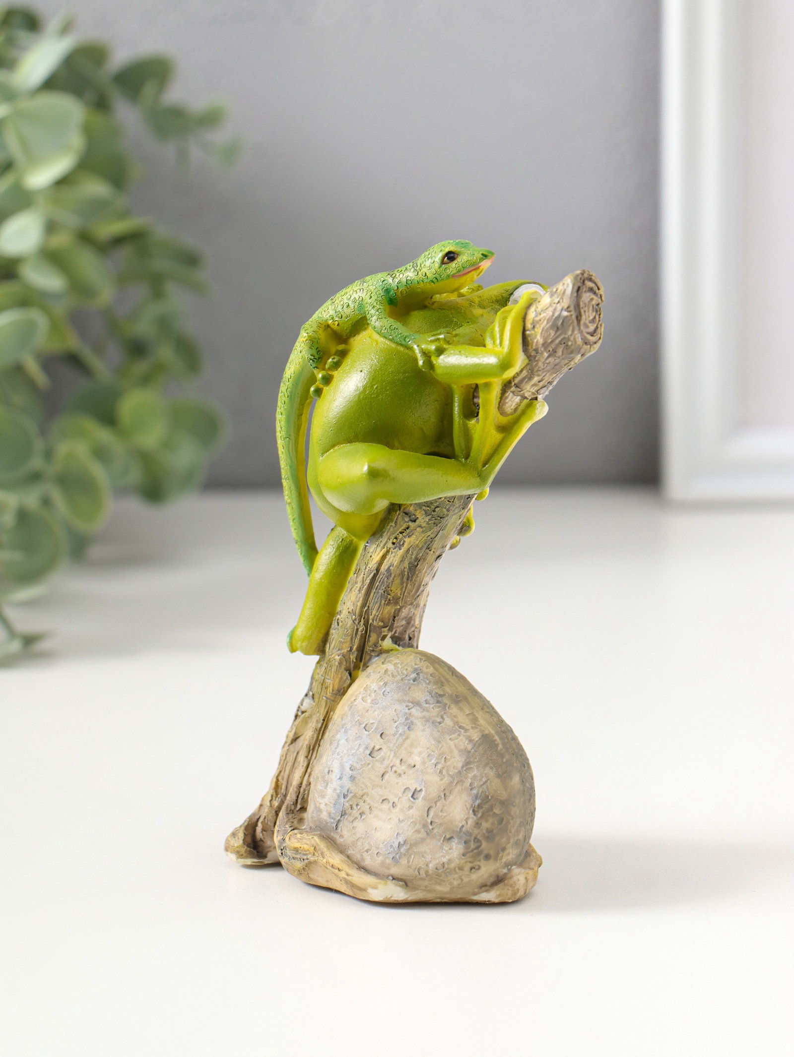 Фигурка полистоун "Лягушонок на дереве с ящерицей на спине", 12.5 см, 5.5x10x12.5 см., Китай