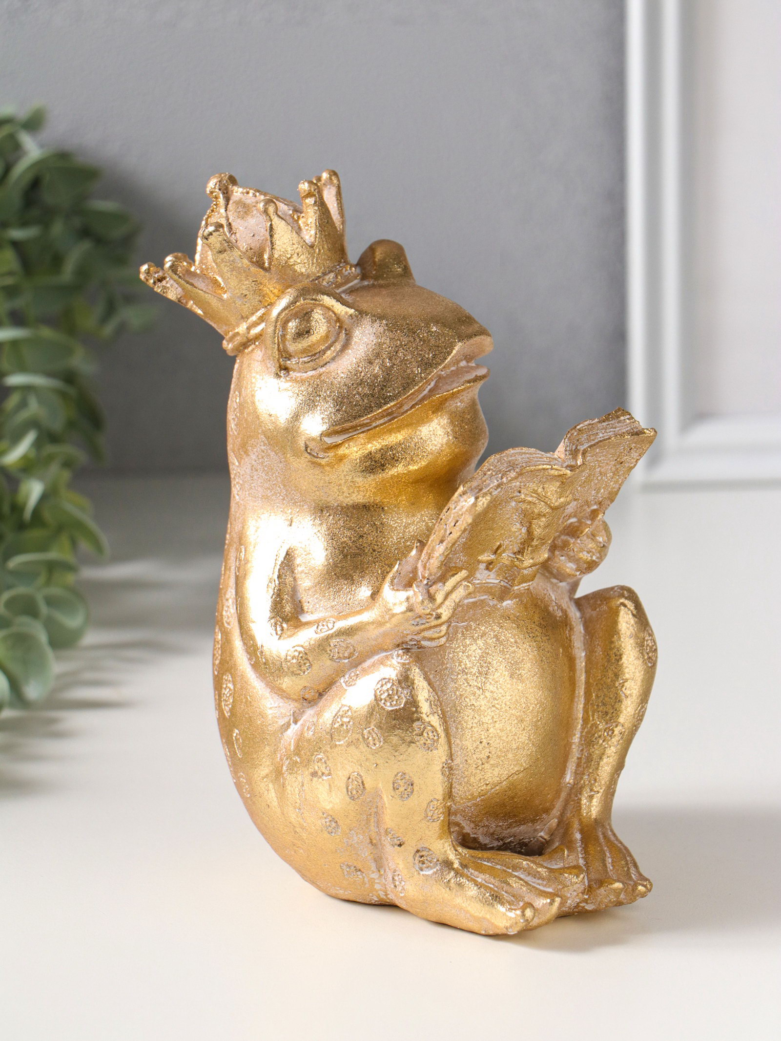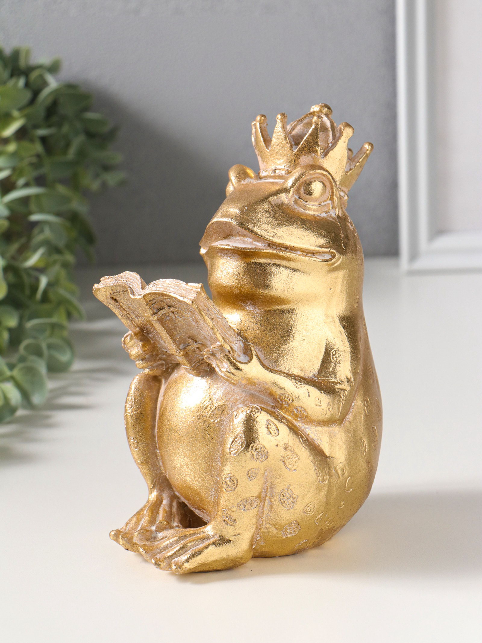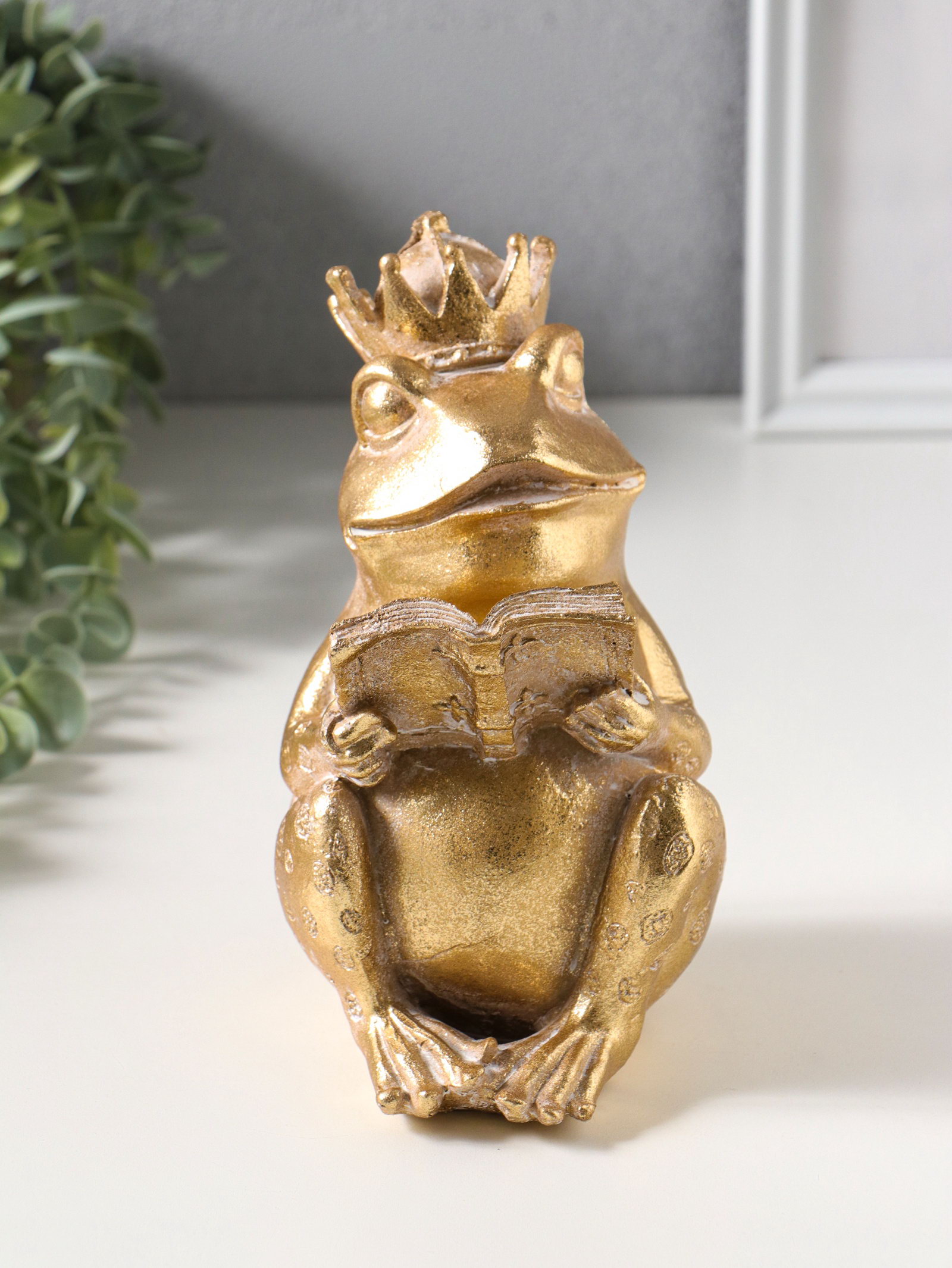 Фигурка полистоун "Лягушка в короне, читает книгу", под золото, 12x9.3x17 см, 9.3x12x17 см., Китай