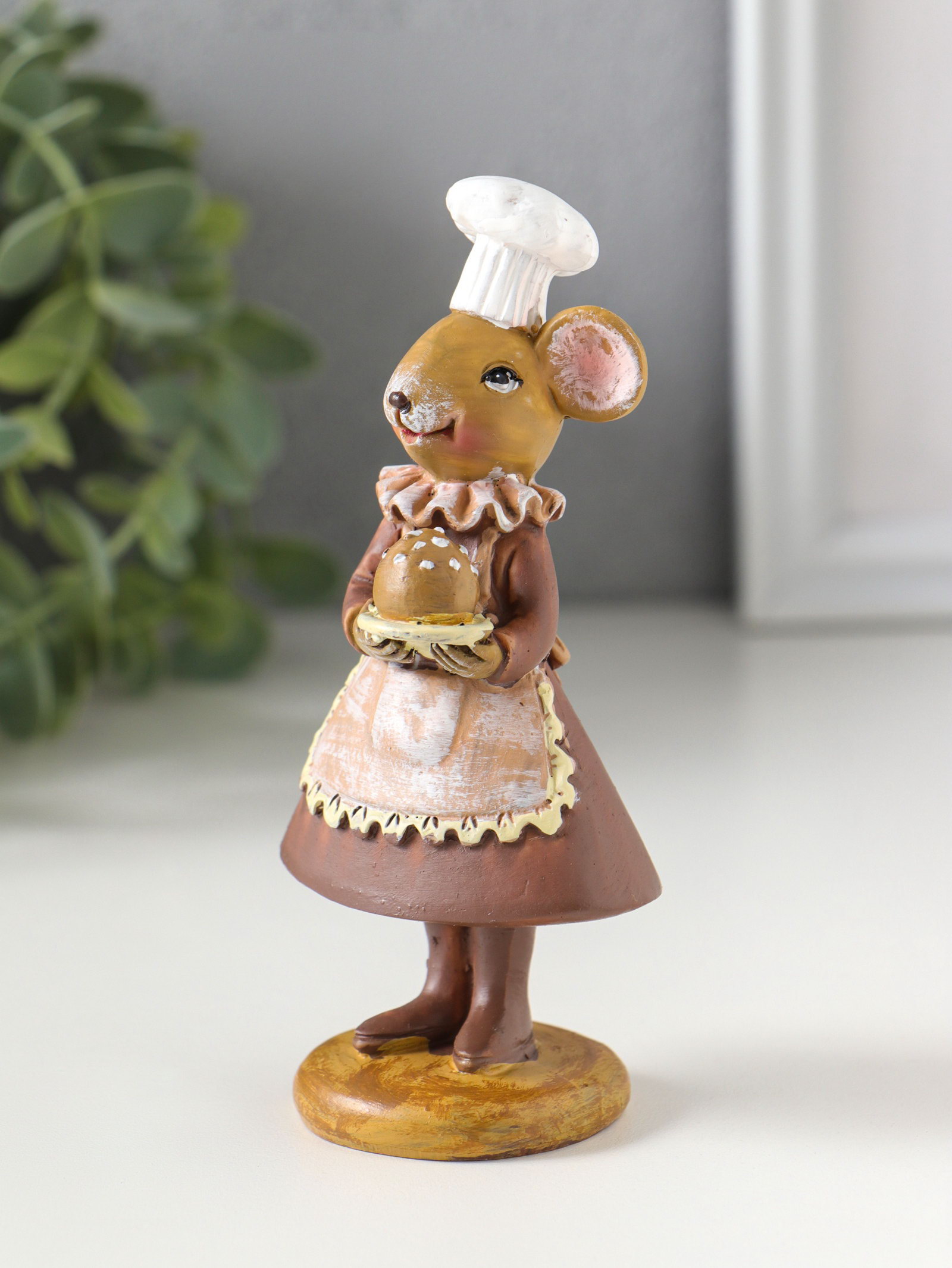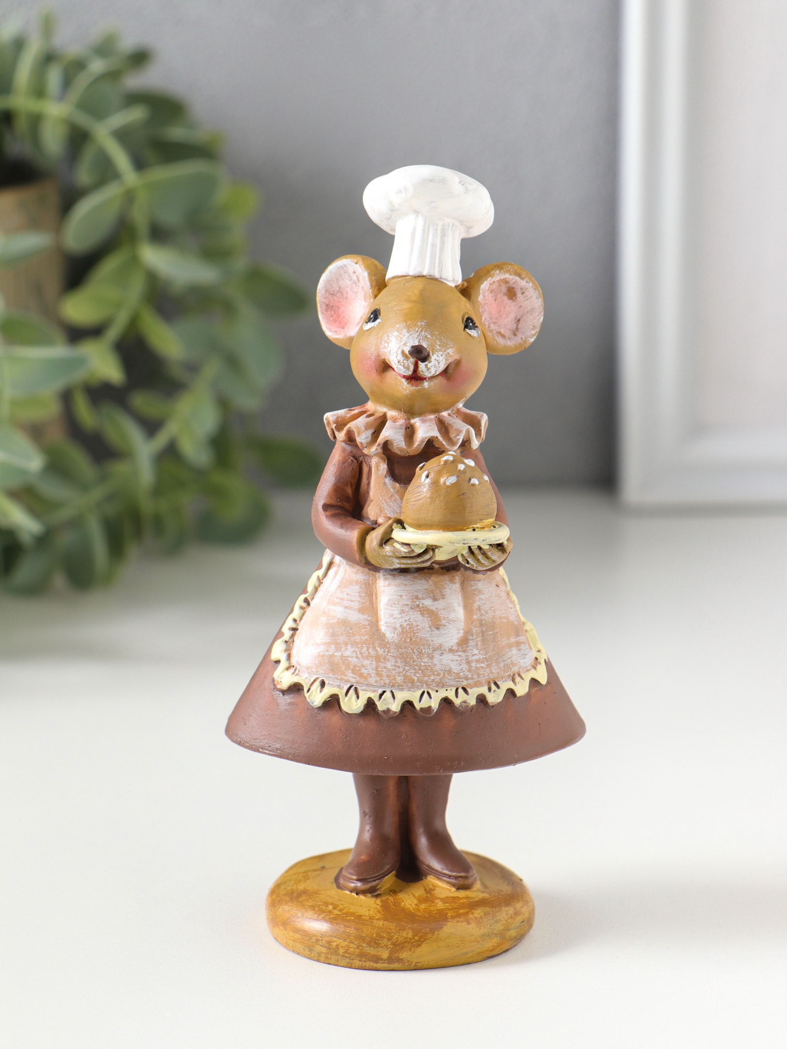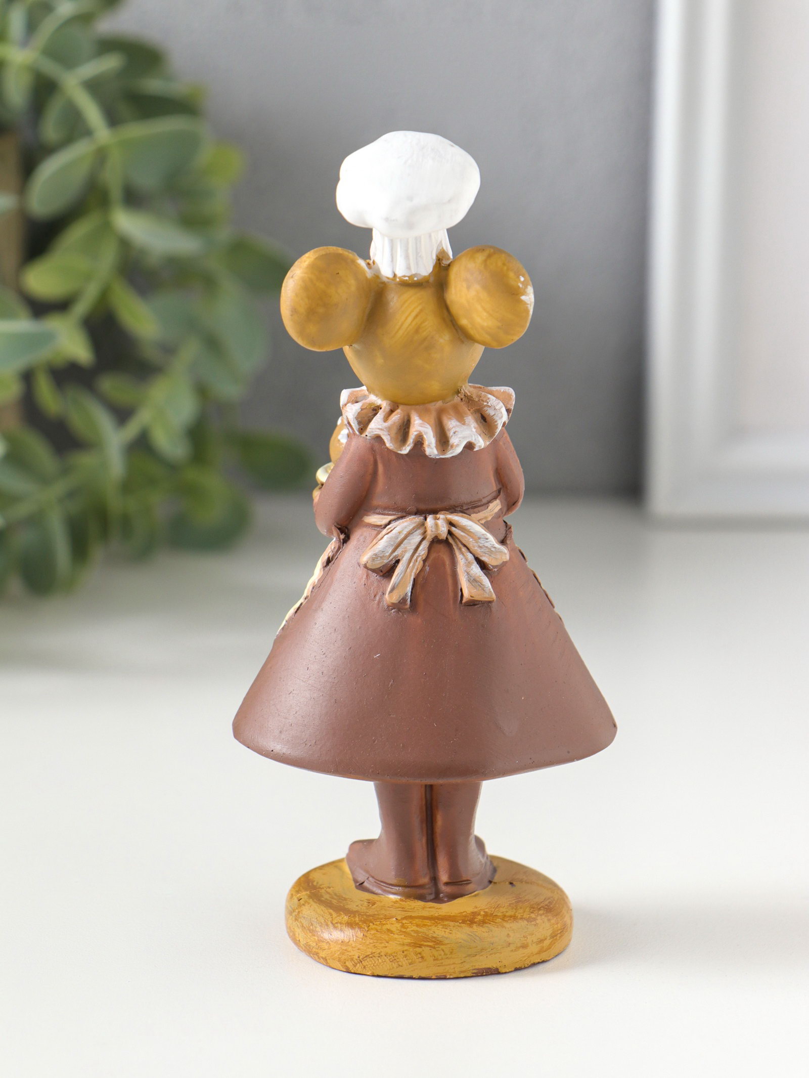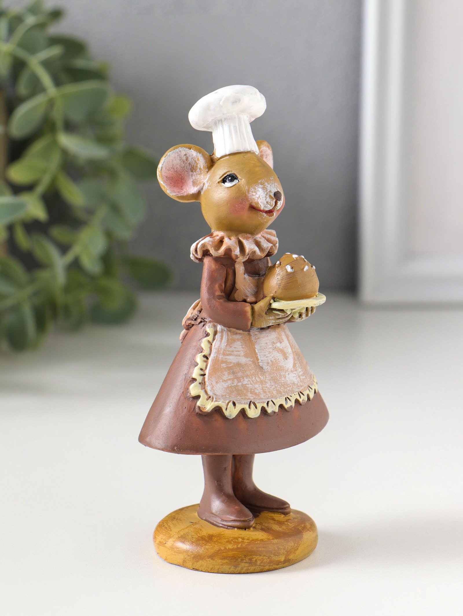 Сувенир полистоун "Мышка-пекарь в тёмном платье, с хлебом" 6х4.5х13 см, 4.5x6x13 см., Китай