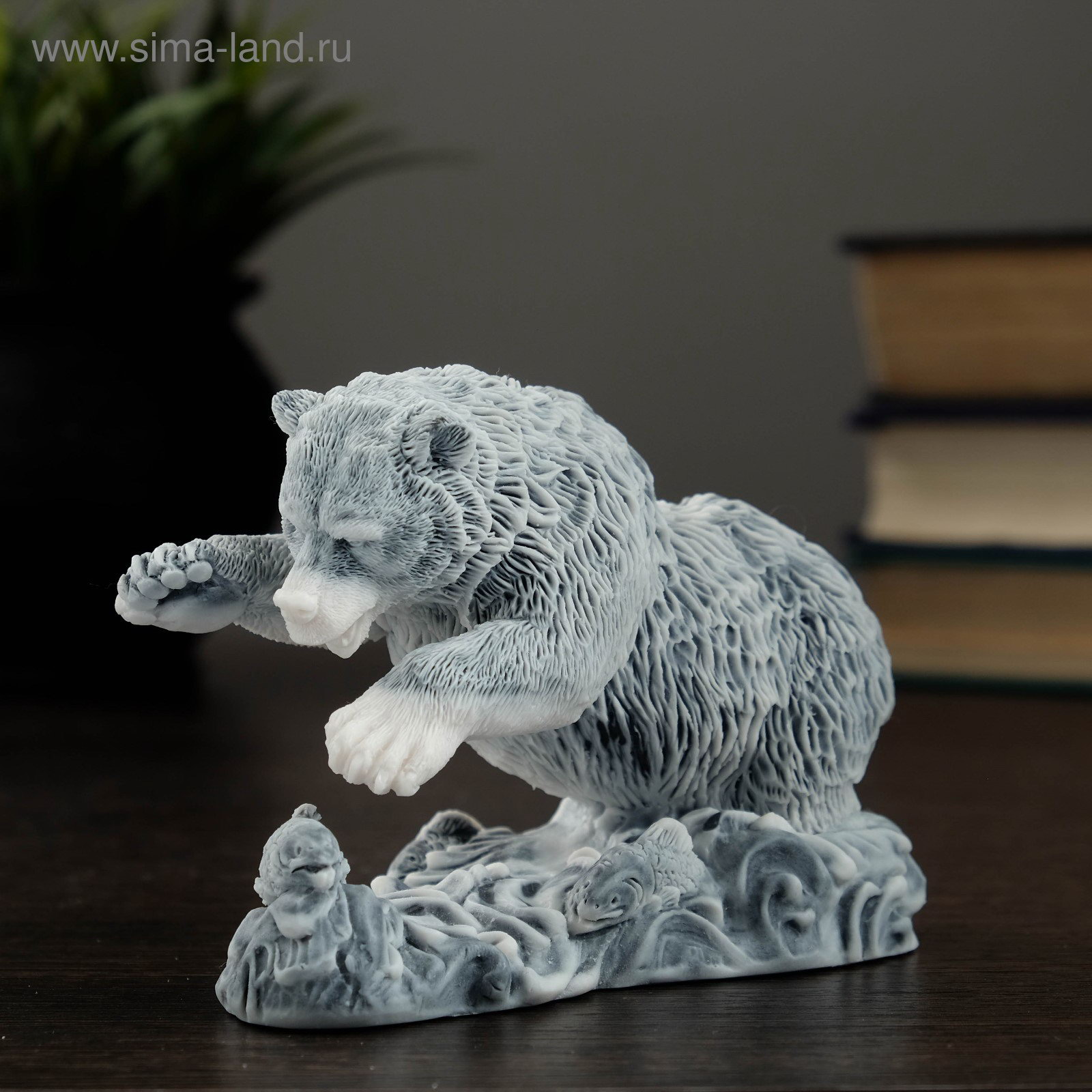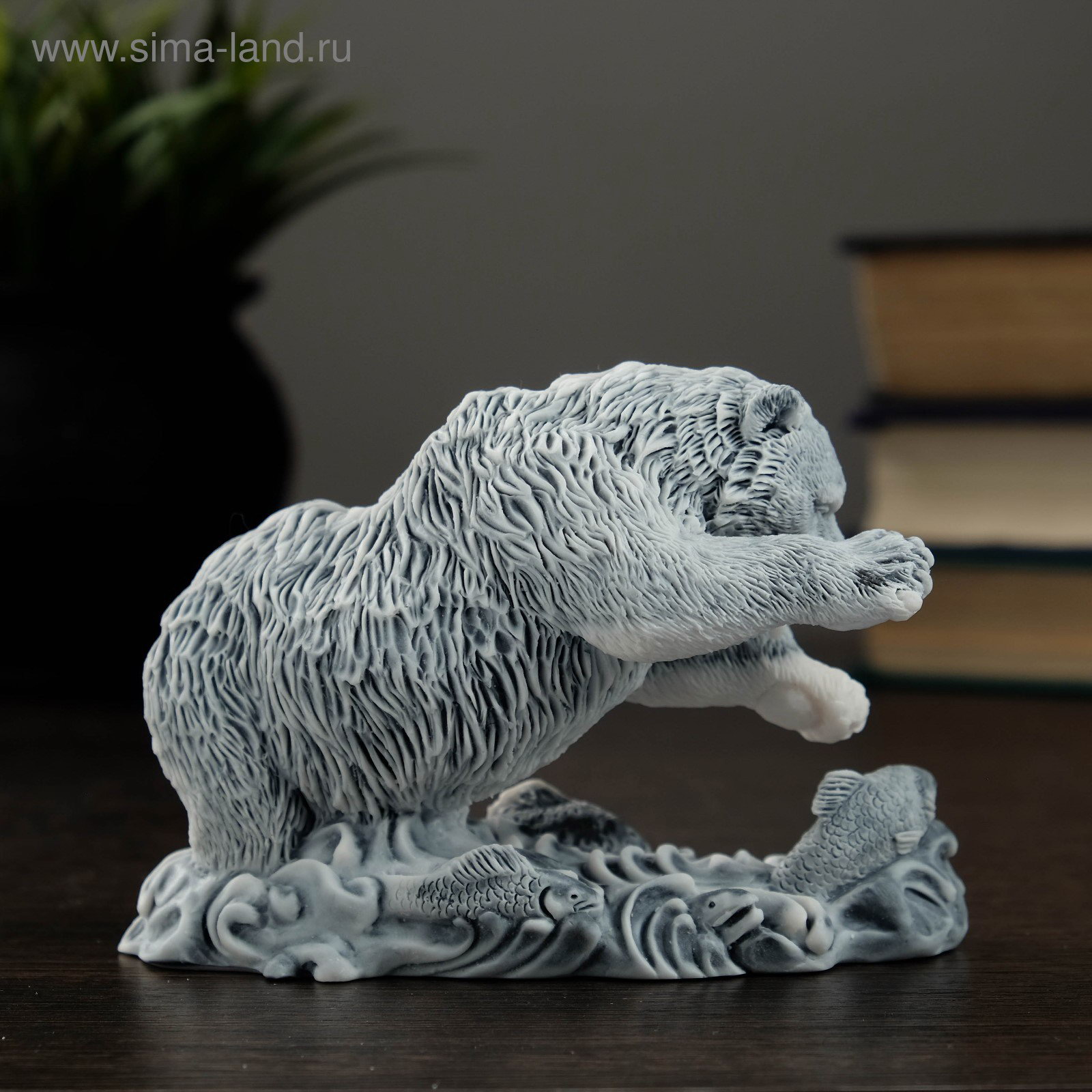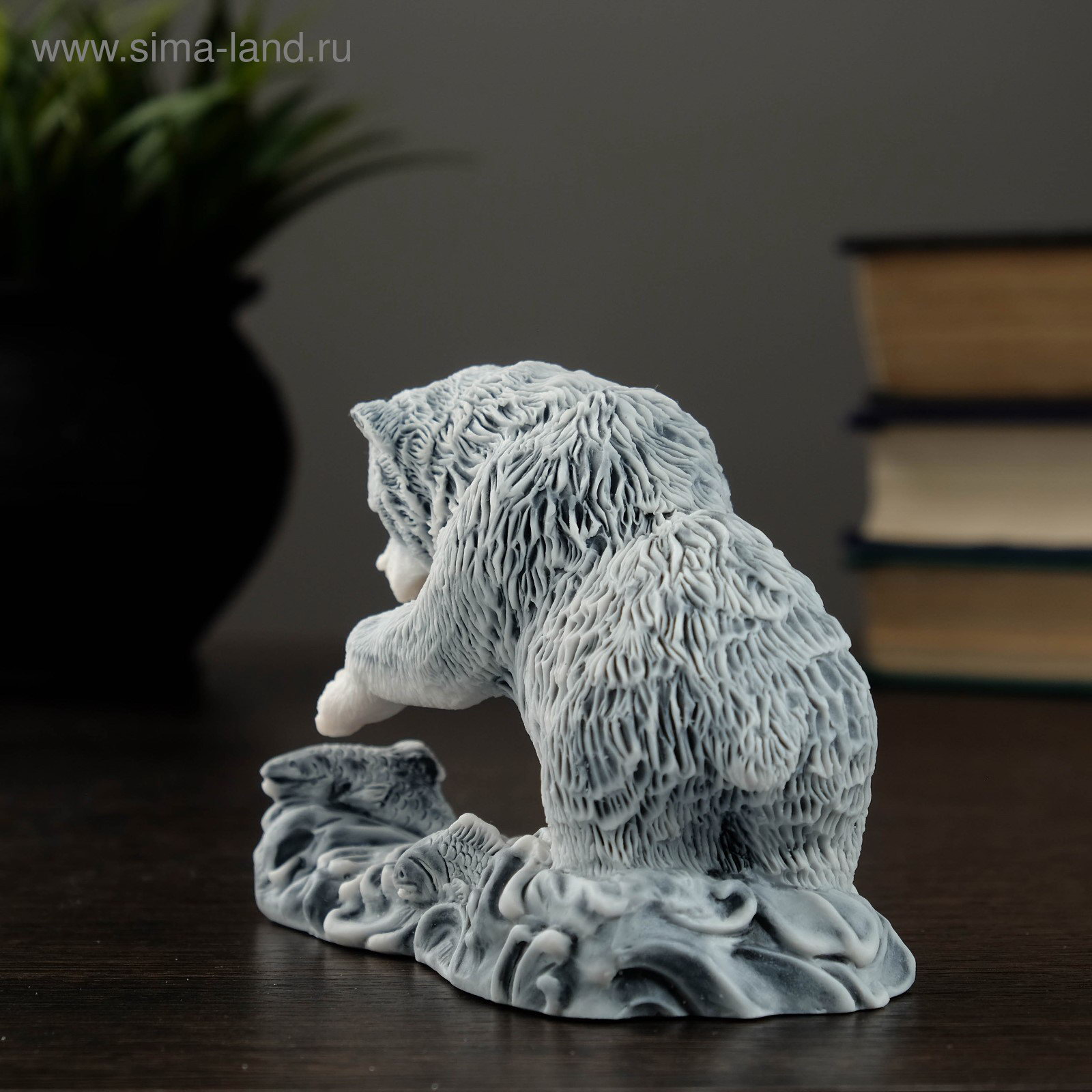Сувенир "Медведь ловит рыбу №1" 11см, Сувениры из мраморной крошки, Россия