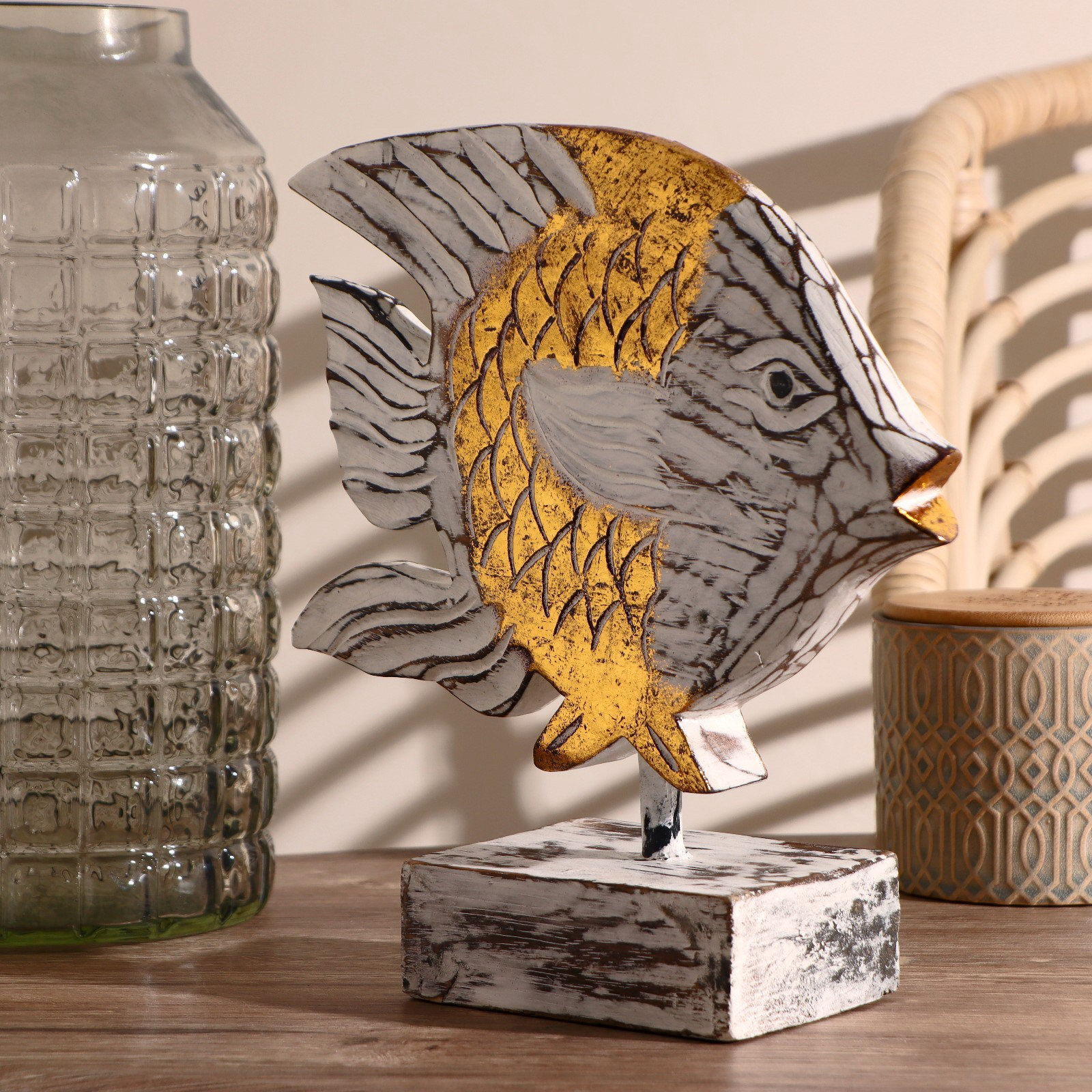 Сувенир "Золотая рыбка" дерево, на подставке 15х9х25 см, 9x15x25 см., Индонезия