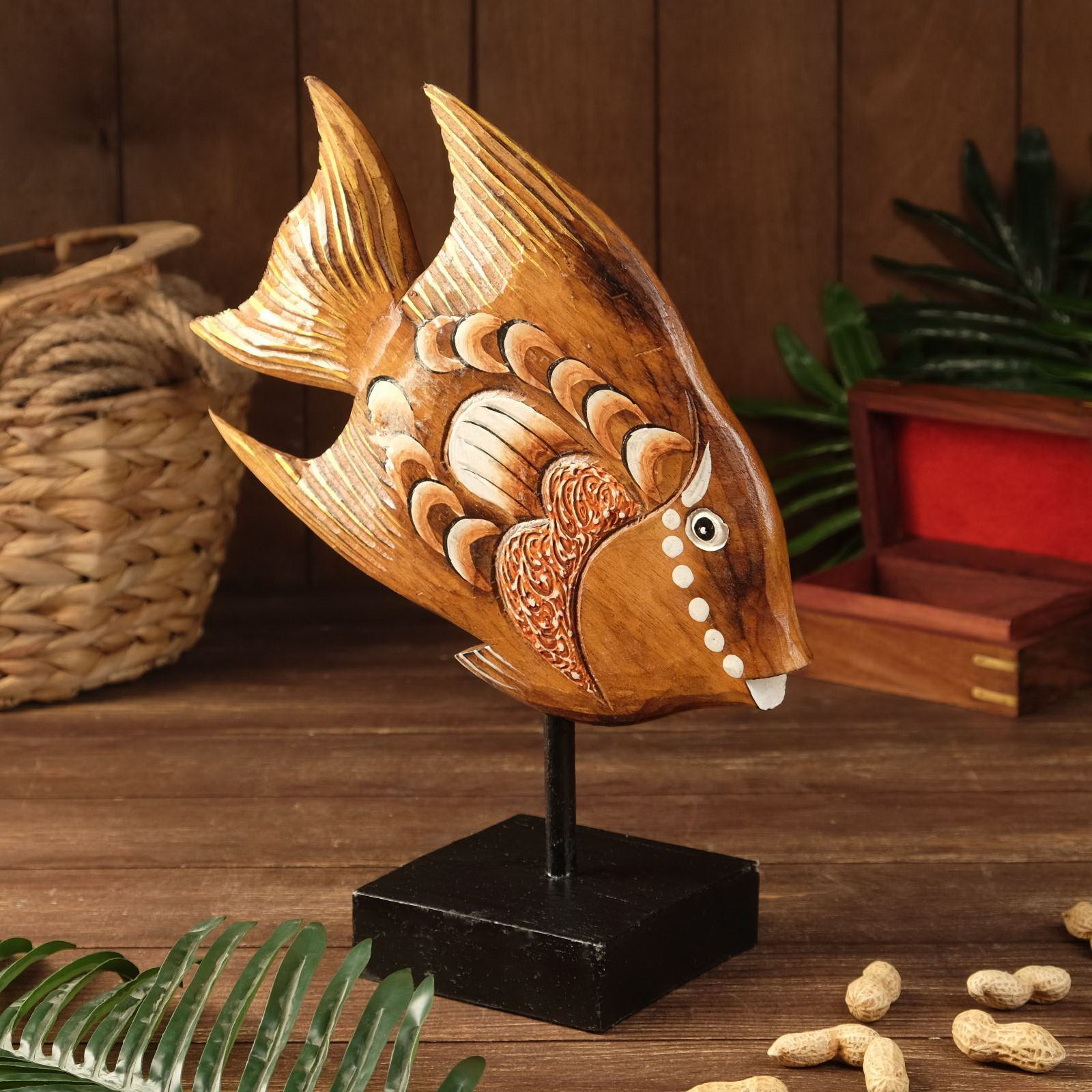 Сувенир "Коричневая рыбка" дерево, на подставке 30х9х39 см, 9x30x39 см., Индонезия