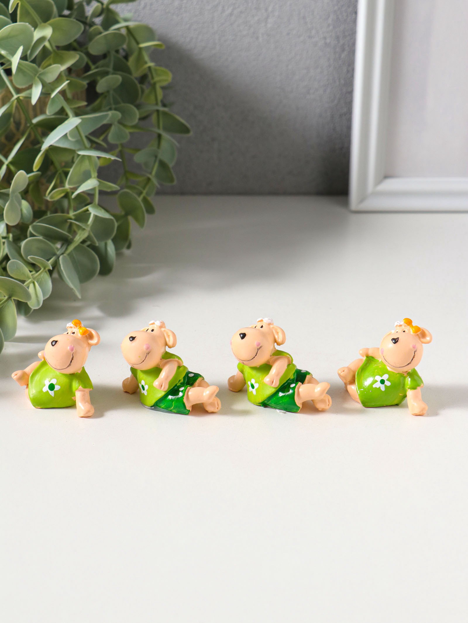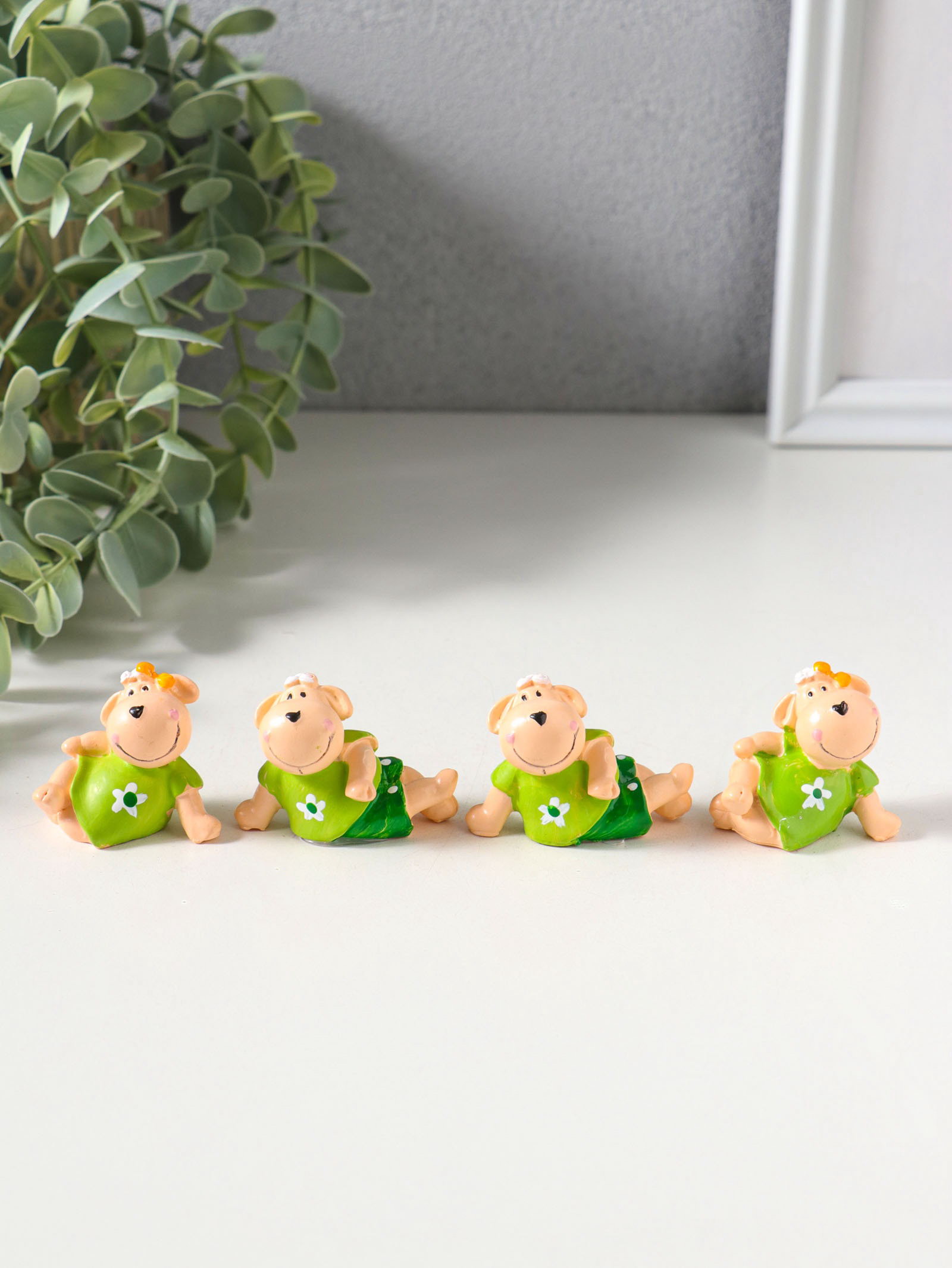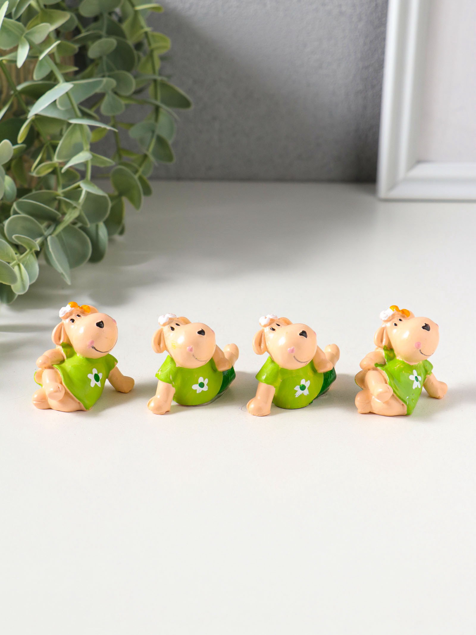 Набор фигурок 4 шт. "Барашки в нарядах с ромашками", полистоун, 2x4.5x3 см, 4.5x2x3 см., Китай