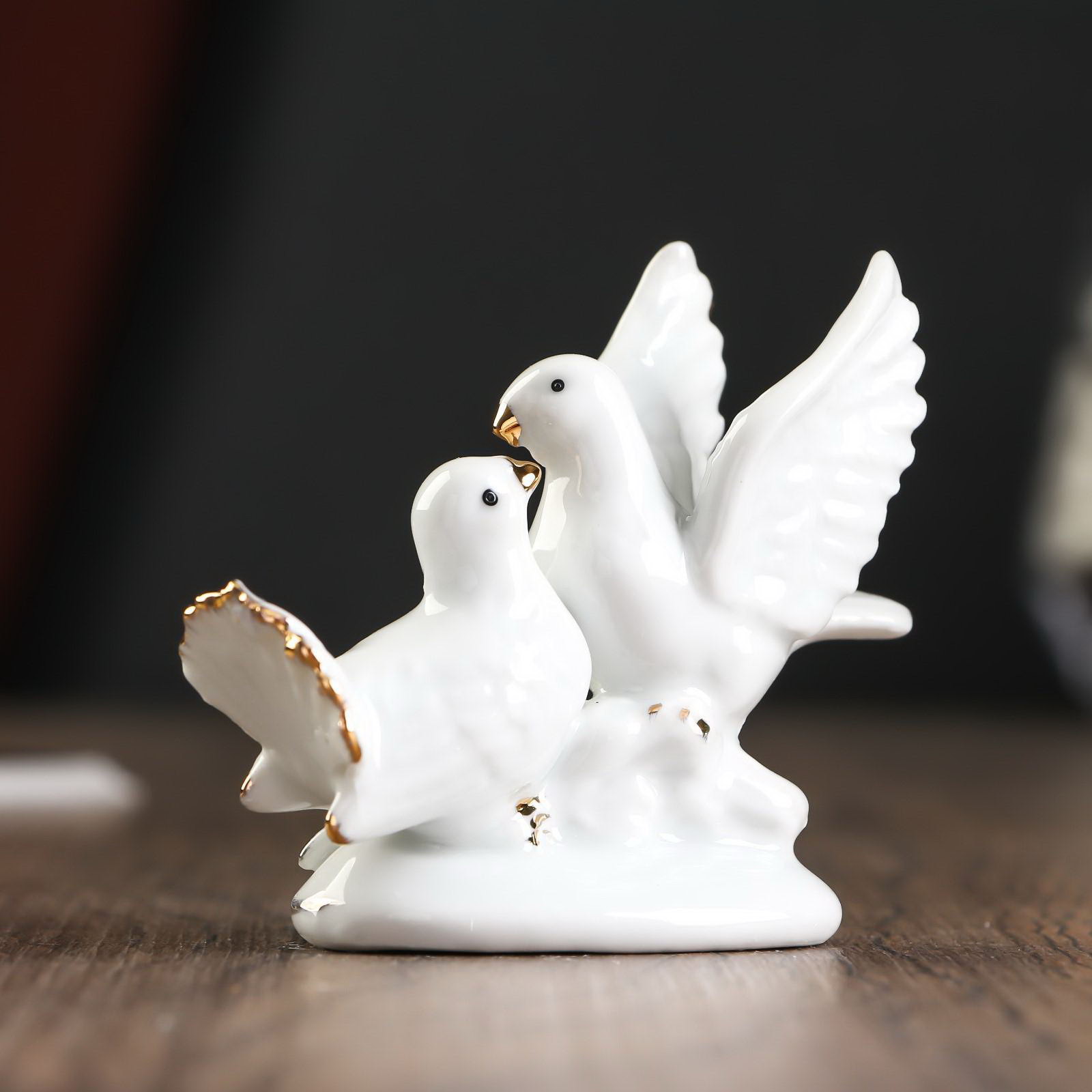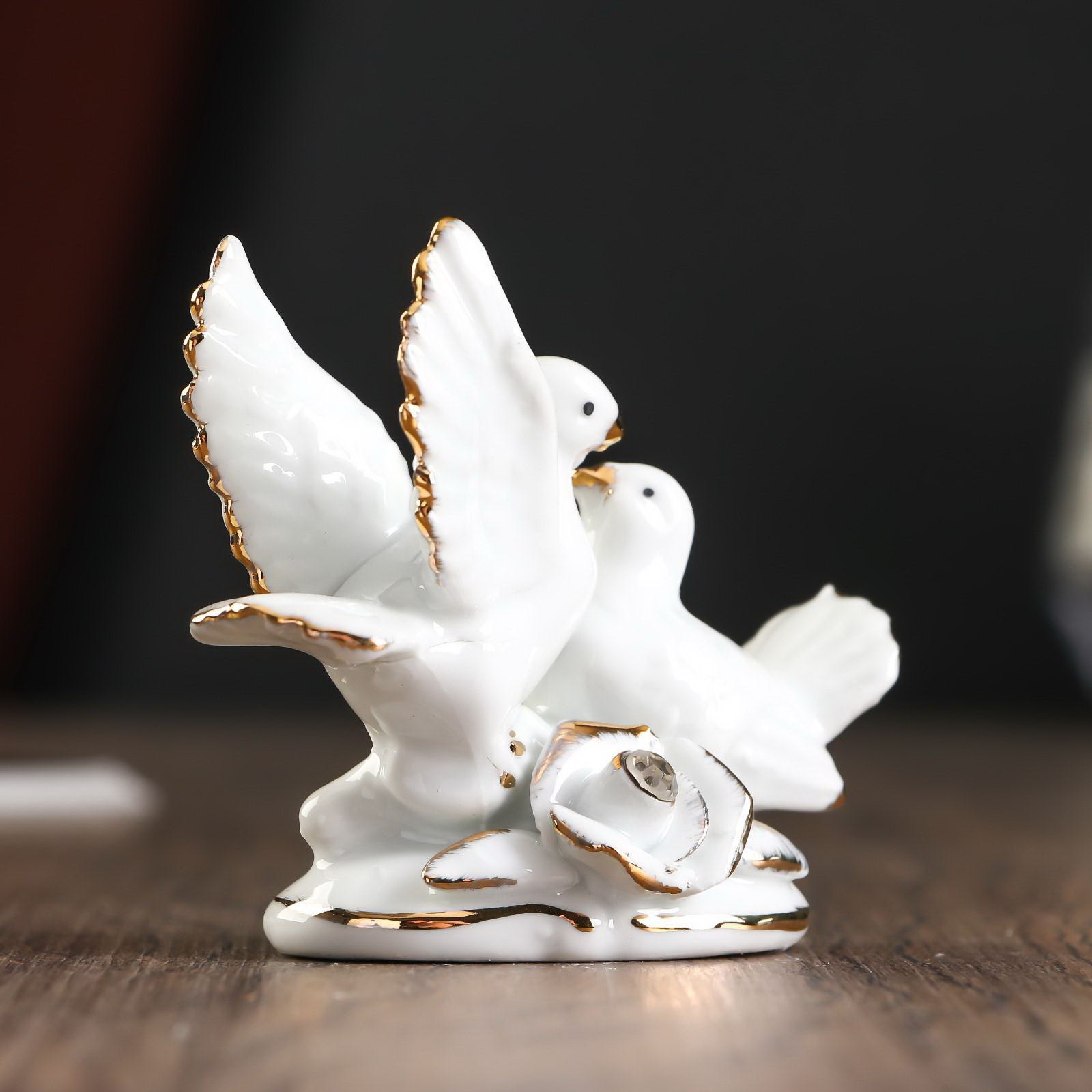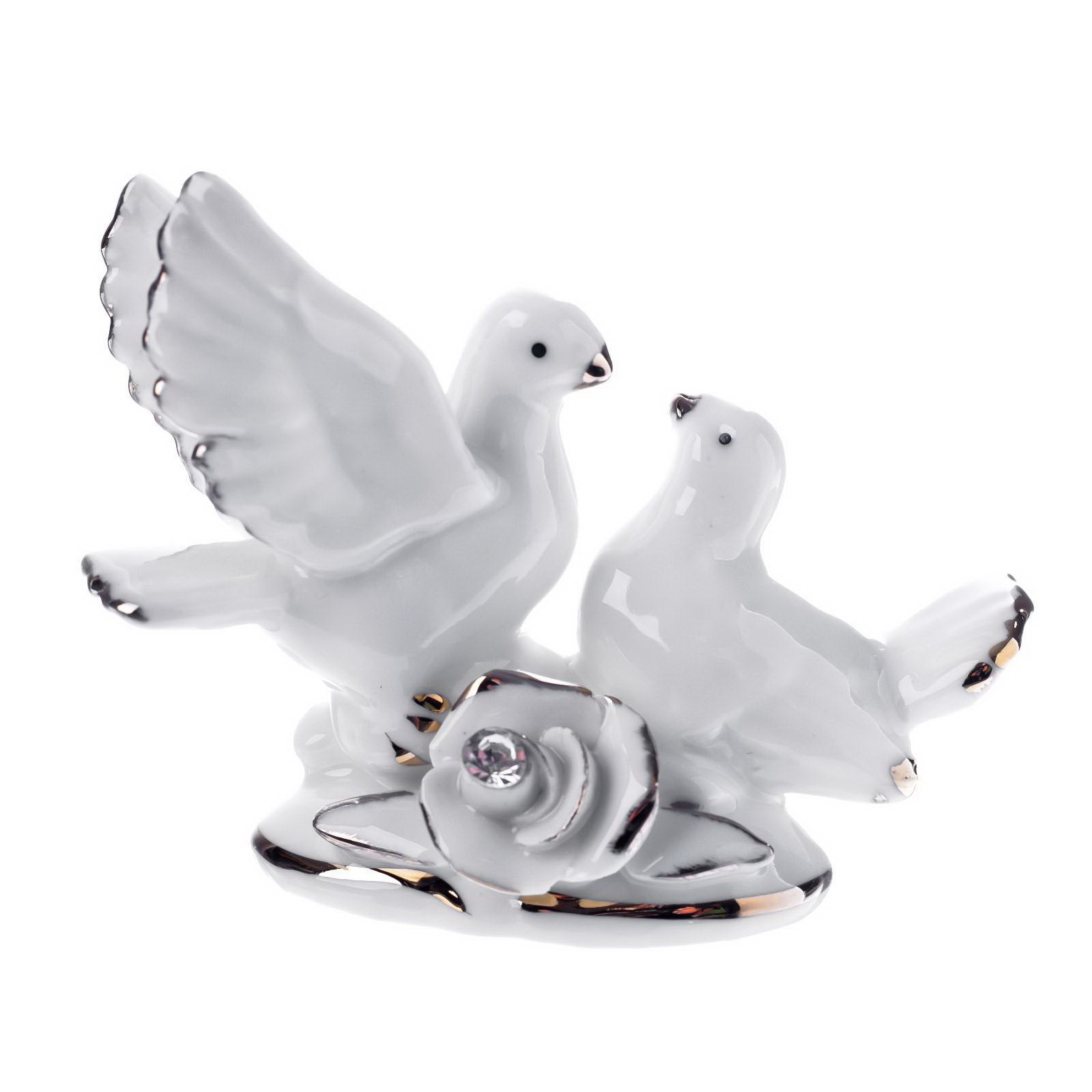 Фигурка "2 голубка с розой", белые со стразой, 6.7x9.2x3 см, 9.2x3x6.7 см., Китай