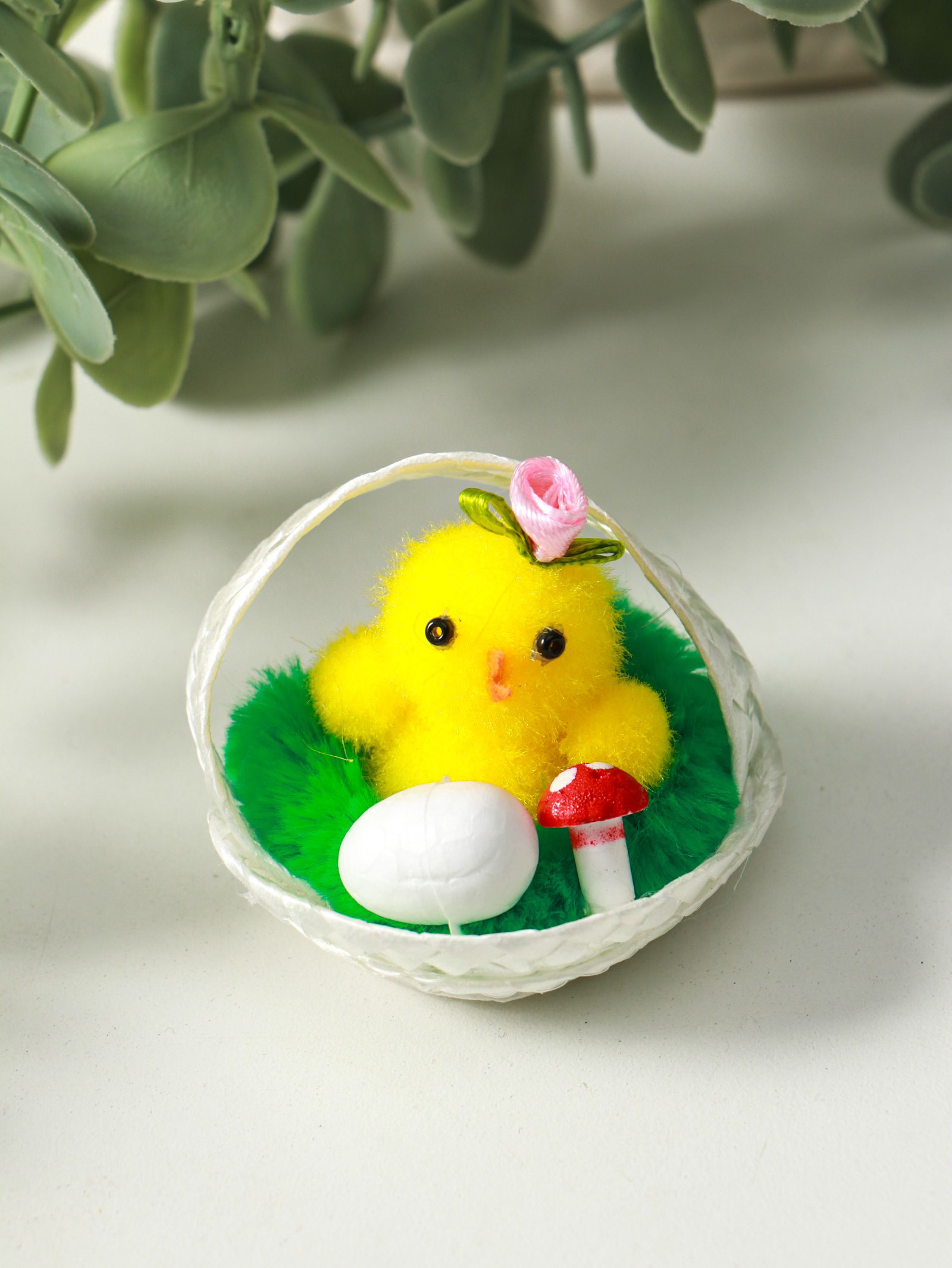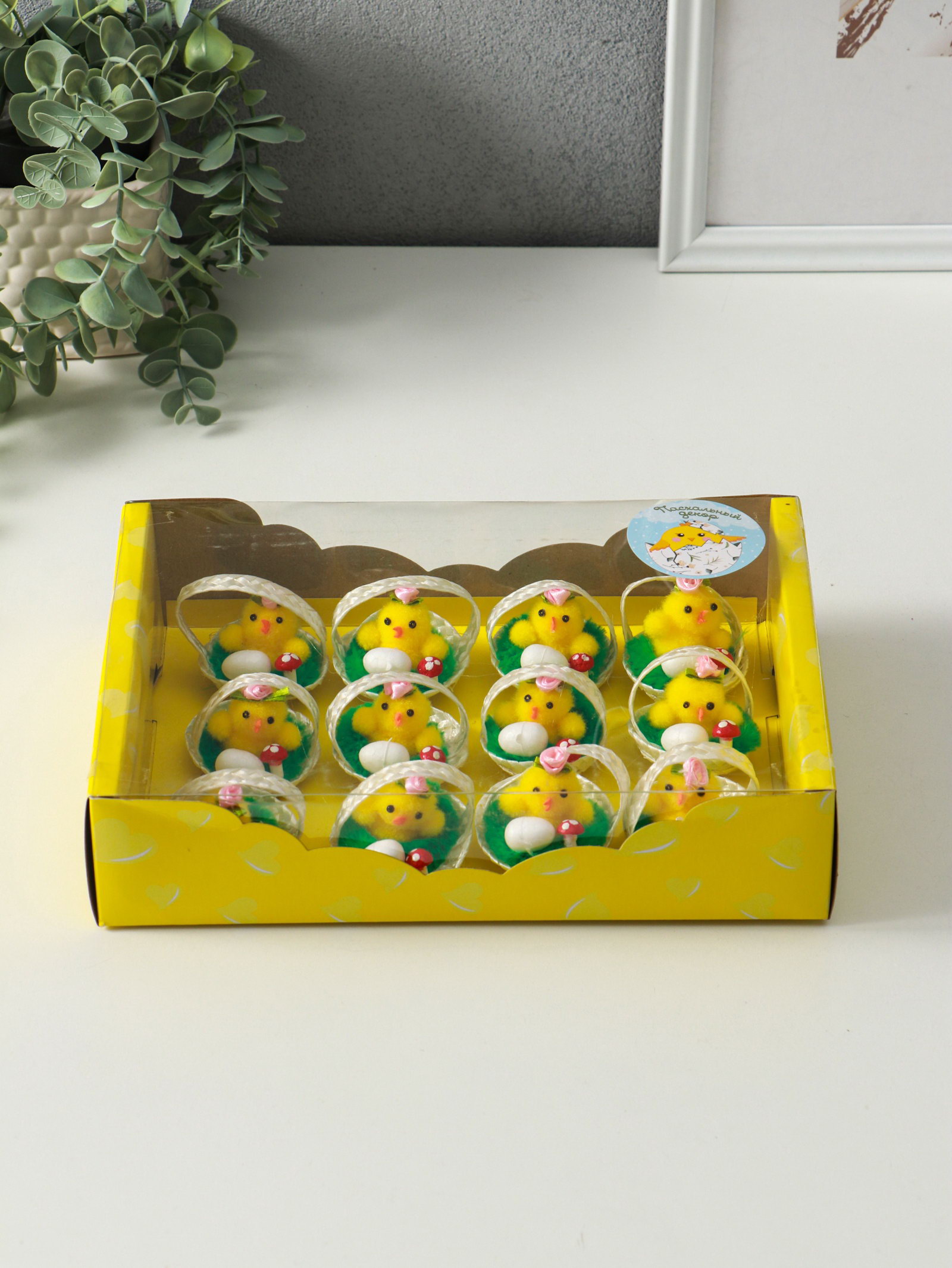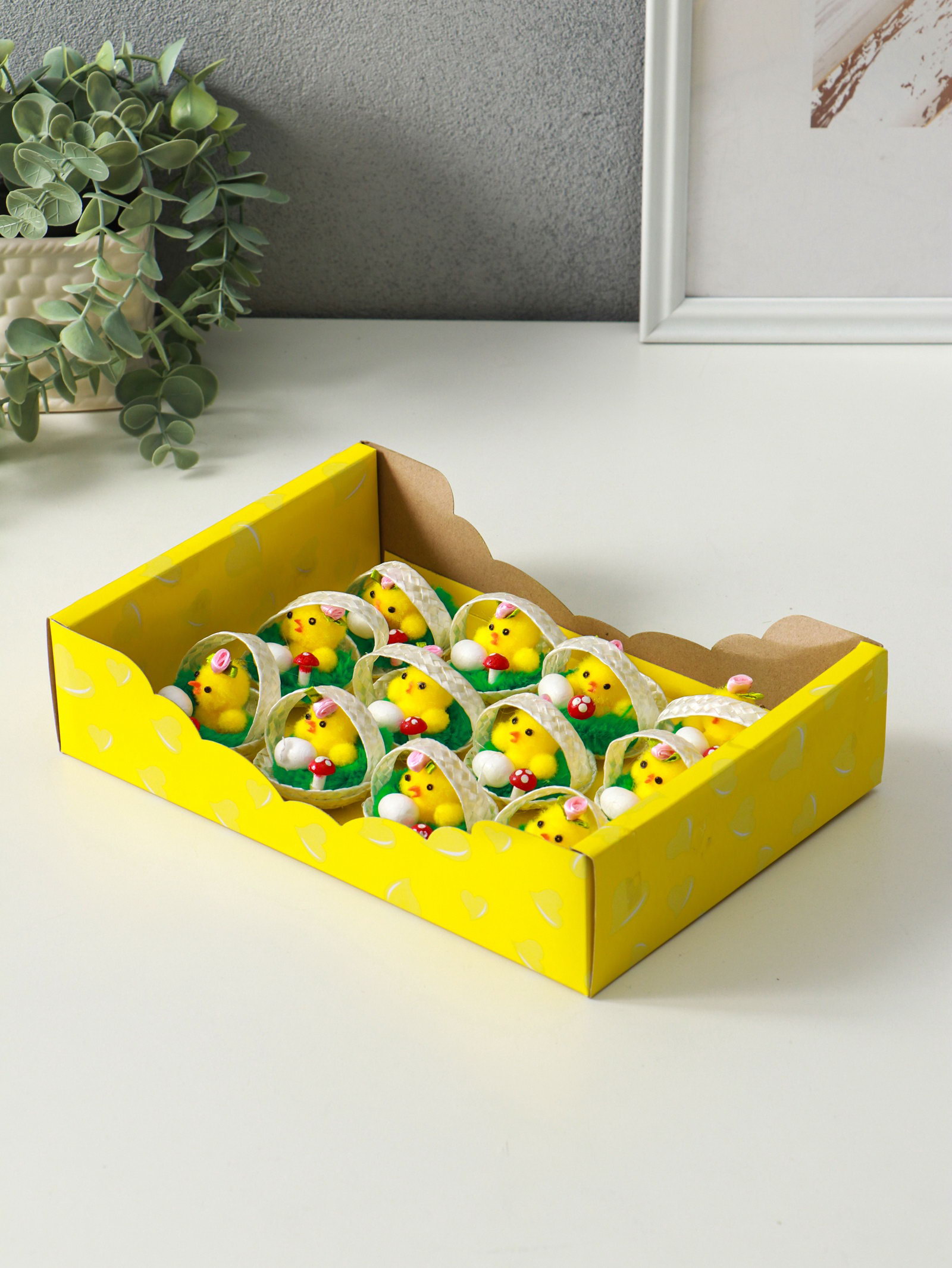 Фигурка пасхальная "Цыпа с яичком в корзинке с мухомором", набор 12 шт., 5x5x5 см, 5x5x5 см., Китай