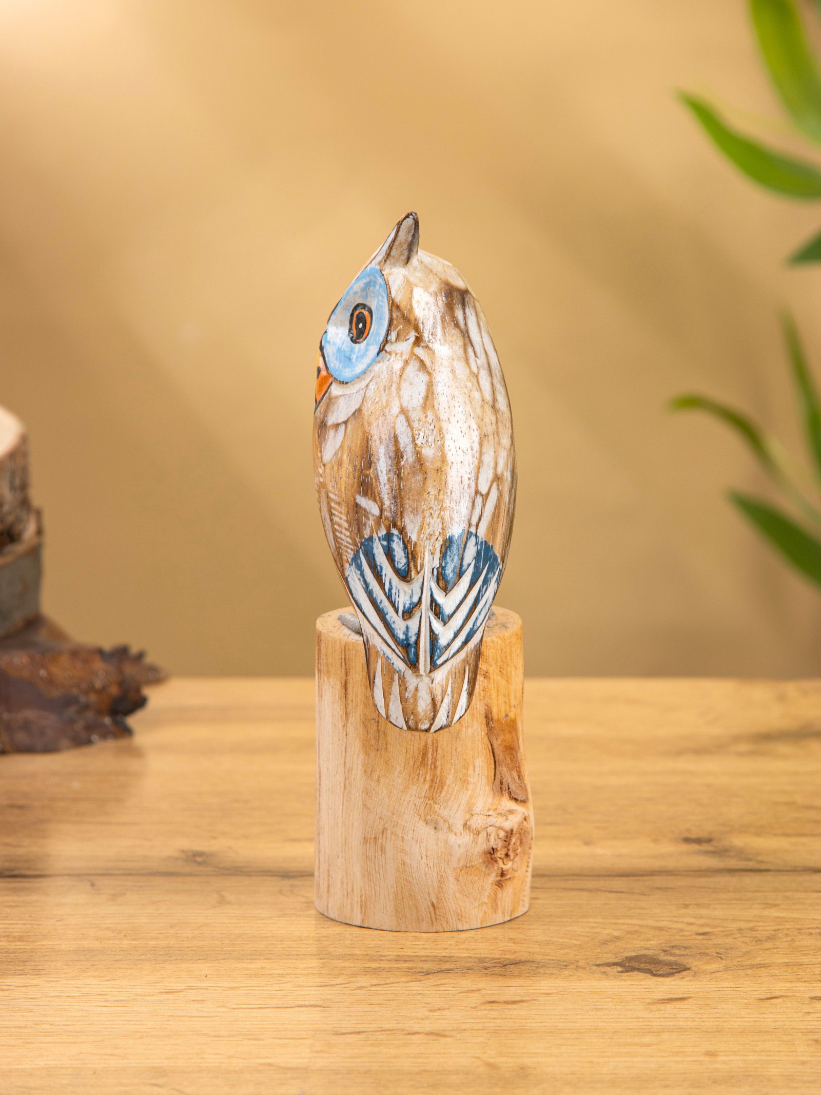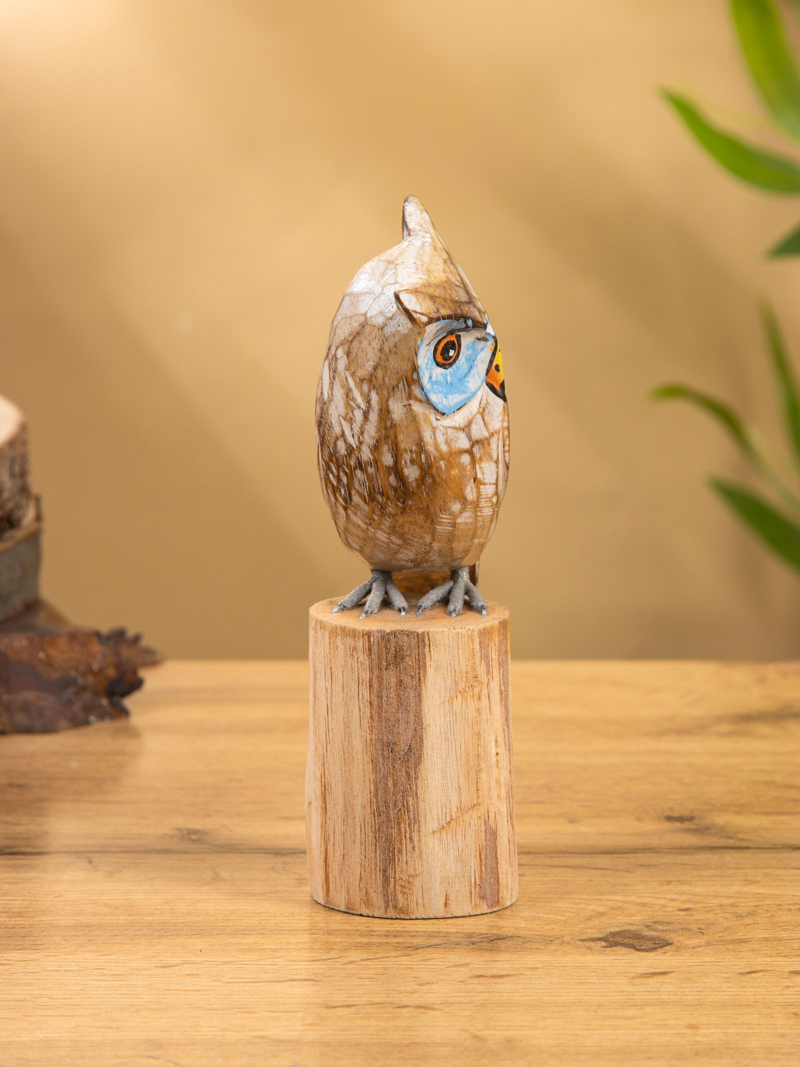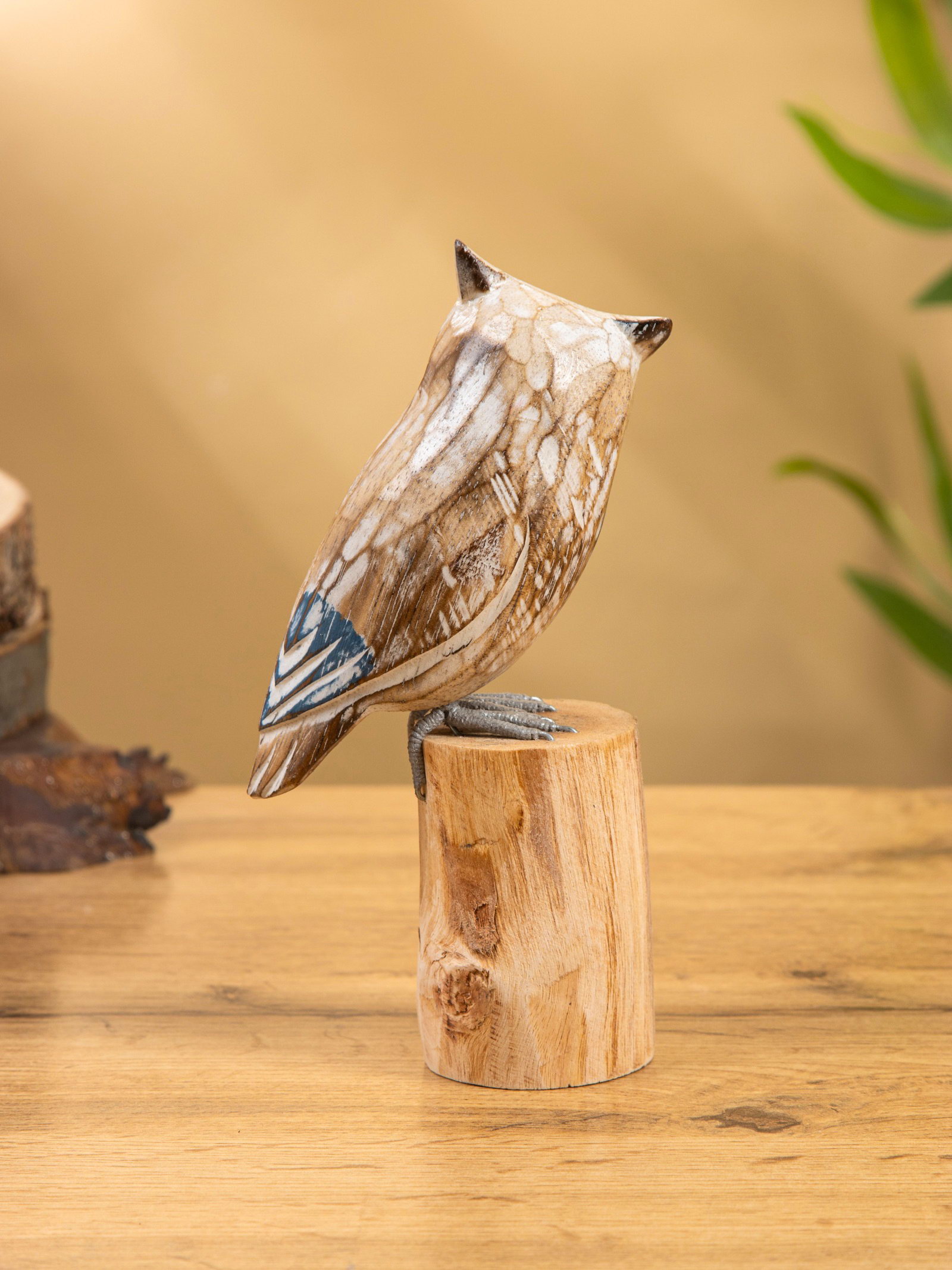 Cувенир "Сова на пеньке", 18 см, дерево, 6x9x15 см., Индонезия