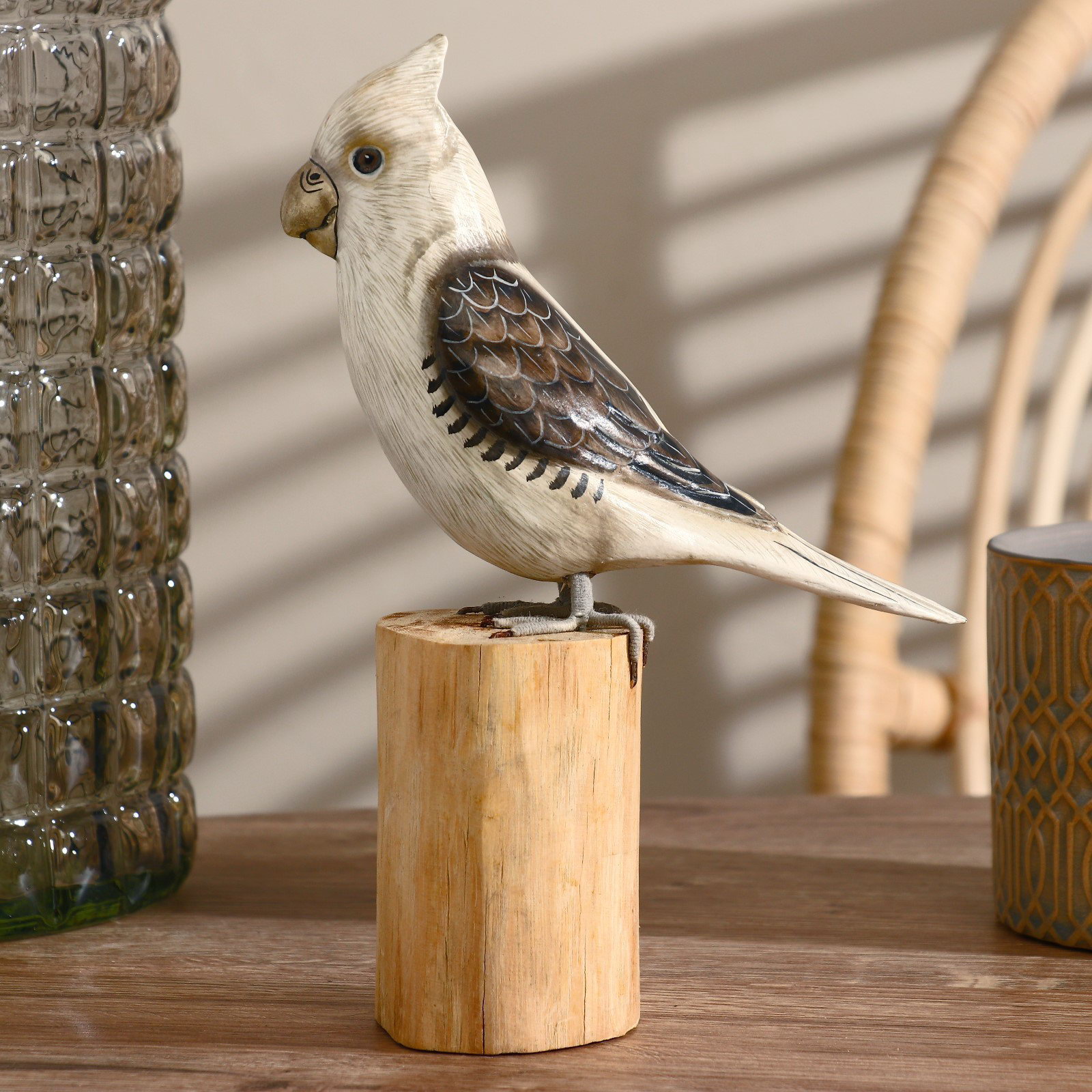 Сувенир "Попугай", 22 см, дерево, белый, 8x11x22 см., Индонезия