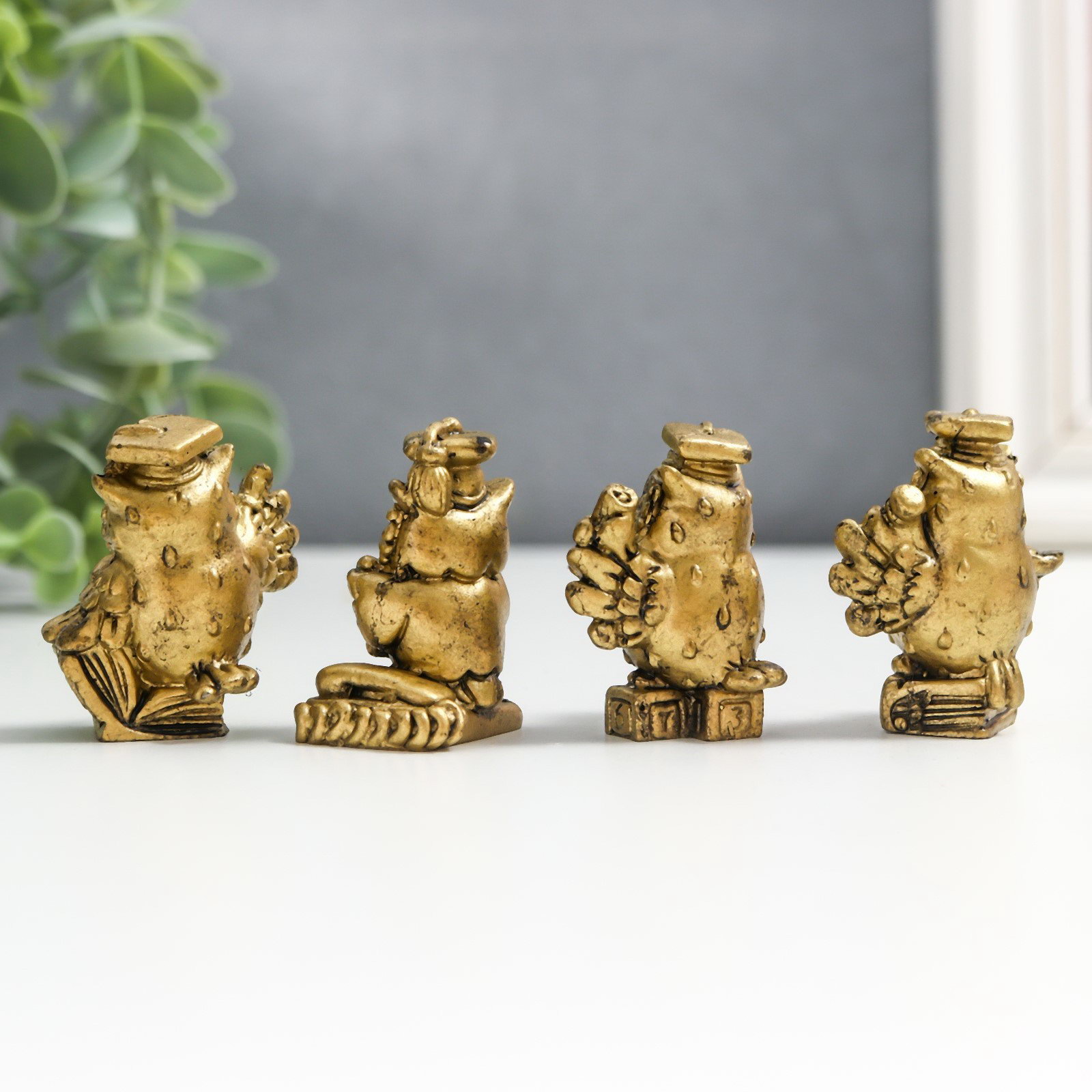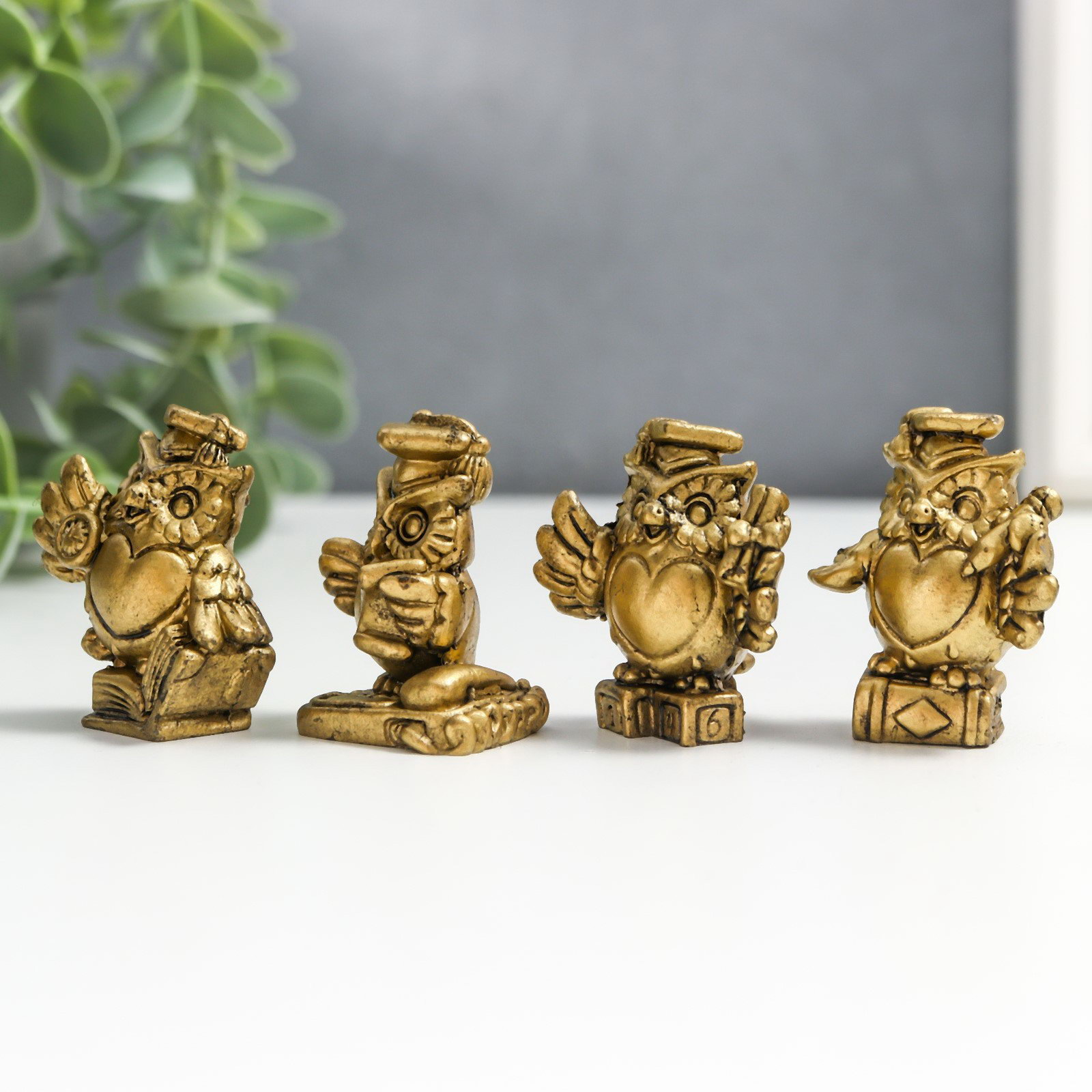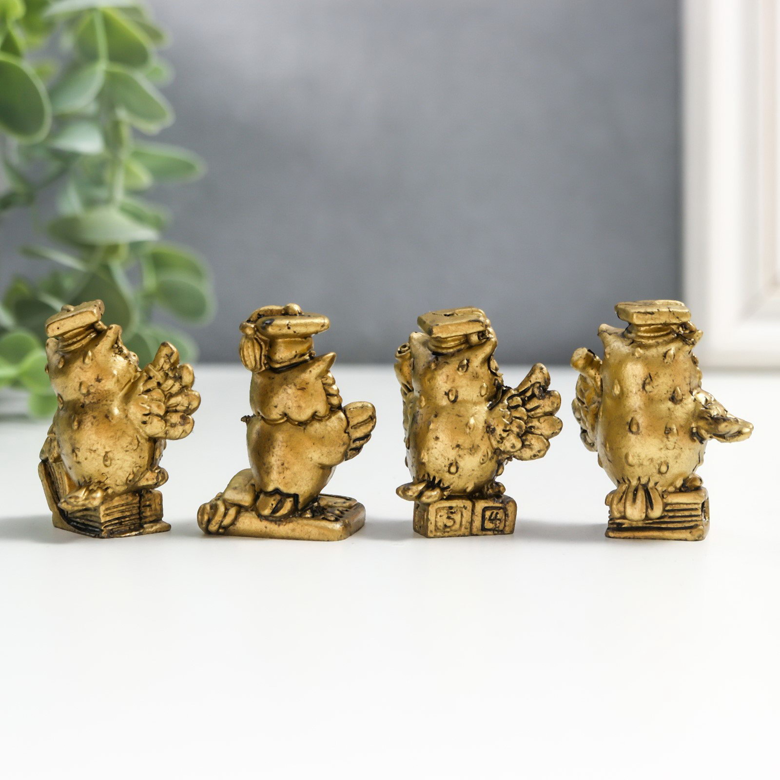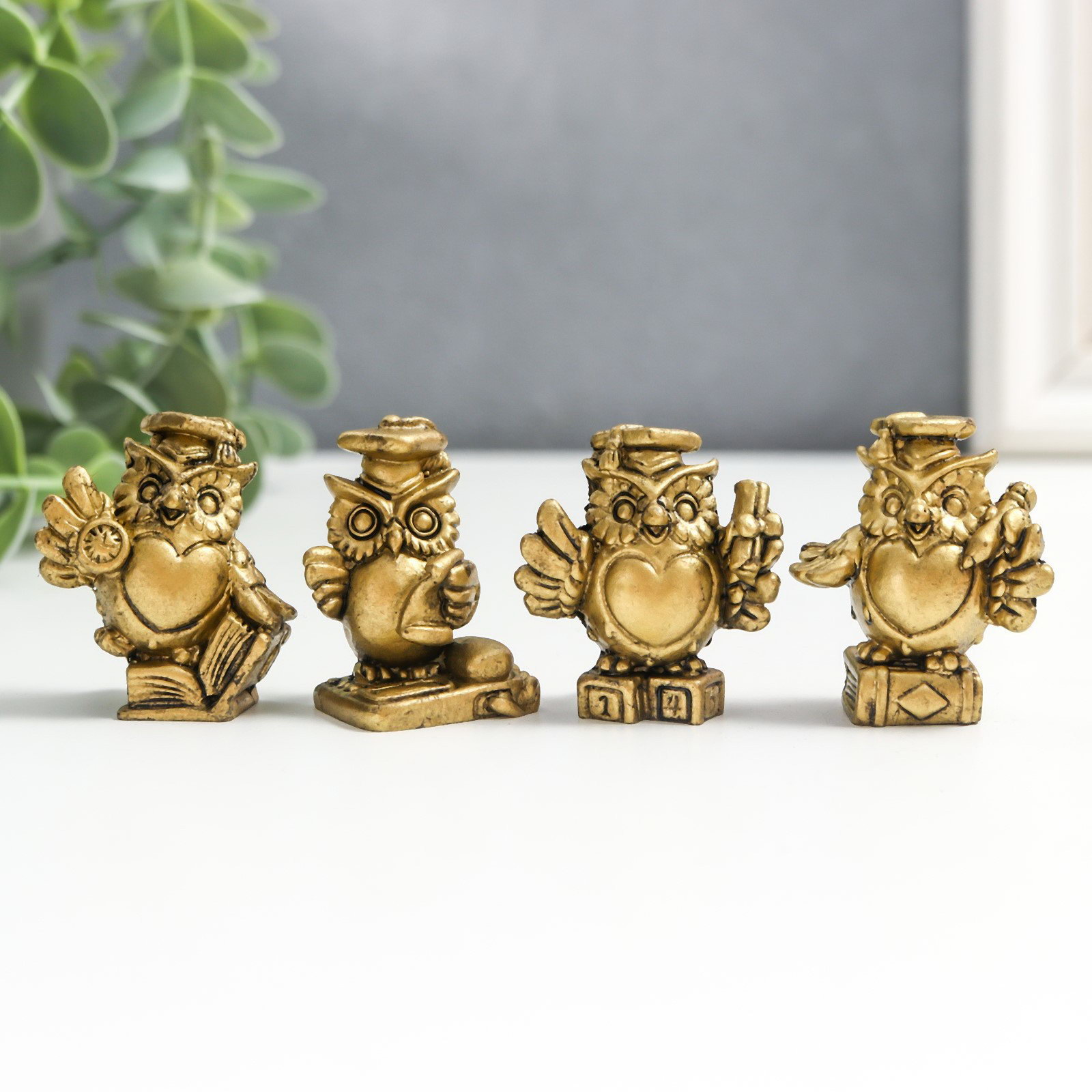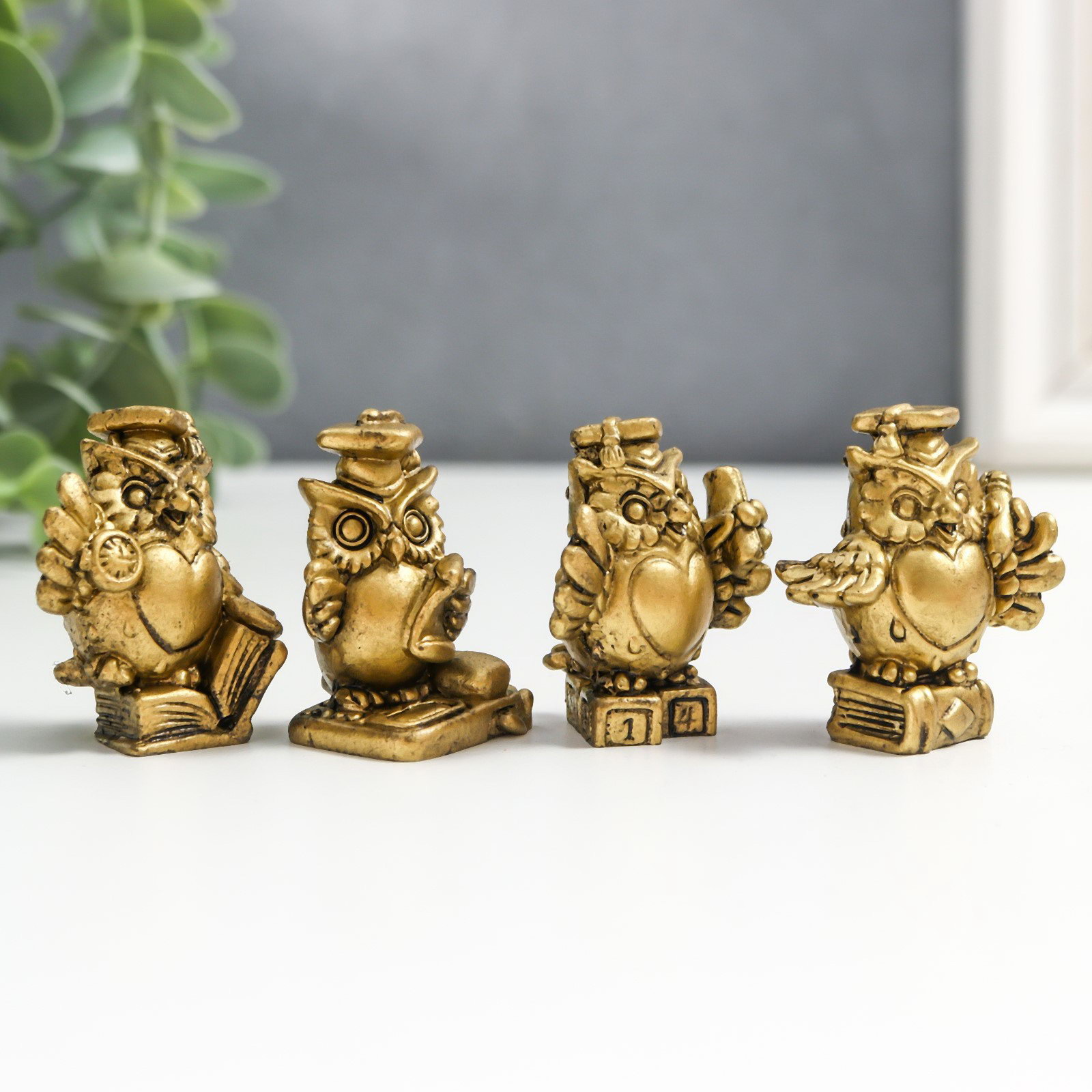 Сувенир полистоун под бронзу "Учёные совушки" набор 4 шт 3.8х1.5х3 см, 1.5x3x3.8 см., Китай