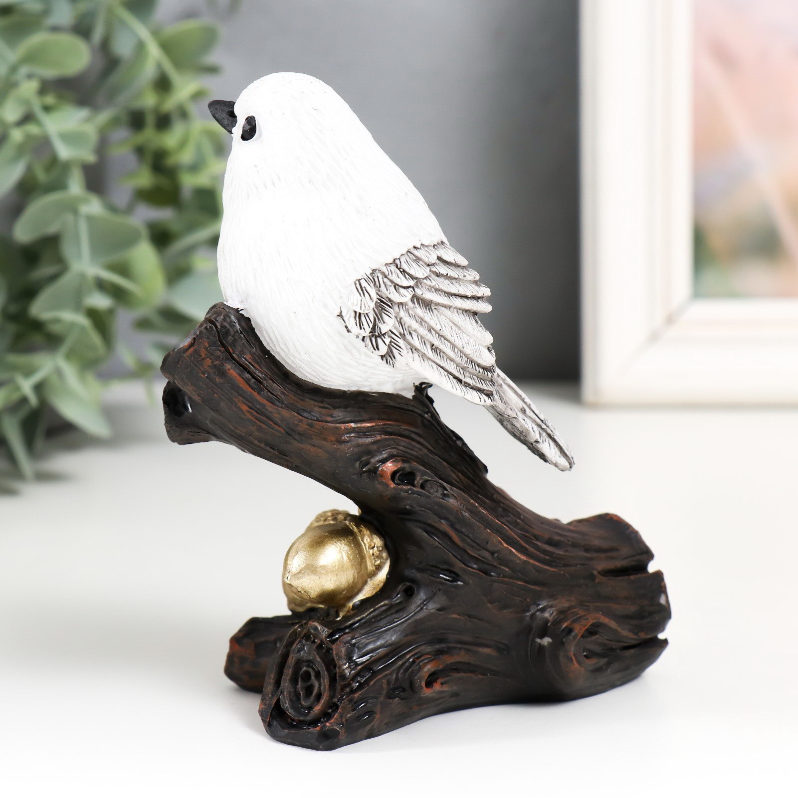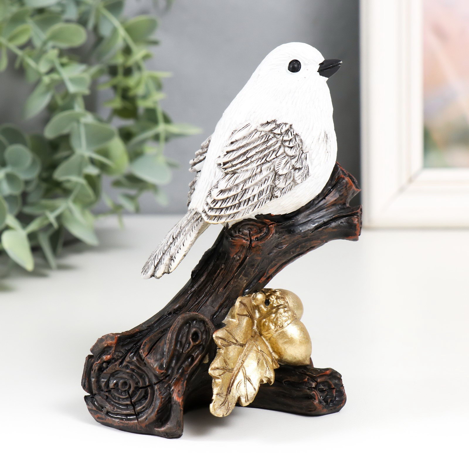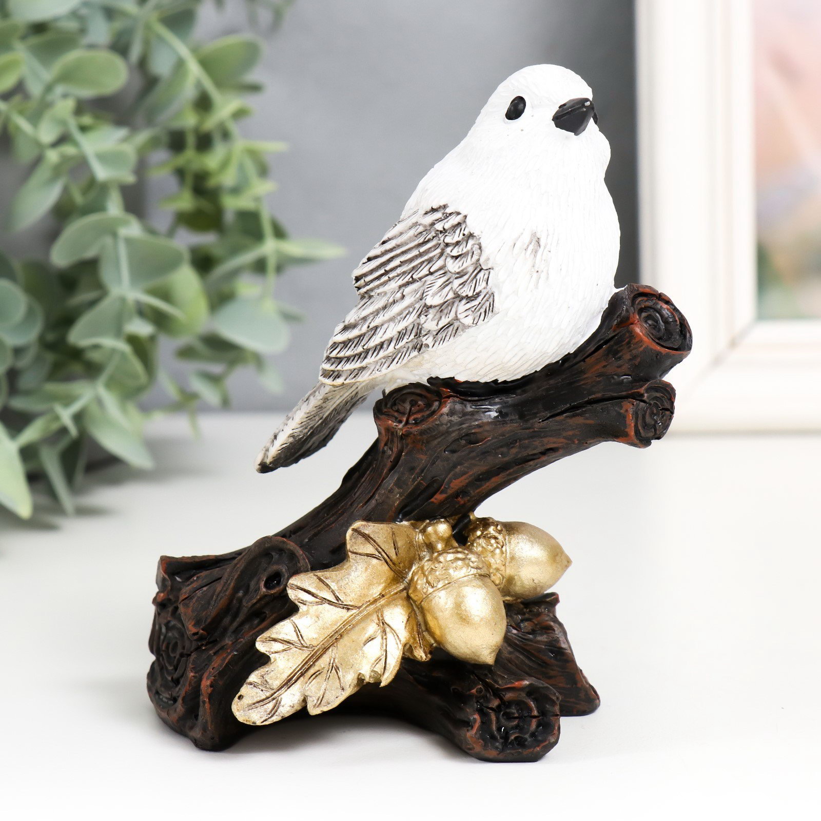 Фигурка полистоун "Белая птичка на ветке жёлудя", под золото, 9x5.5x13 см, 5.5x9x13 см., Китай