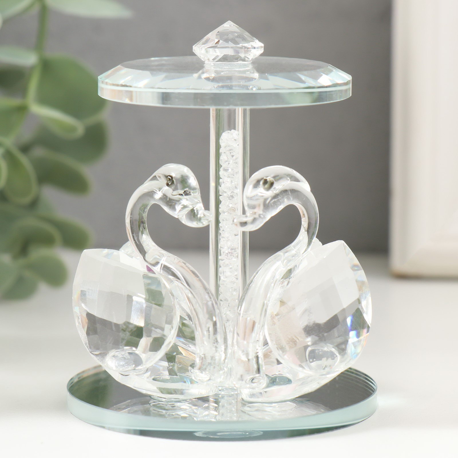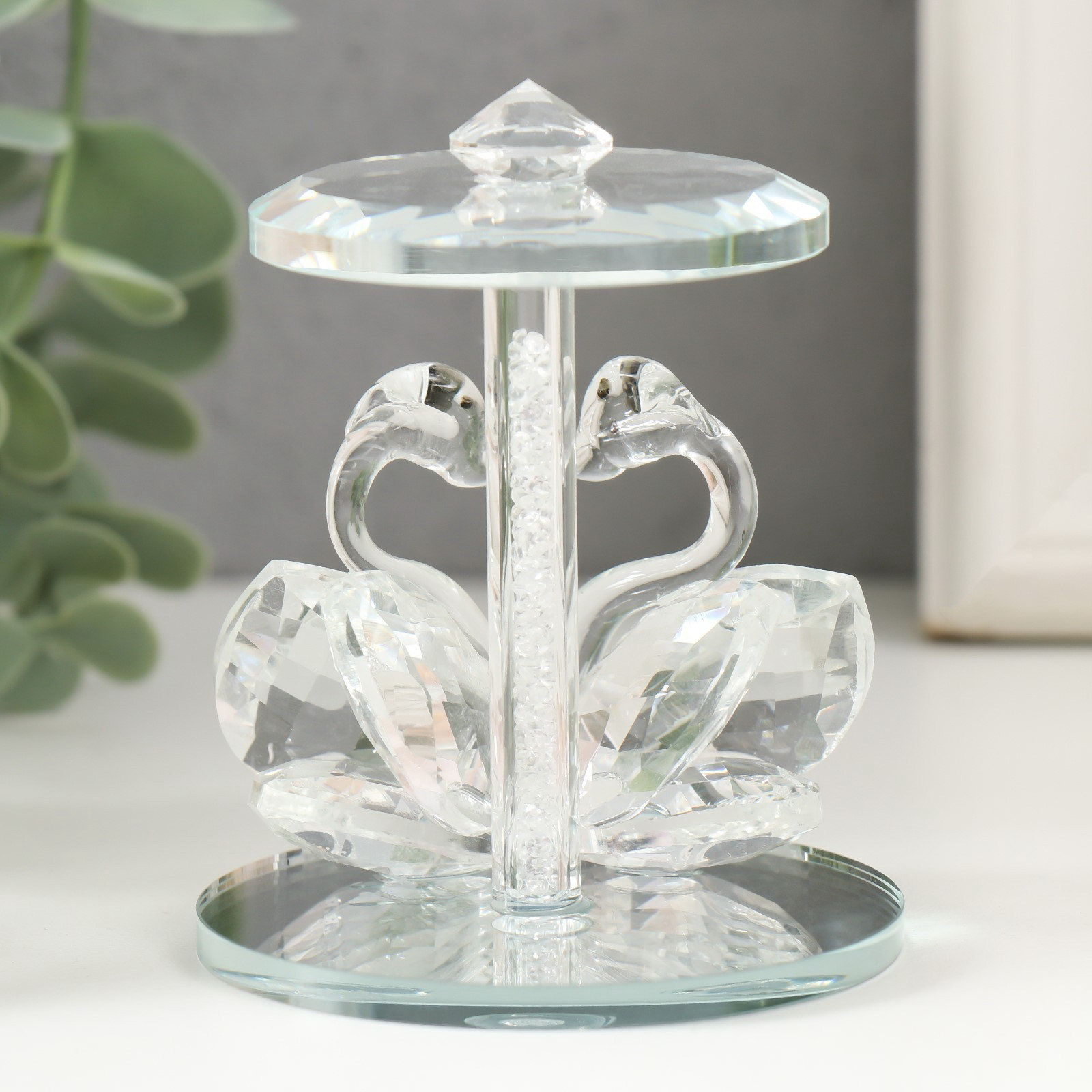 Сувенир стекло "Два лебедя под зонтом" прозрачный 6.3х6.3х8 см, 6.3x6.3x8 см., Китай